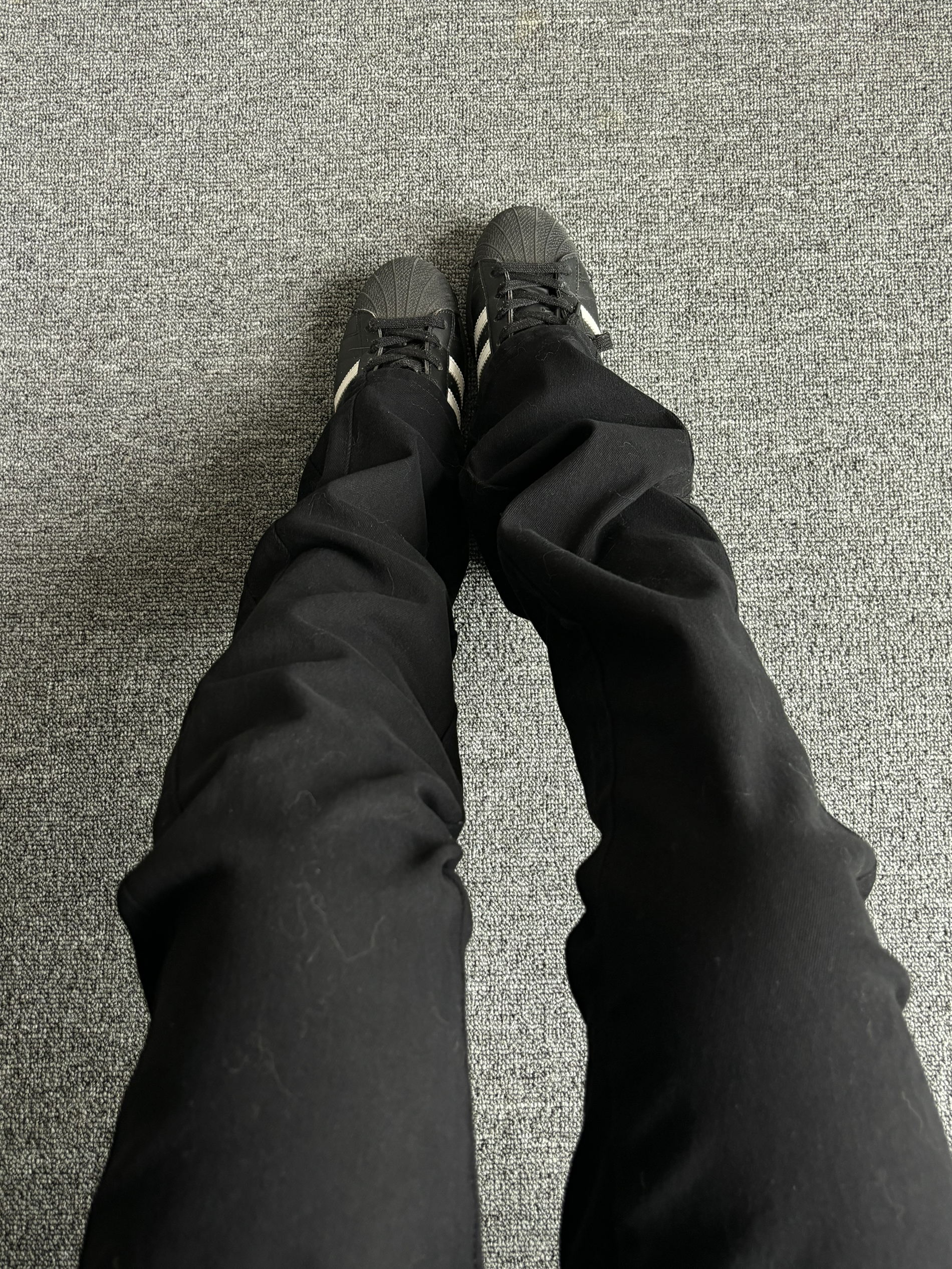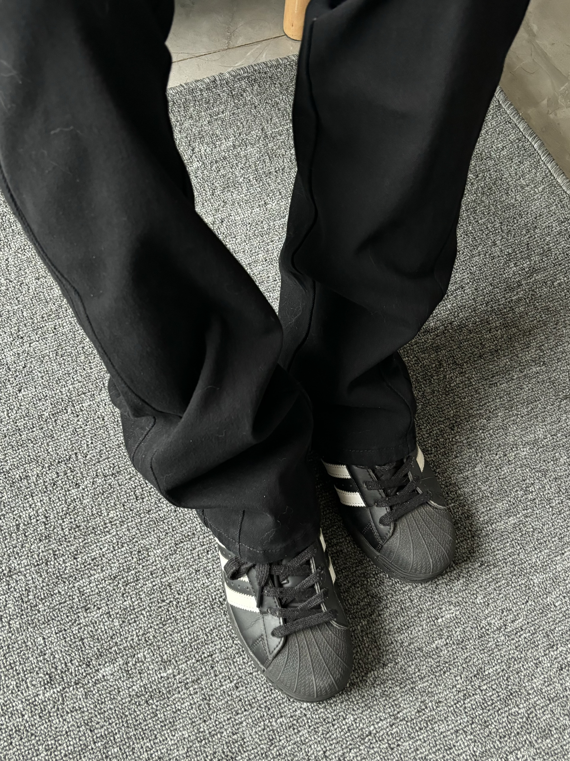 牛仔裤的面料 西裤的版型 两者结合真的不要太帅! 上身真的超级舒服 搭配贝壳头不要太帅了!