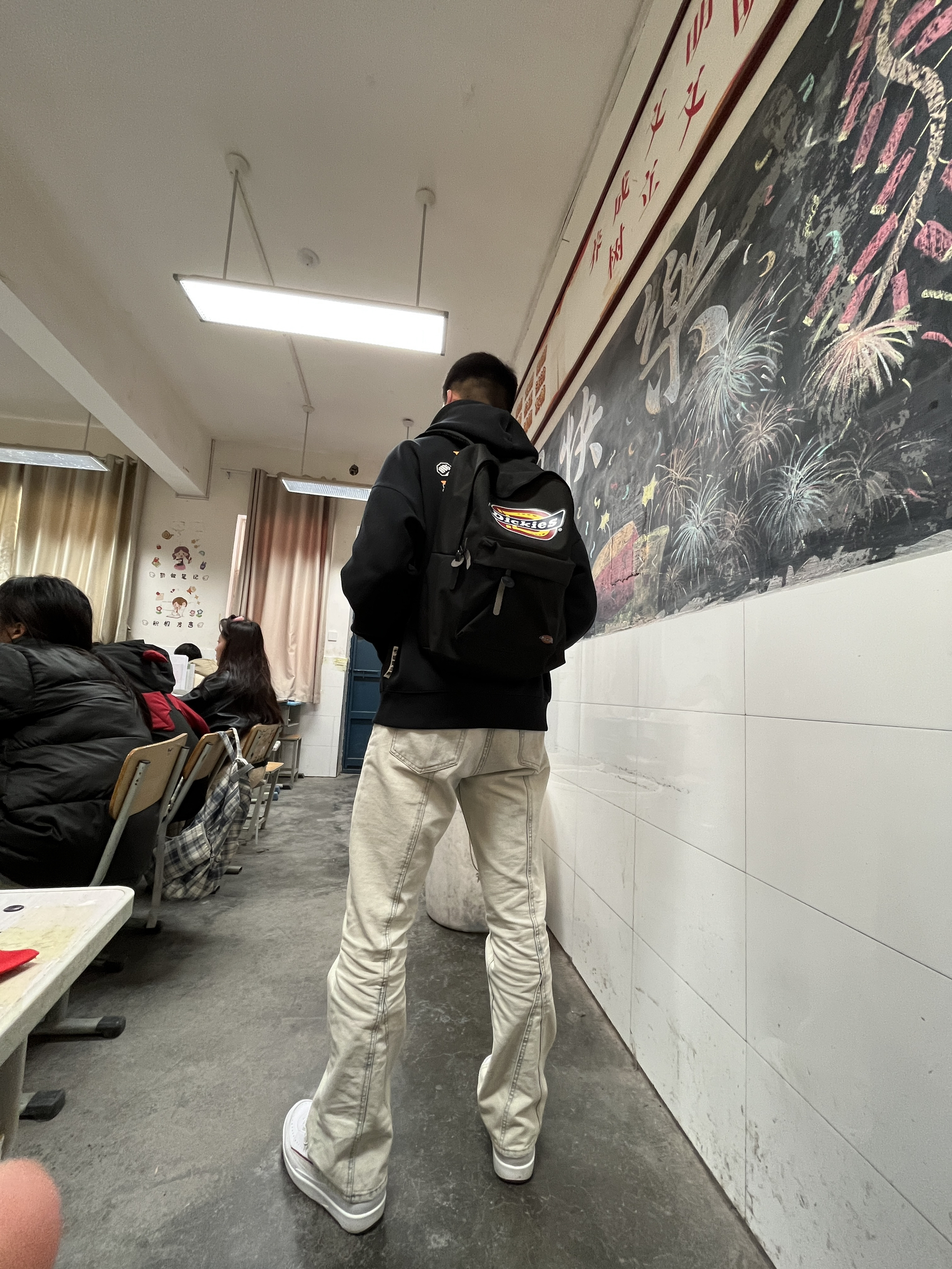 😎品牌名称 Dickies 大Logo印花款百搭双肩背包书包 黑色 👀回外观颜值 真的不错,可以入,但是不是那么的能装 👐 愁实物质感 是软皮质的,手感还不错。