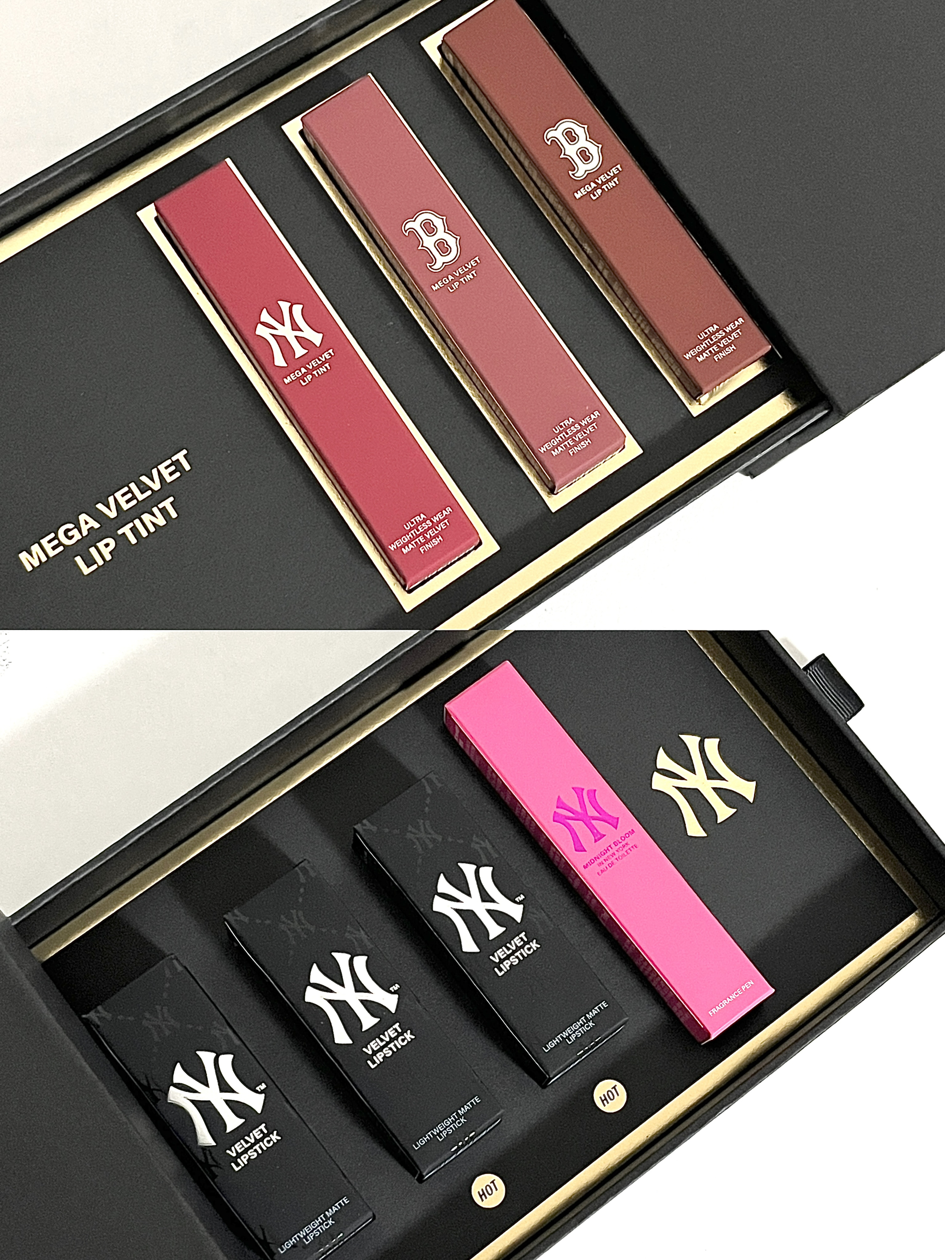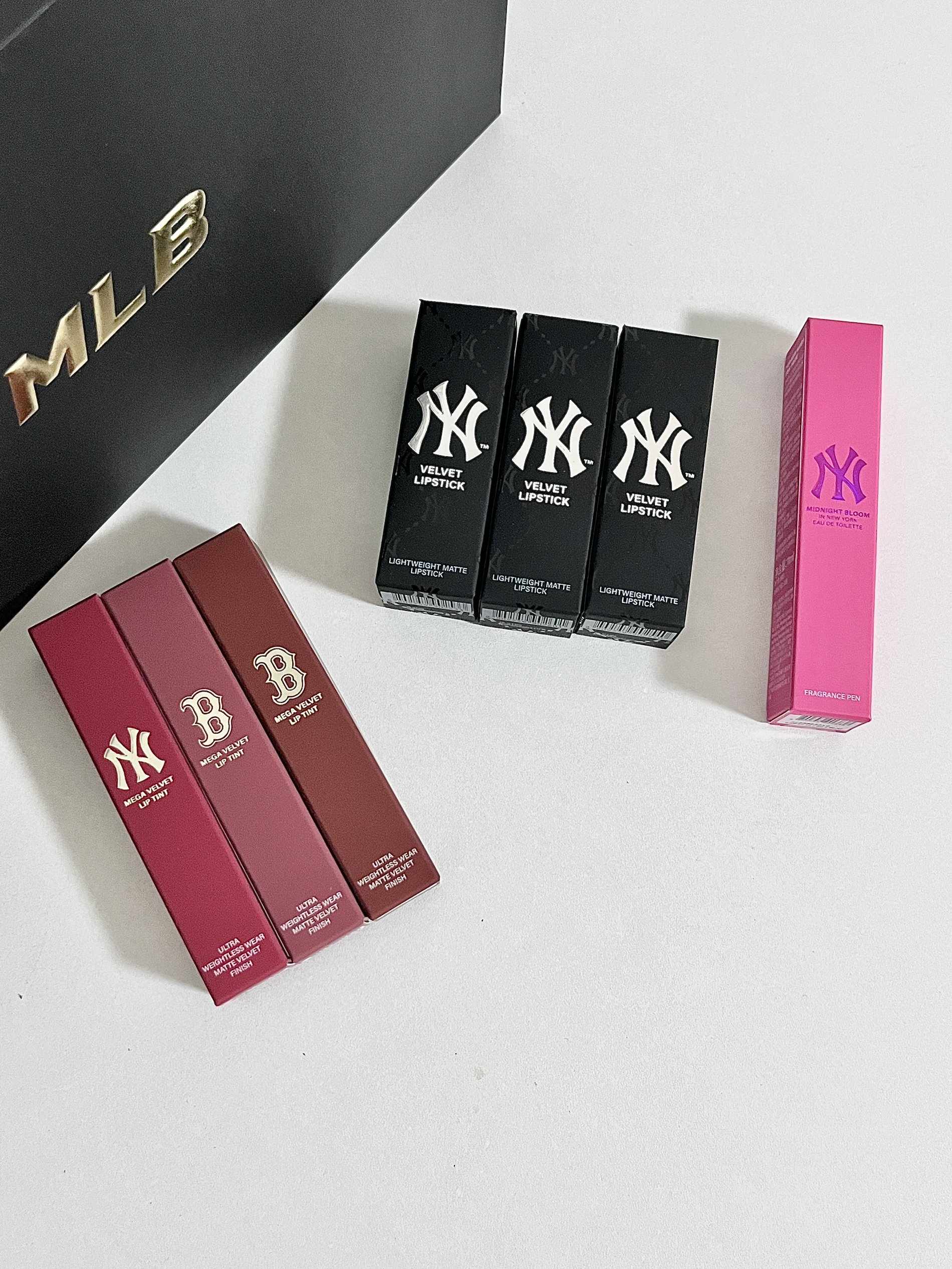 MLB明星彩香限定礼盒 介个礼盒太浪漫了 沉甸甸的很有分量 送人尊嘟倍儿有面子!! 女孩子收到这个礼物真的会hin开心 礼盒内包含3支唇霜+3支口红+1支滚珠香水 唇霜和口红每支色号都好好看啊~ 唇霜最爱V604茶栗奶咖 灰调肉桂奶咖色 清冷慵懒氛围感! 口红最爱V502仙雾玫瑰 有点像干枯玫瑰 百搭且显白! 还有支MLB滚珠香水 香香甜甜的 日常携带补香也蛮方便~