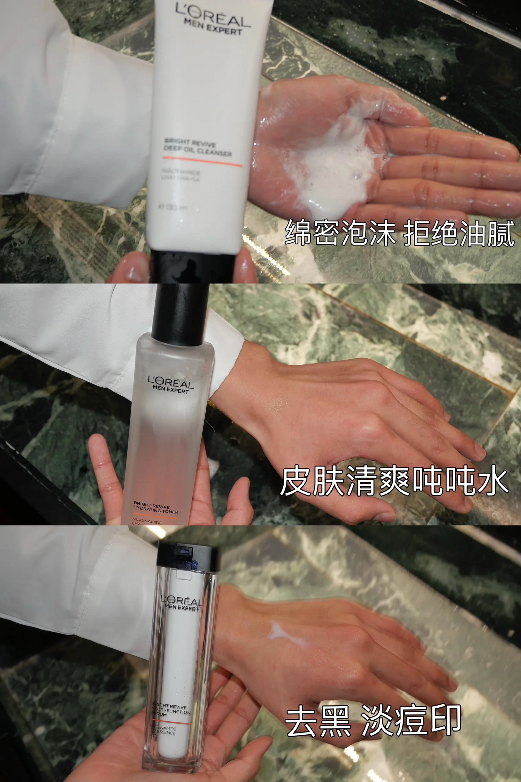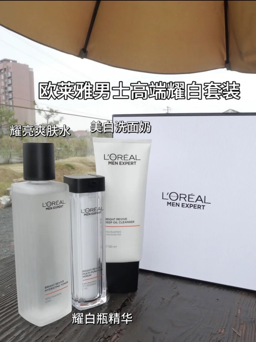 本篇笔记关联了【男士专用】L'OREAL/欧莱雅 耀白瓶护肤套装【水+乳+洁面】温和焕亮美白淡痘印 水180ml+精华乳50ml+洁面130ml等商品,为用户提供真实的使用体验和购买参考。