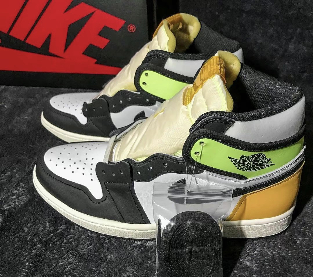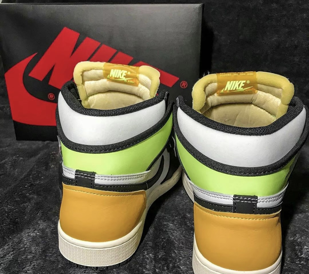 今天分享的是Air Jordan 1 high OG retro"volt gold" 依旧是自穿好鞋系列,原价附近真的香! 整体采用橘黄色和荧光绿为主色调,鞋头和 sswoosh则用黑色点缀,比较亮眼的配色,荧光 绿部分也有夜光效果 鞋舌采用海绵打造,鞋舌标也做了一个反转设计,非常的细节~ 个人觉得这双鞋比较适合穿搭,感兴趣的小伙伴 可以入手哦
