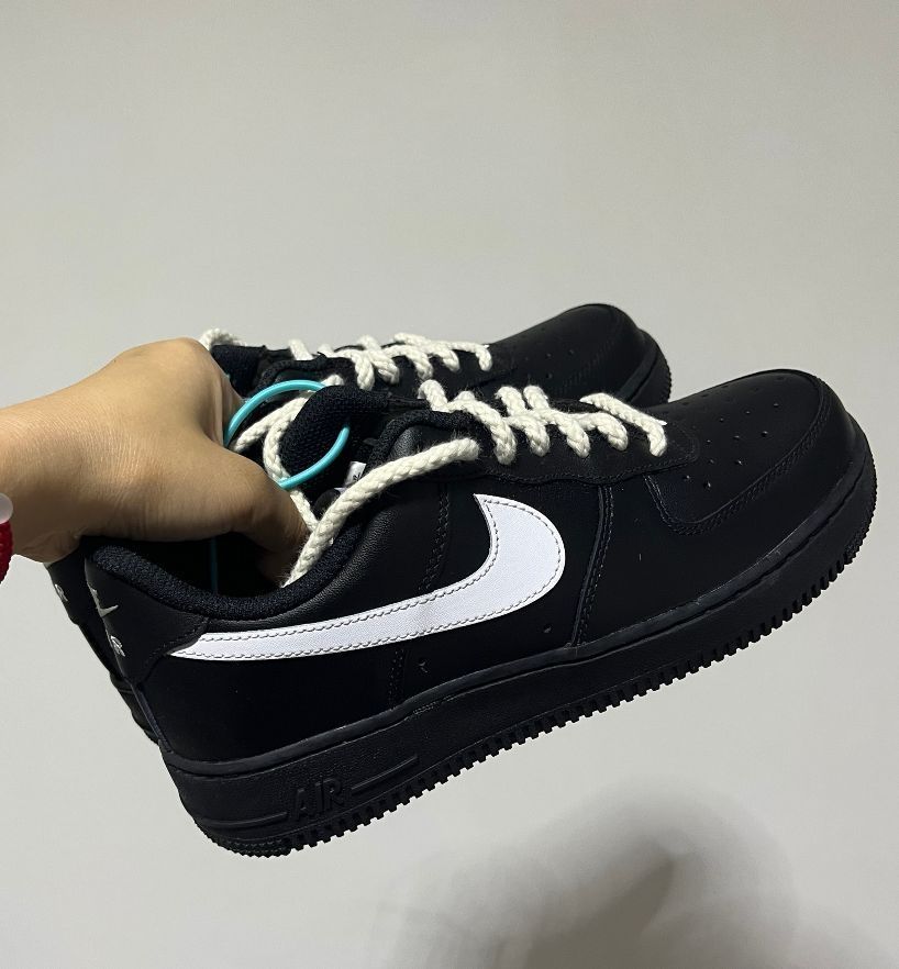 今天和大家分享一双很耐看的板鞋就是这双Nike Air force1 low黑白乍一看和ambush联名款好像啊~ 有着异曲同工之处哈!磨砂黑结合白勾设计百搭的同时,还很耐脏!相较于黑武士,不会显得单调增加了层次感~ 鞋面的皮质质感不错的经典的鞋型还有4厘米的增高! 可以换上米黄色麻绳鞋带又是一种不同的 风格~ 尺码正常就可以不偏码