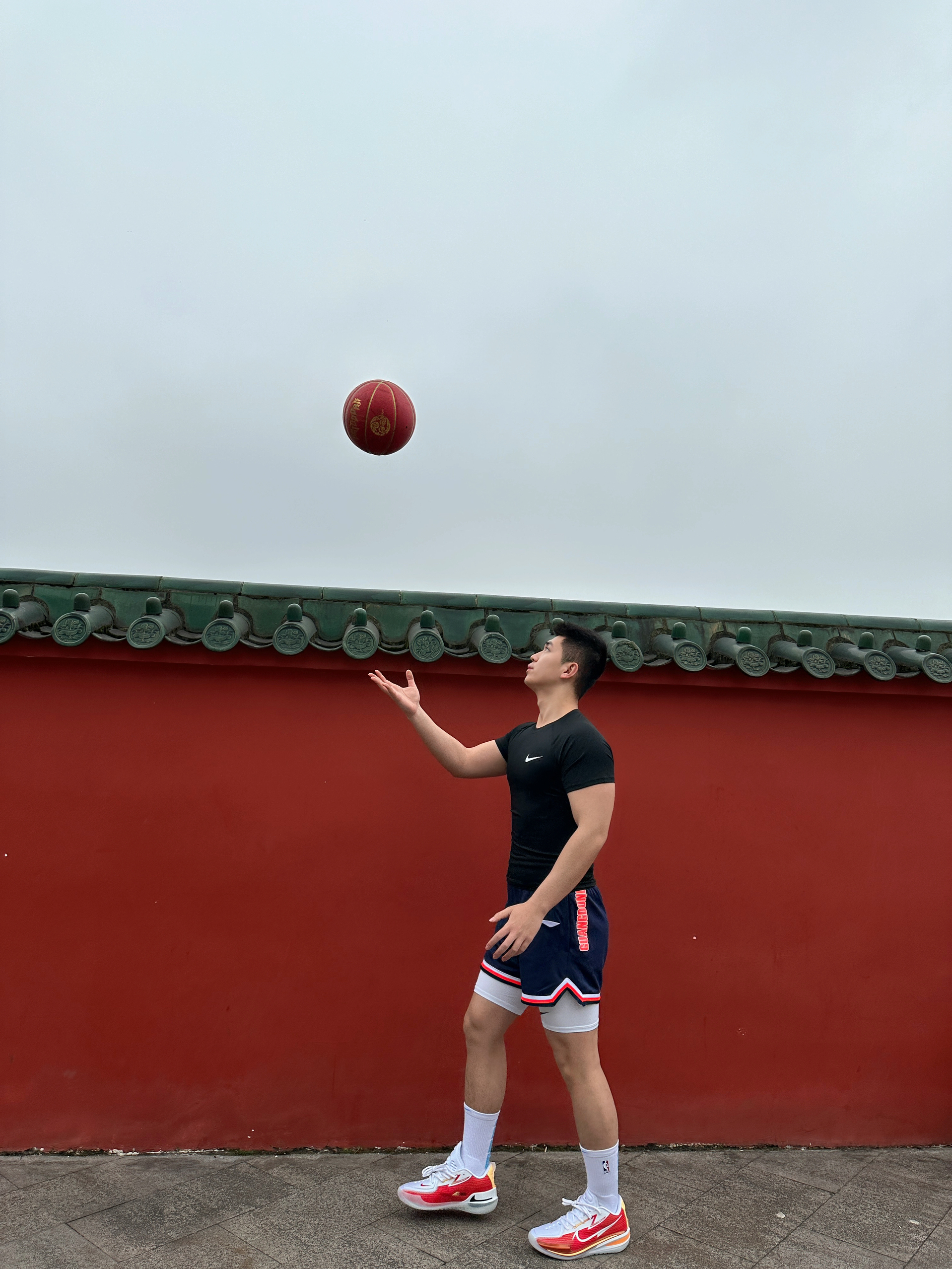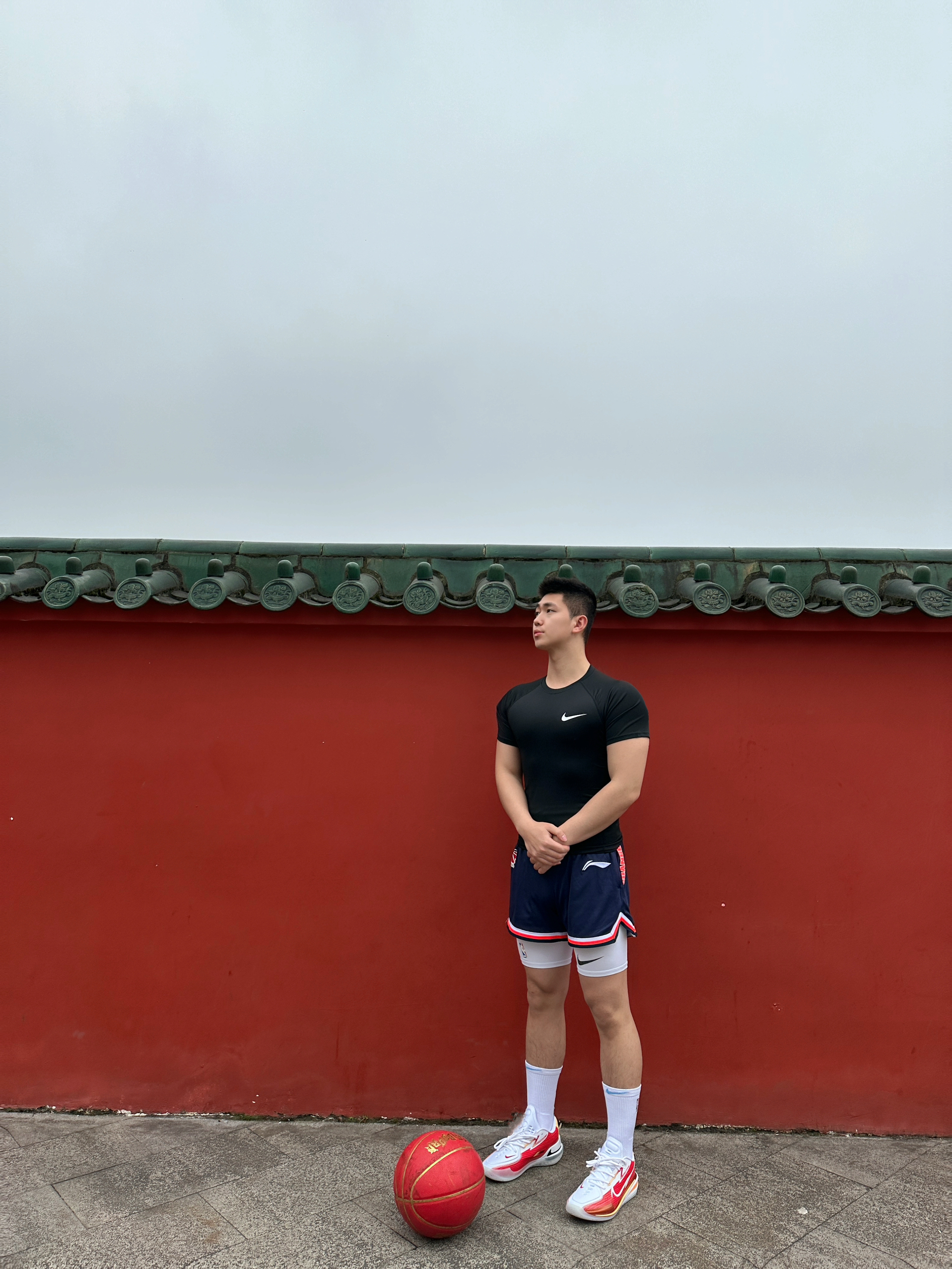 身高|体重:185/85kg 🧍♂️ 穿搭风格:体育生 👔 上衣:Nike小勾速干透气短袖 👖 下装:李宁cba篮球短裤➕nike白色打底裤 👟 鞋子:NikeG.T