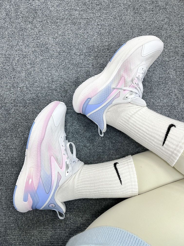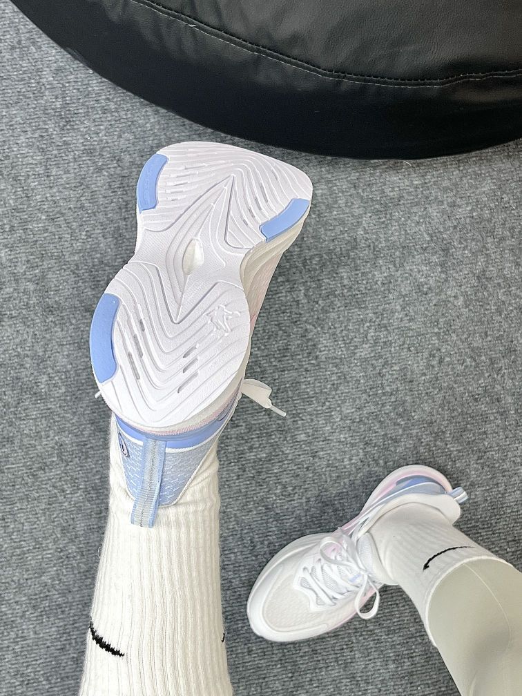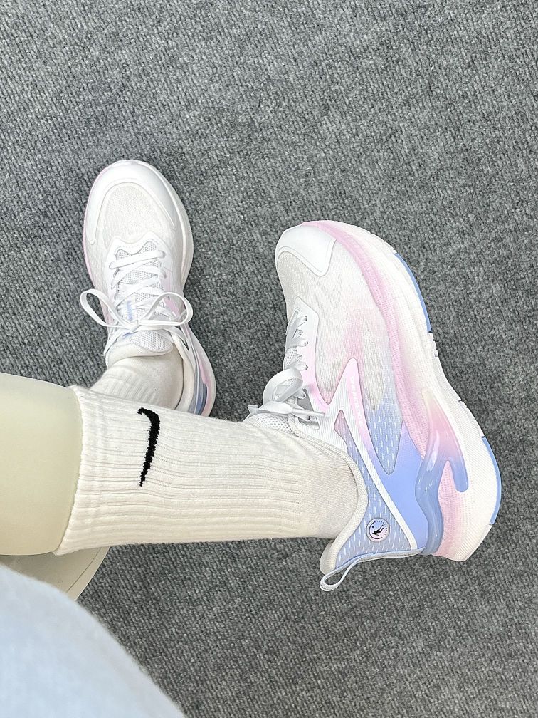 饱和度好高的一双跑鞋 外观颜值就很Nice 很甜很甜的感觉 上脚当然也是和颜值一样让人很舒服啦~ 而且上脚搭配也好显白呢