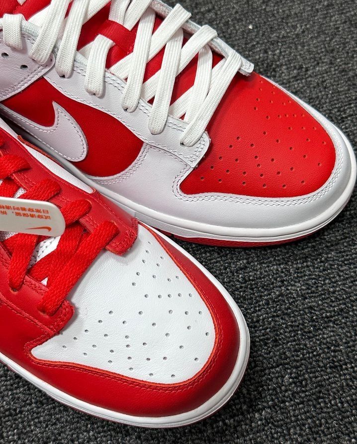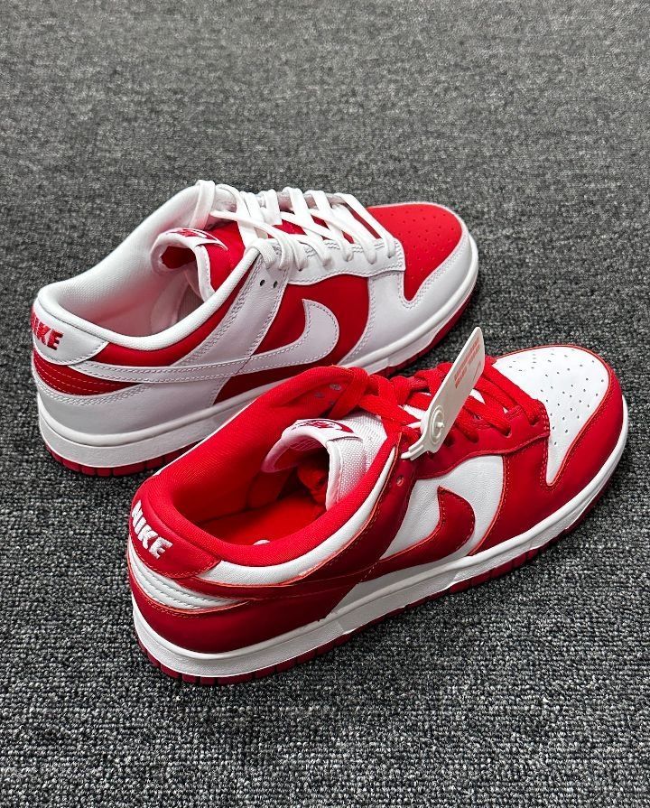 今天为大家分享两双红色系Dunk,两款鞋子配色方面都采用了红色与白色拼接搭配,比较干净,喜庆的氛围感满满。 鞋子采用了皮革材质,打理方便,日常搭配牛仔裤或者休闲裤都是不错的选择。 尺码方面建议正码选择就好啦