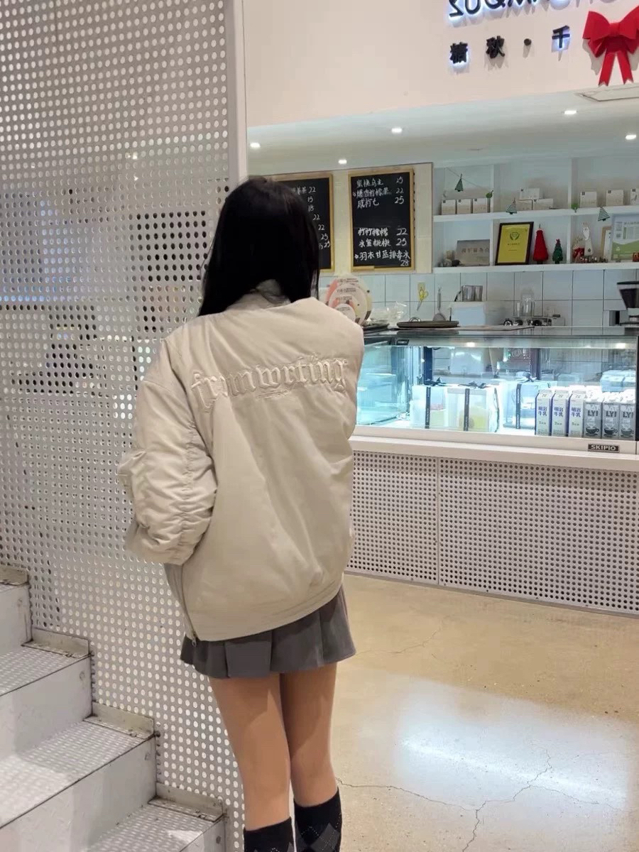🍃棉服就是飞行夹克外套那种 长度对于小个子我觉得刚好 搭配一条比较复古的牛仔裤 🎒牛仔裤我以前分享过哒长度对于小个子也合适 耳机是我随便入的因为马上要考四级了哈哈就拿来刚好搭配这一套🐾