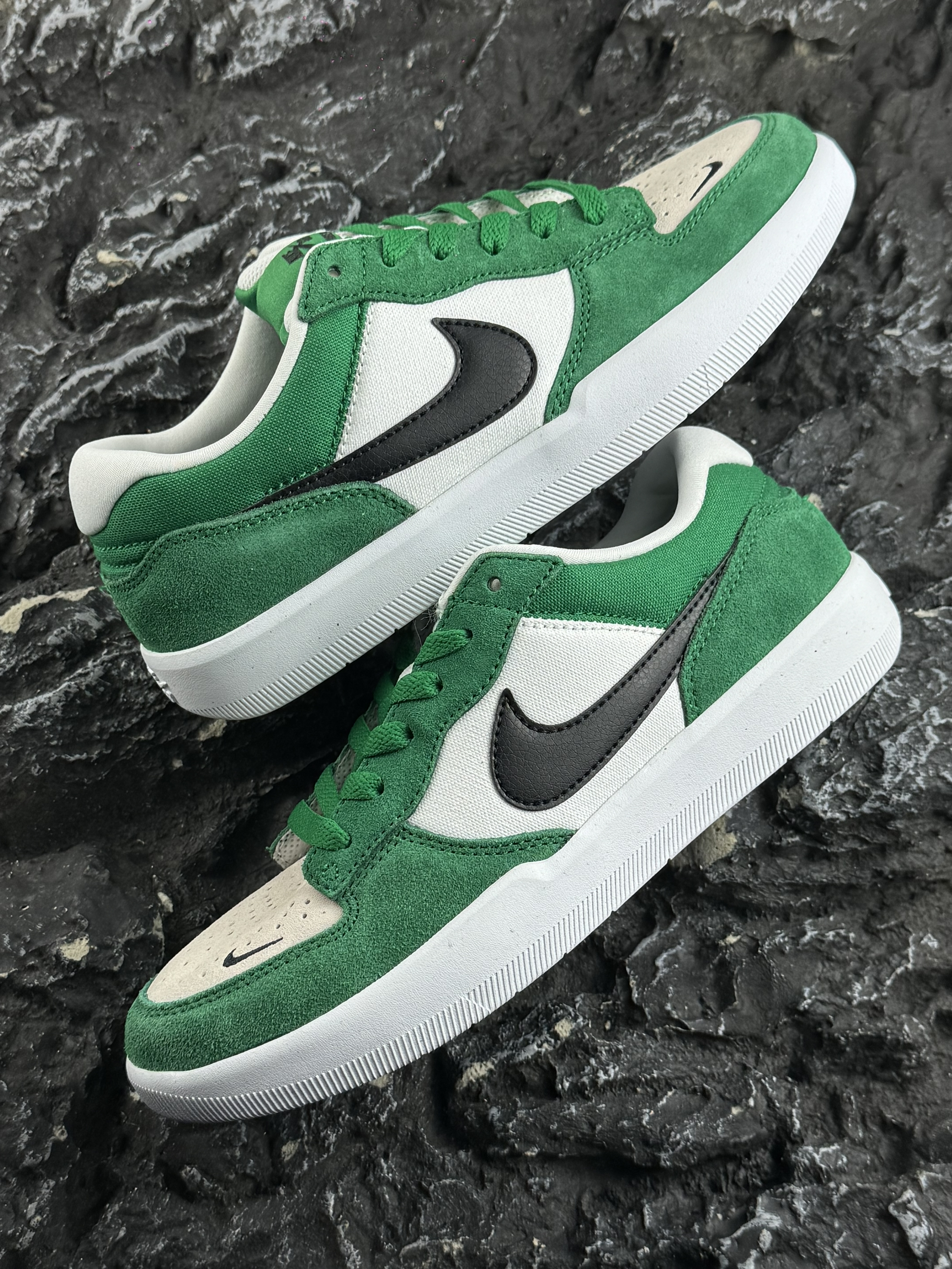 开箱即分享 今天和大家带来一款高颜出街板鞋 分别是Nike SB Force58 白绿色 实物颜值还是蛮酷炫的 废话不多说 让我们一起看一下板鞋细节方面