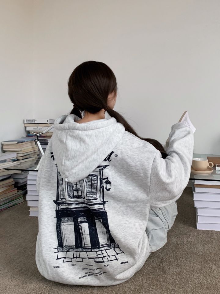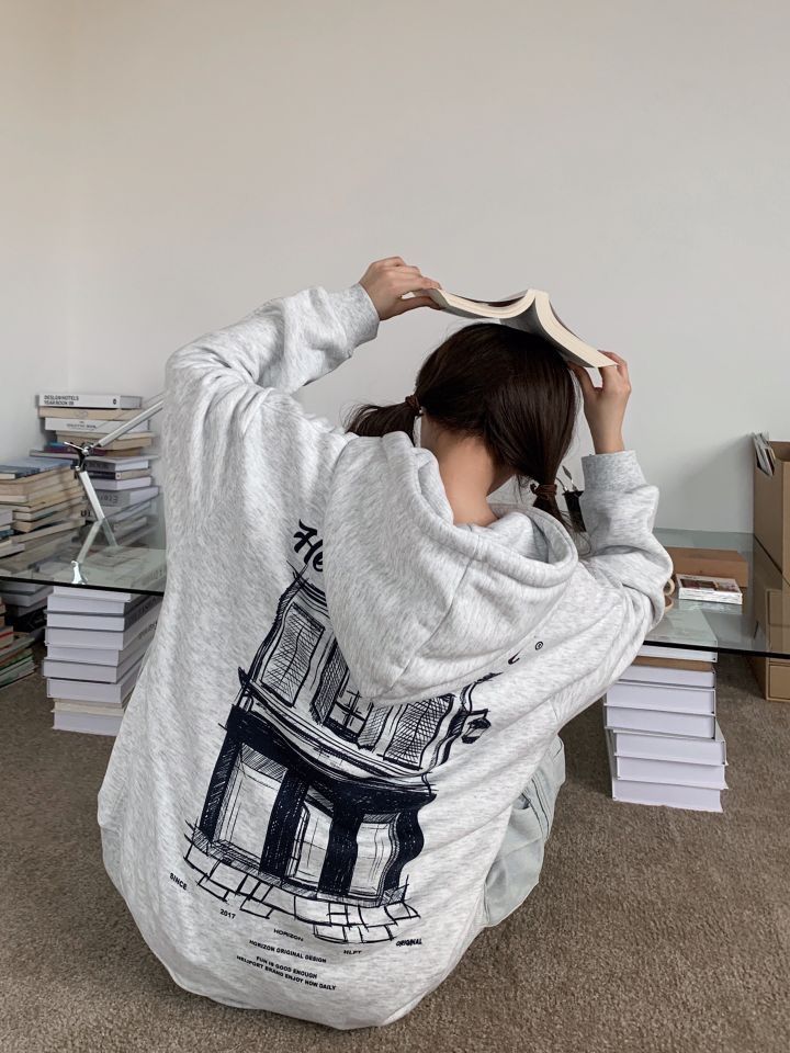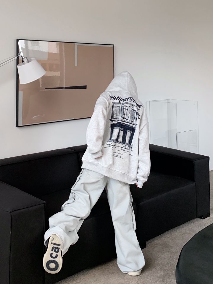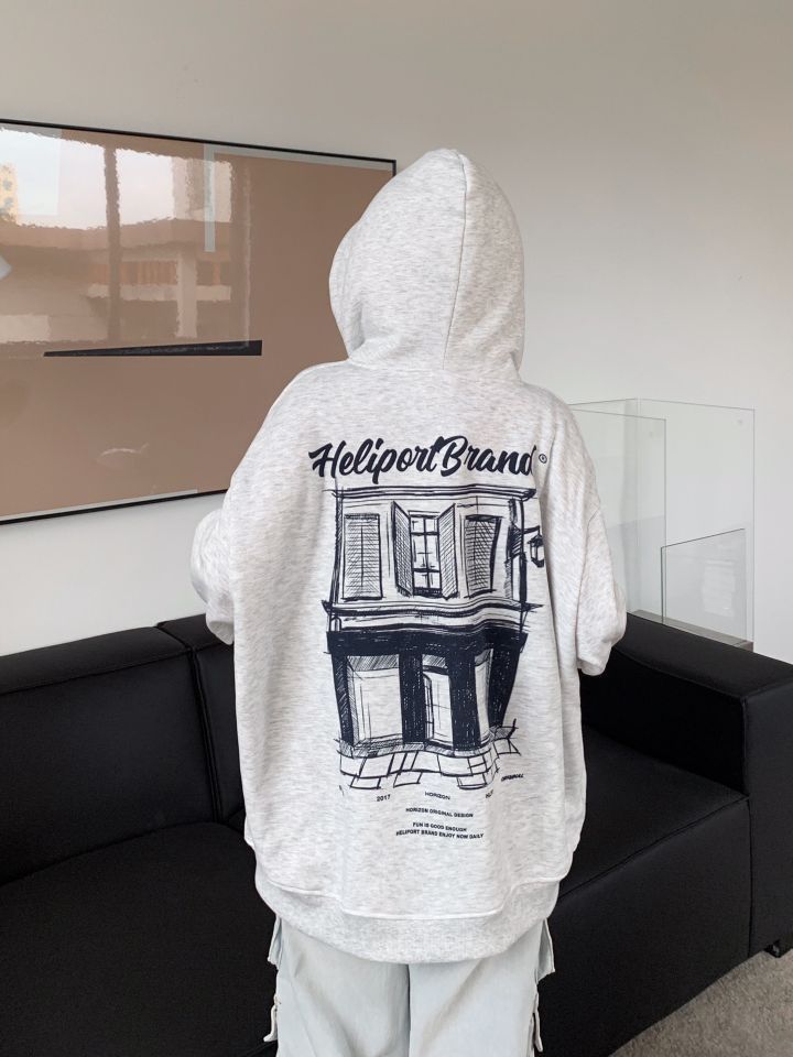 🌈春天就是各种卫衣袭来的季节 又挖到一件超百搭的开衫卫衣 👔: HELIPORT 停机坪 🌈花灰色真的是百搭不挑人 然后卫衣一定要挑这种宽松版型的 带一种慵懒的感觉 而且还不显胖 帽子也要选择这种尽量大的 显头小!再加上背后建筑草图的印花 简直帅爆了!内里是加绒的 平时当外套穿非常适合~ (图片来自博主:HELIPORT日常穿搭)
