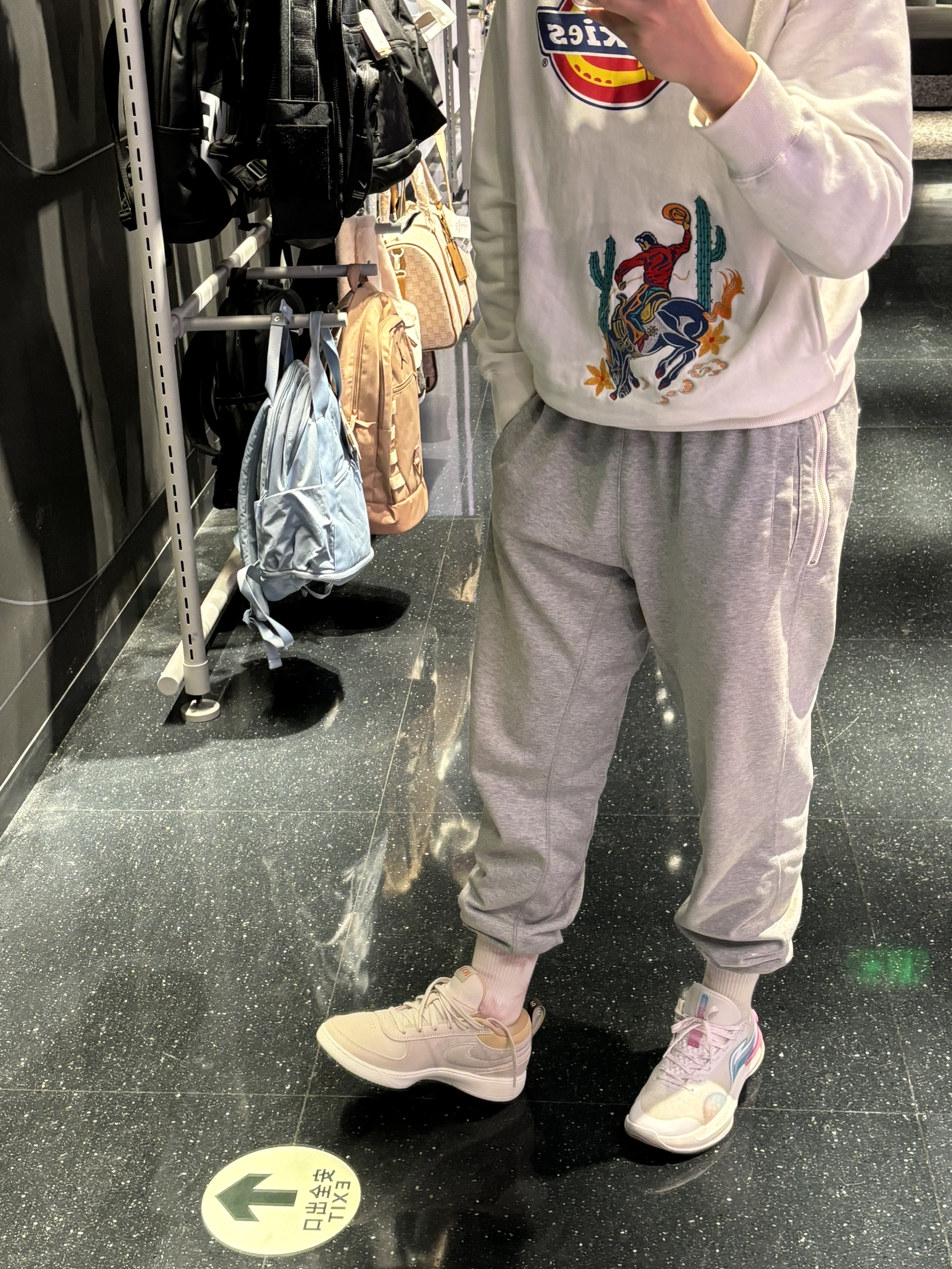 #不费力通勤ootd #把春天穿在身上 #这样穿嘎嘎显高 #不同专业的同学怎么穿 #这双带我上大分 兄弟们这么穿嘎嘎显高啊 你能猜到我是什么专业的吗? 我今天这一套好像更适合搭配米白色的布克一代 你们觉得哪一个配色更好看下方⬇️投票吧 尺码方面是不偏码的 灰色束脚长裤刚好适合现在这个季节 简单的宽松卫衣有种运动风 怎么选