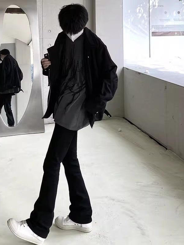 👔水洗黑做打底➕牛仔外套安排上 👖纯黑修身微喇牛仔裤 👟纯色小白鞋 气质这块一整个拿捏了家人们💪