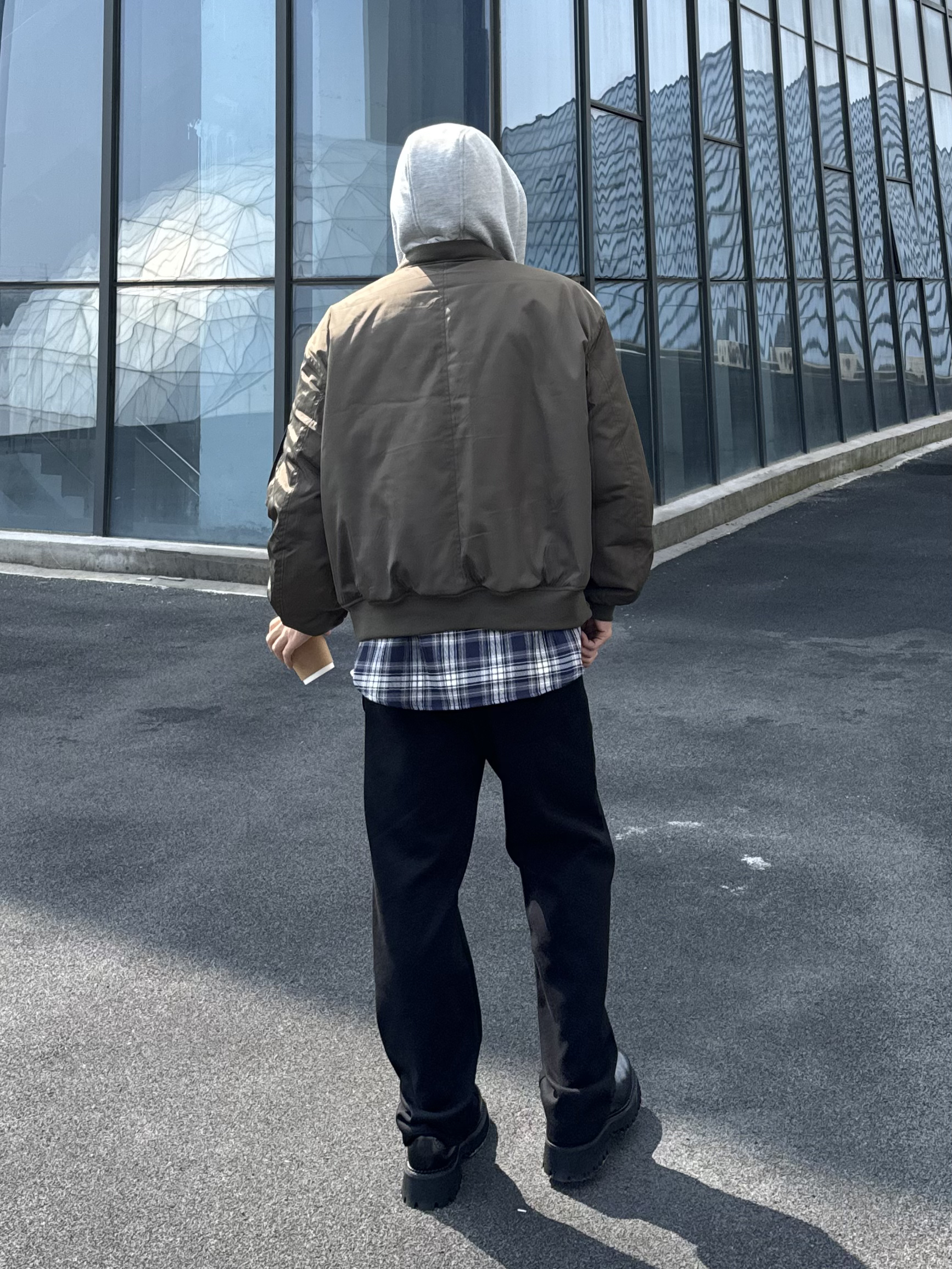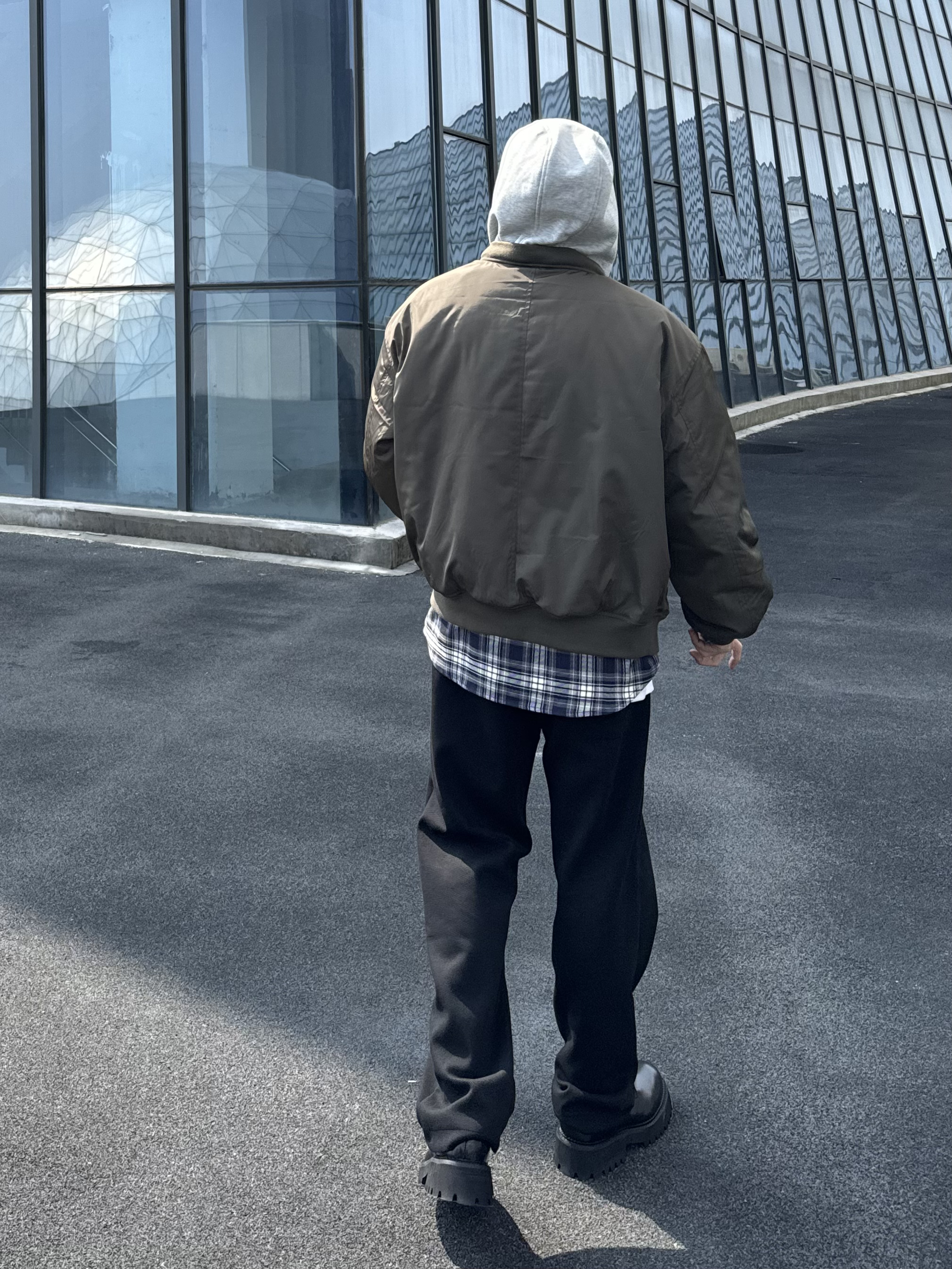 说真的,飞行夹克真的太适合酷酷的家人们了,男生女生穿着都很合适 我183体重135穿的是xl码 上身的效果是这样,大家可以做个参考