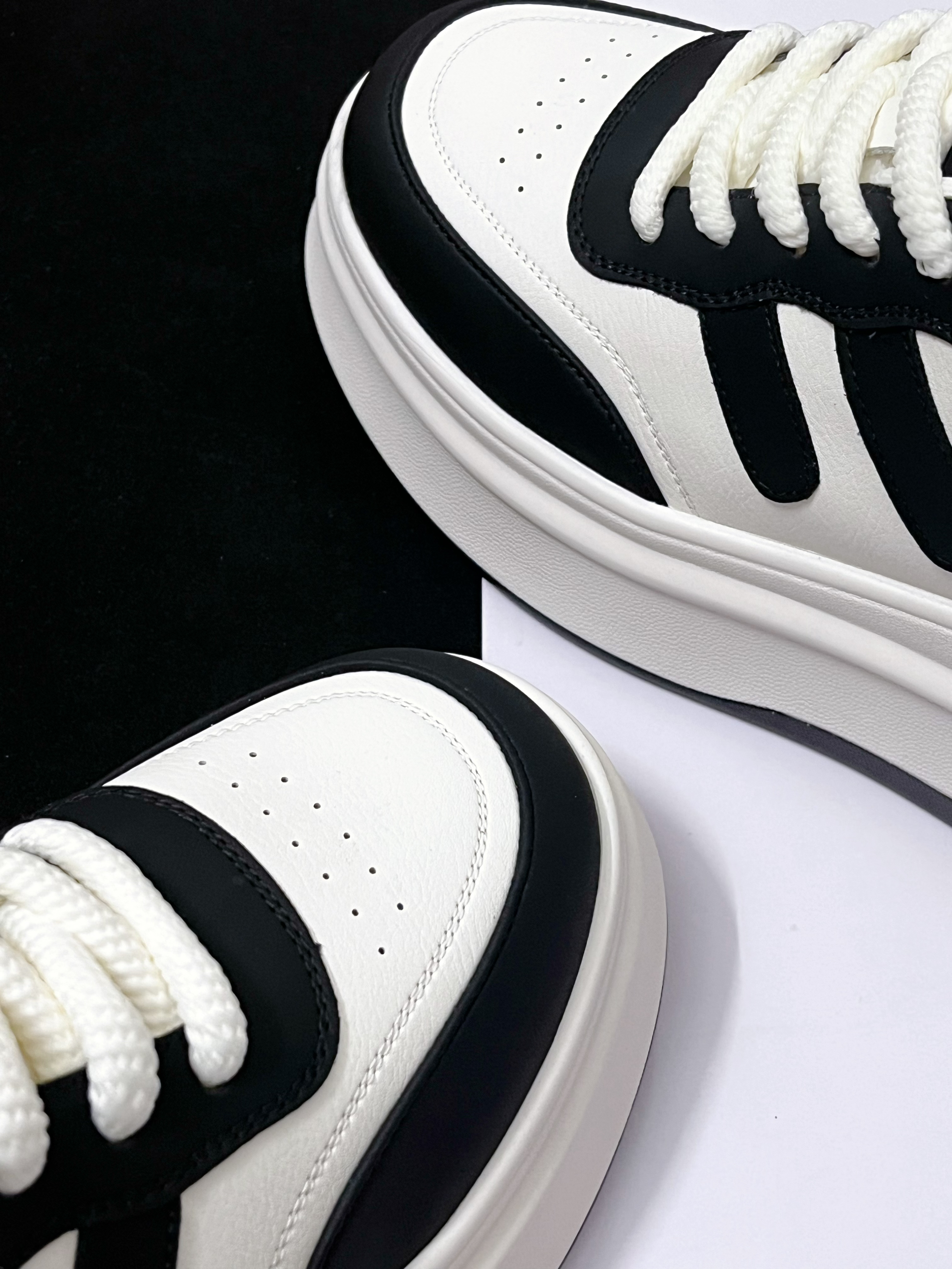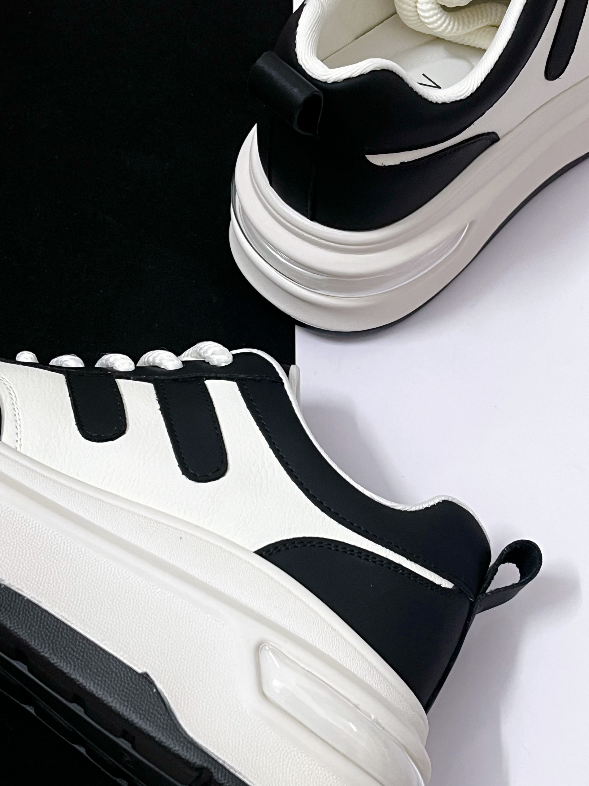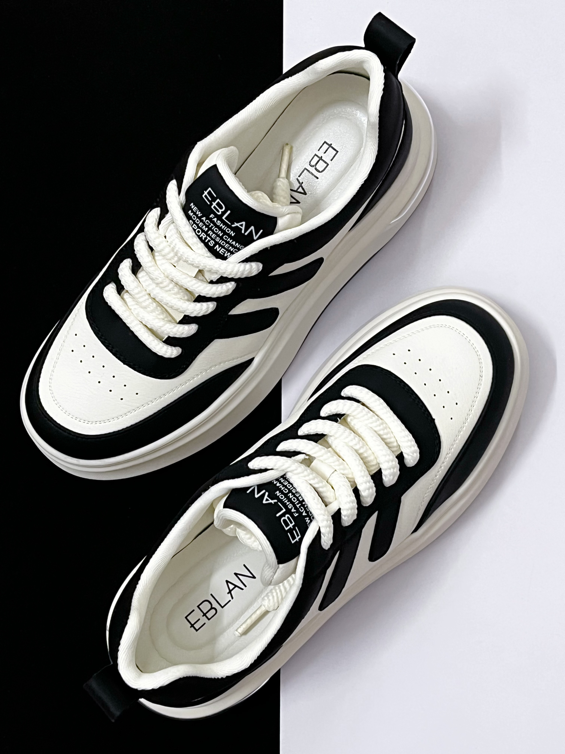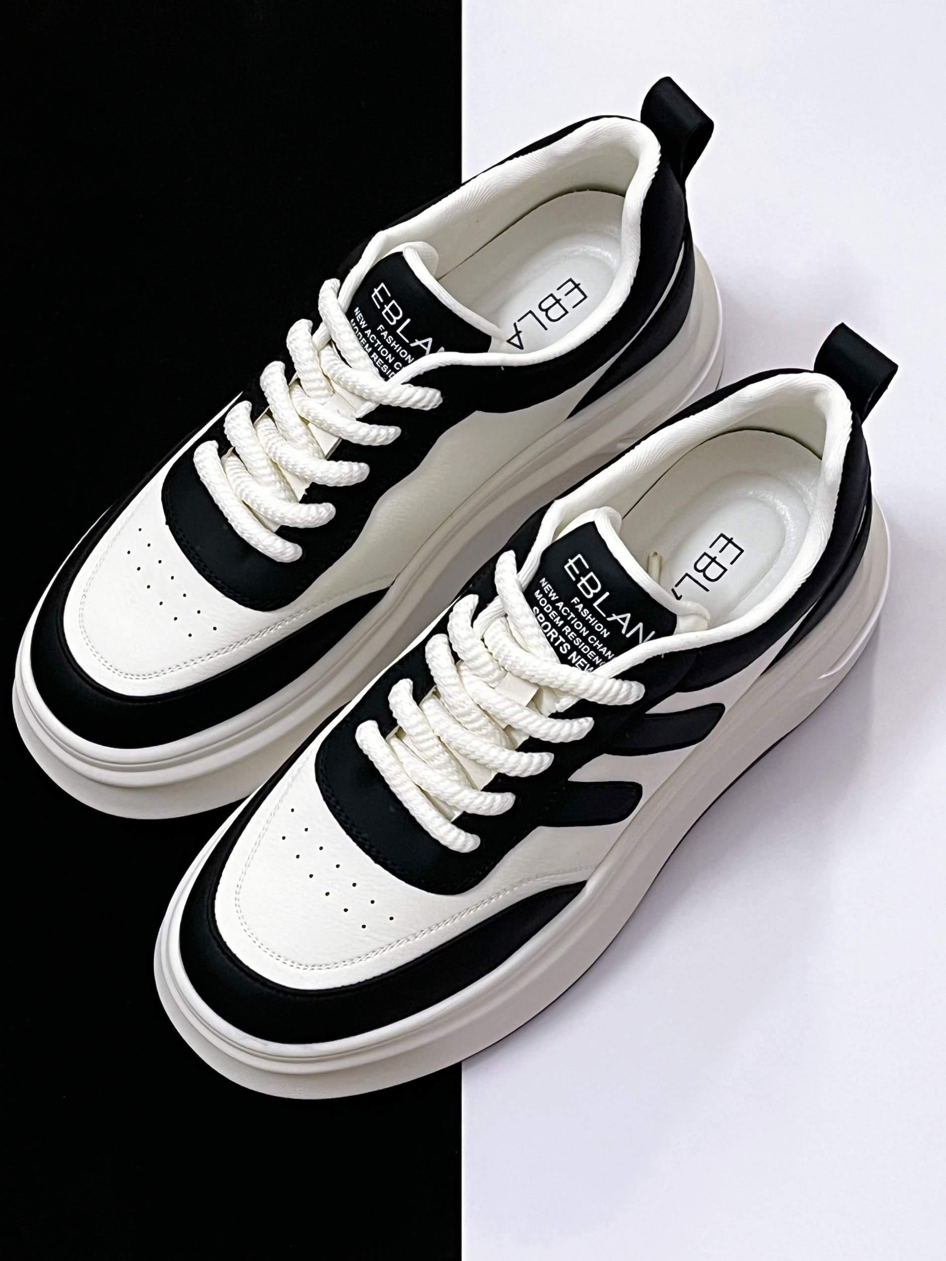 ☀️在春天鞋款的选择上,个人觉得可以尝试一下简约风格的休闲鞋,比如这款EBLAN黑白厚底休闲鞋,百搭的黑白搭配,搭配厚底的设计,上脚效果很百搭显气质。 ☀️皮革鞋面摸起来的整体质感蛮柔软的,穿起来不会磨脚。穿搭方面搭配长筒裤或者牛仔裤都很合适,码数方面是不偏码的,正常尺码选择即可。