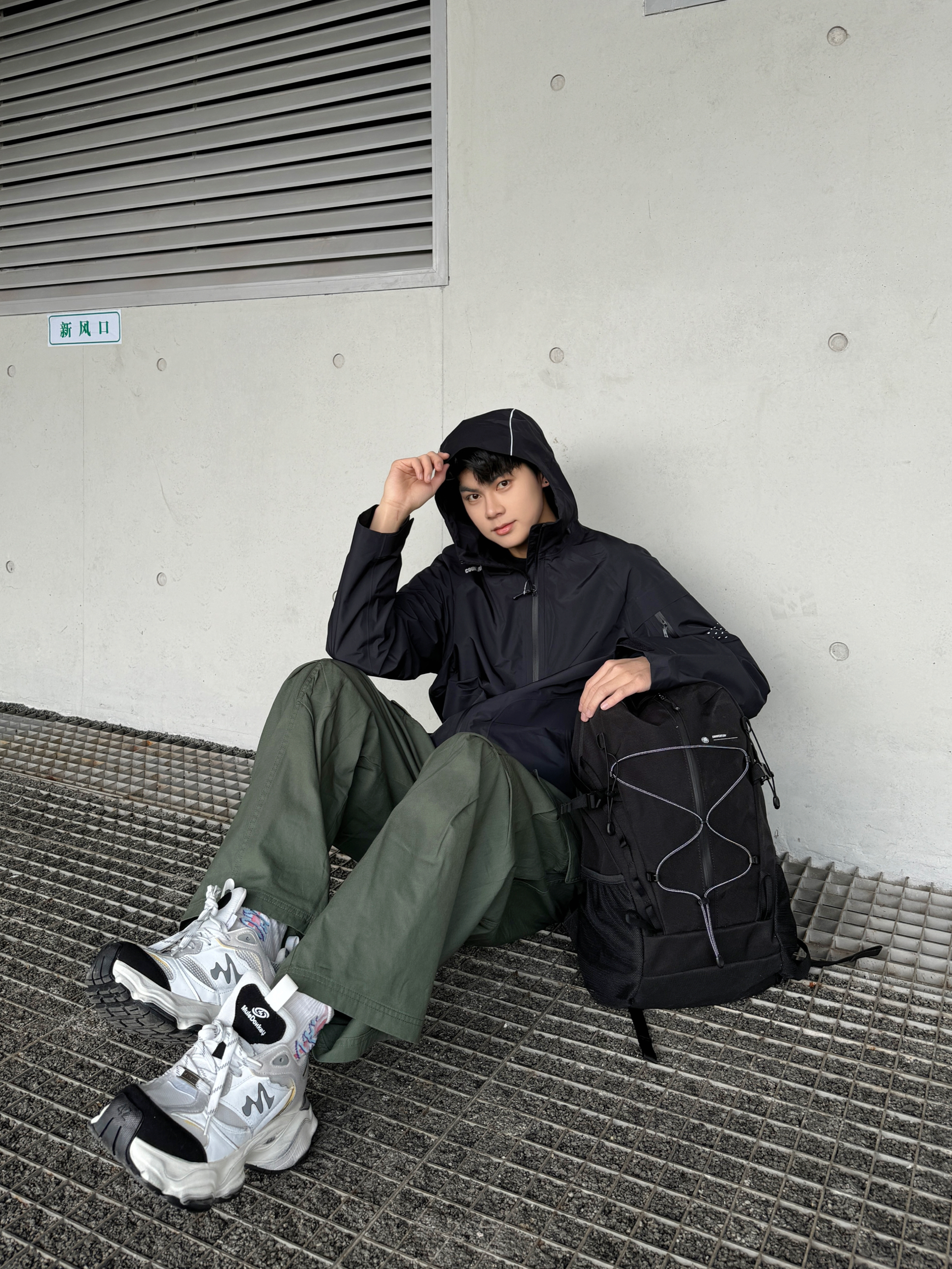 哈喽小伙伴们 这里是阿祖[藤原浩] - 今日和小伙伴们分享的这套真的有够帅的! 小伙伴们快来围观一下[耍酷] 想要穿出城市户外风格 冲锋衣不可少🙅🏻♂️ 黑色系的冲锋衣上身效果巨帅 蛮显气质~ 搭配墨绿色的宽松休闲裤 户外的感觉就来了 ! 包包也是穿搭的重要一环 不花哨的黑色系书包就刚好 ✓ 包包采用了聚酯纤维面料 很耐造[装到了] 搭配帅气增高老爹鞋 这身穿搭有那味了! - 👦🏻我的身...