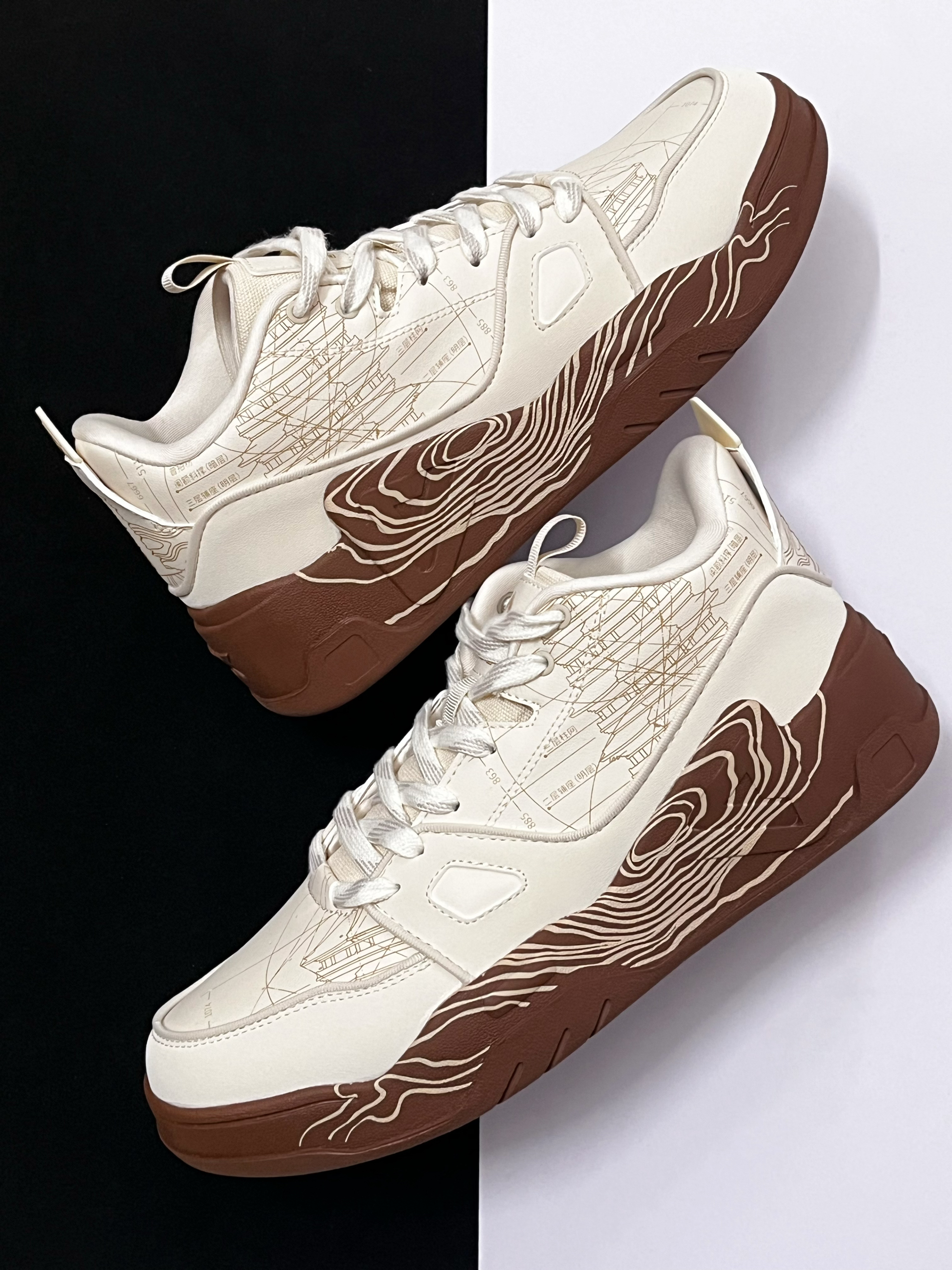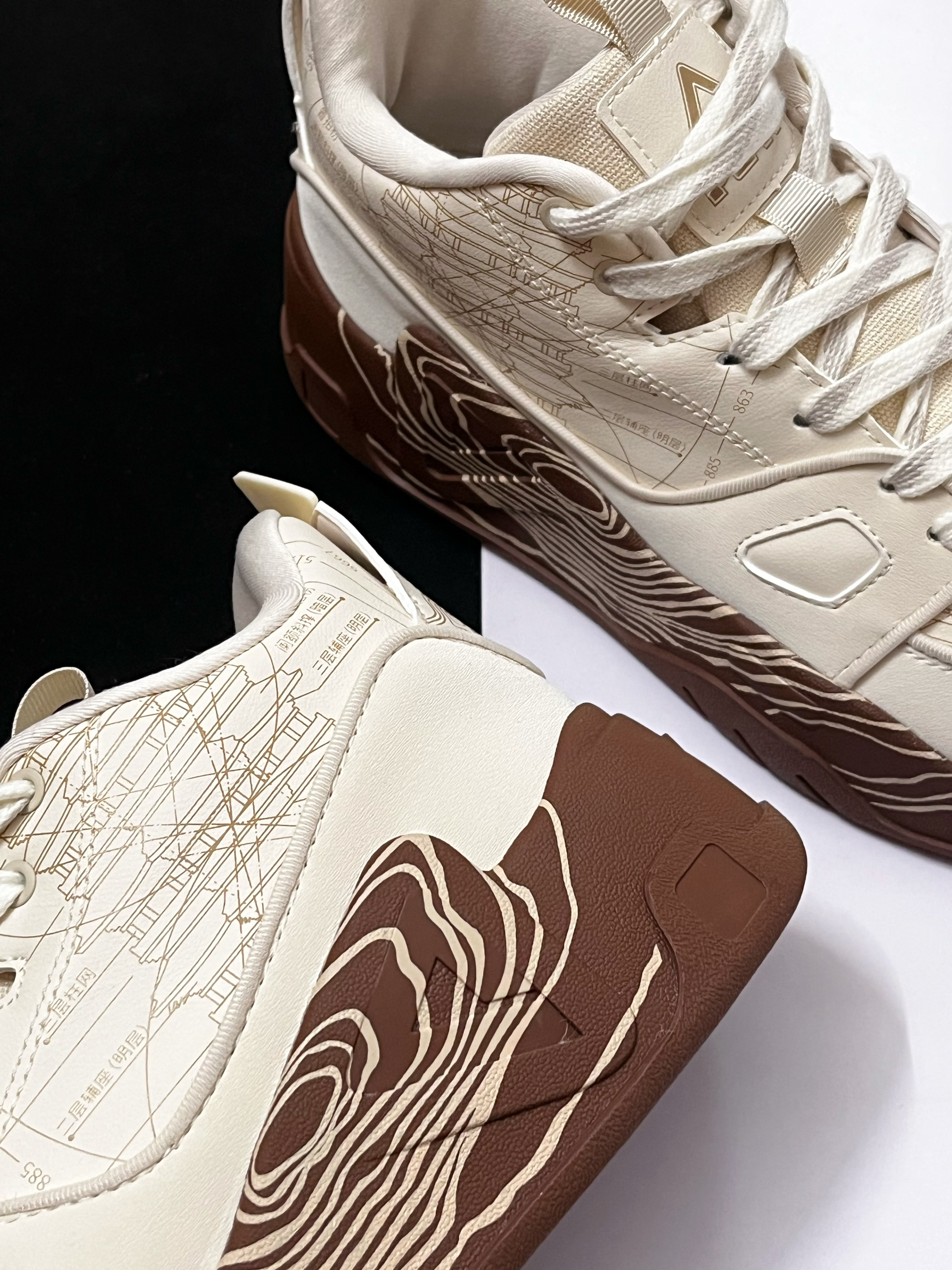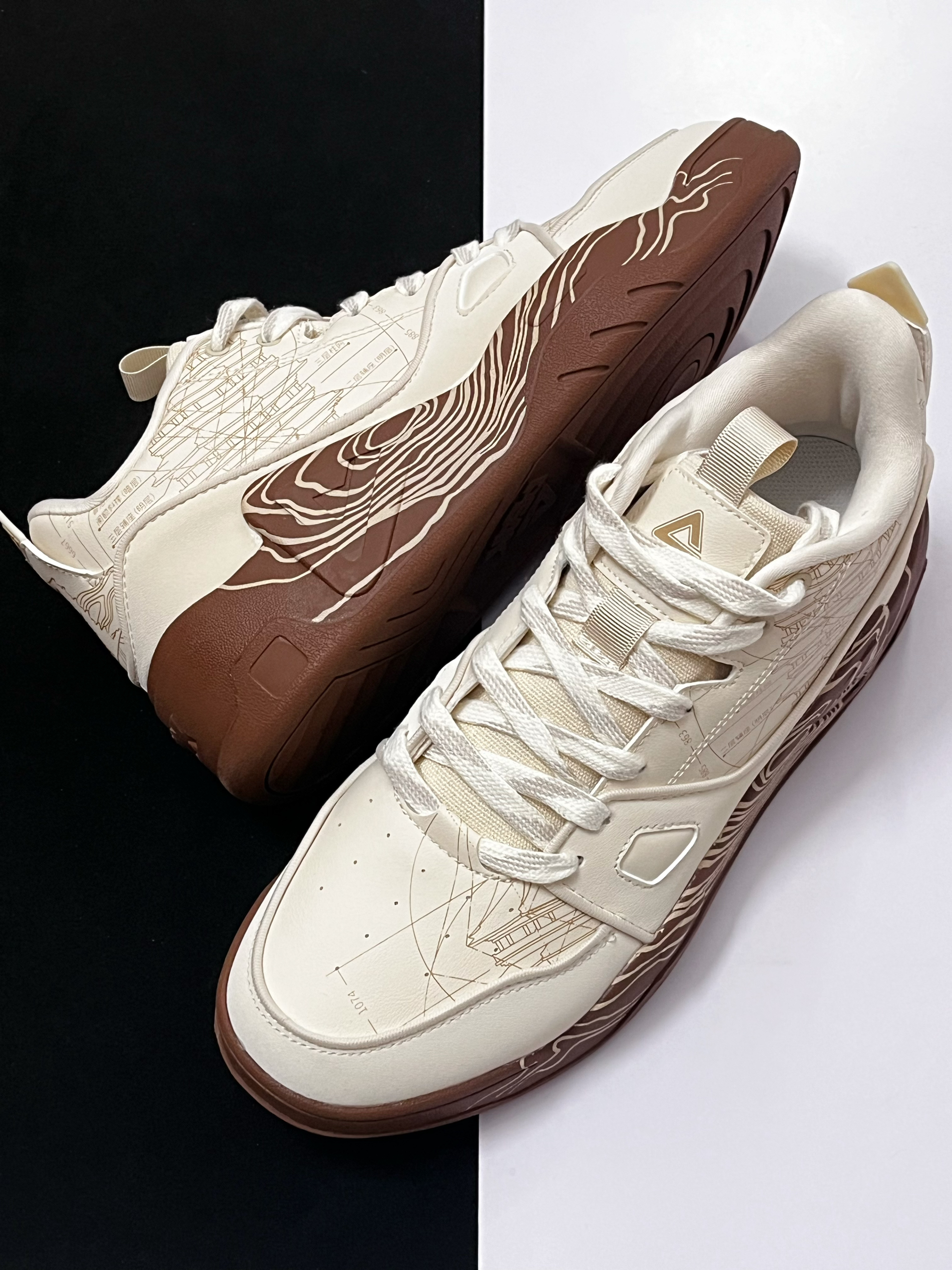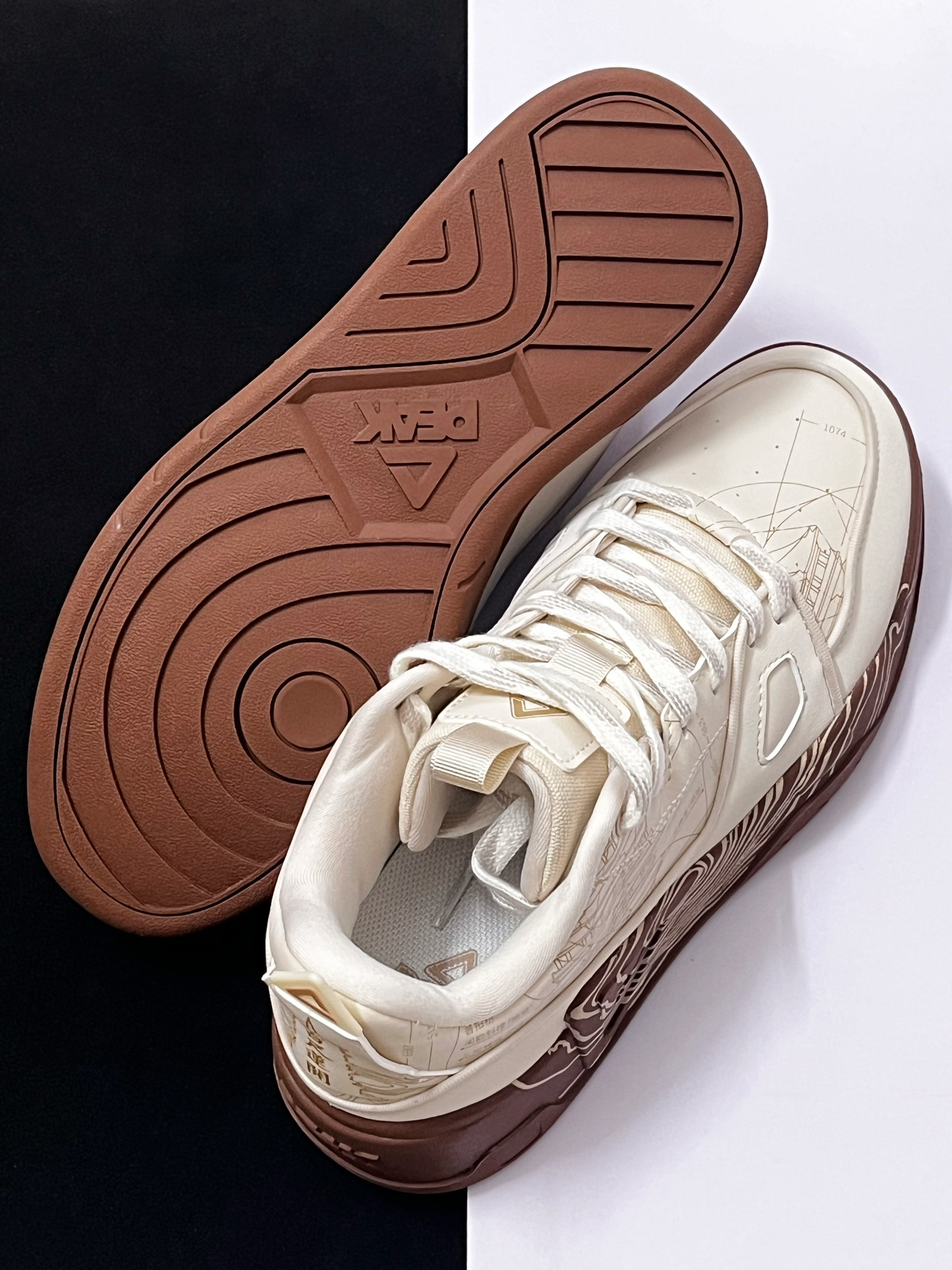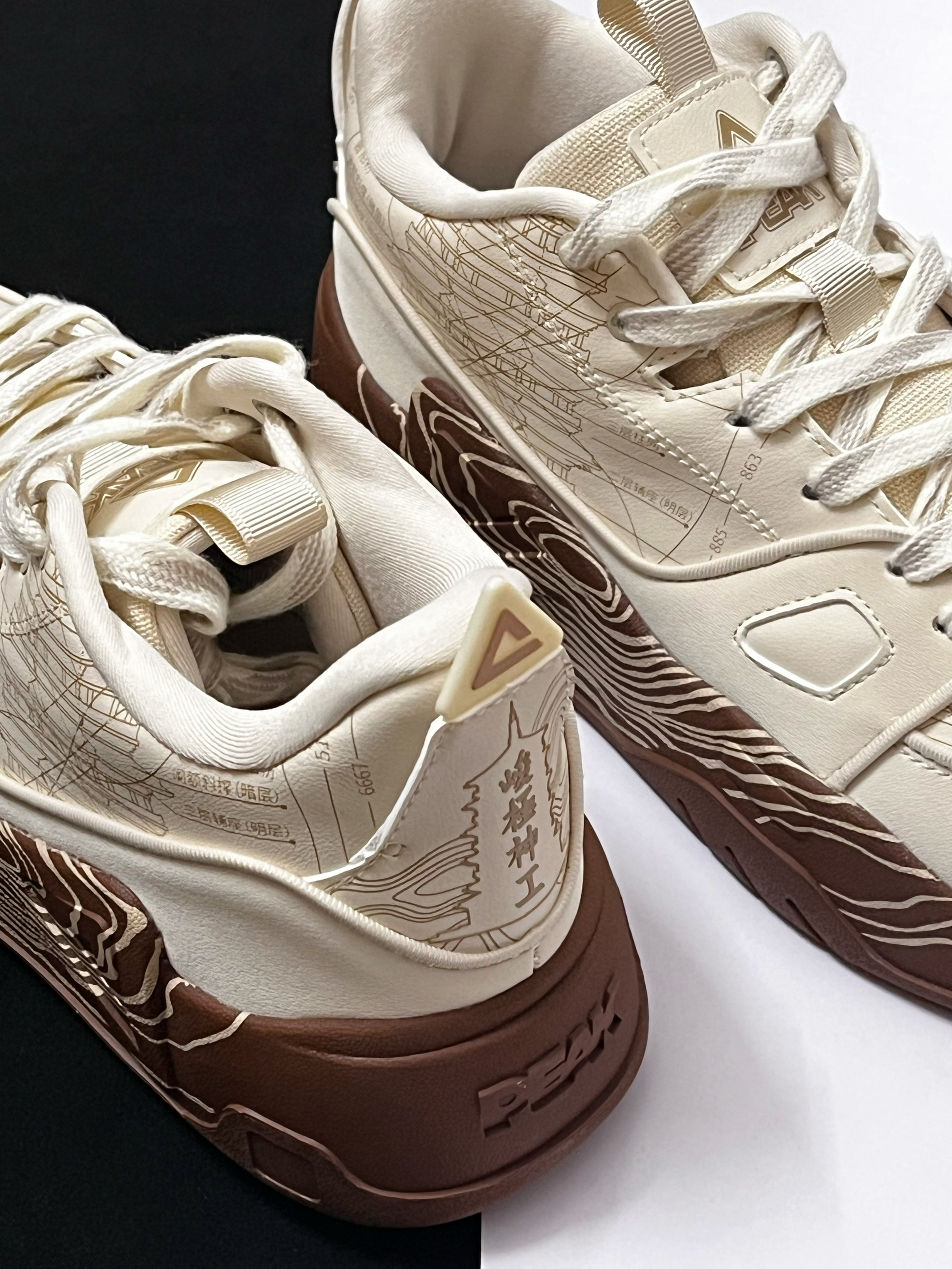🟤对于这一款来自匹克国创系列的态极板鞋,它的鞋面有着很多细节设计。中底的莲花纹路搭配鞋身上的古塔插画,整体带给我的视觉效果很不错,满满的国风氛围感。 🟤我个人挺喜欢它鞋底的这种类似年轮的纹路设计,看起来很独特复古。中底方面有态极缓震科技加持,上脚后的脚感挺软弹舒适的。 🟤这样一双很有国风氛围感的米棕色板鞋,个人觉得蛮适合当下的冬天穿,比较复古百搭,码数方面建议选小一码。