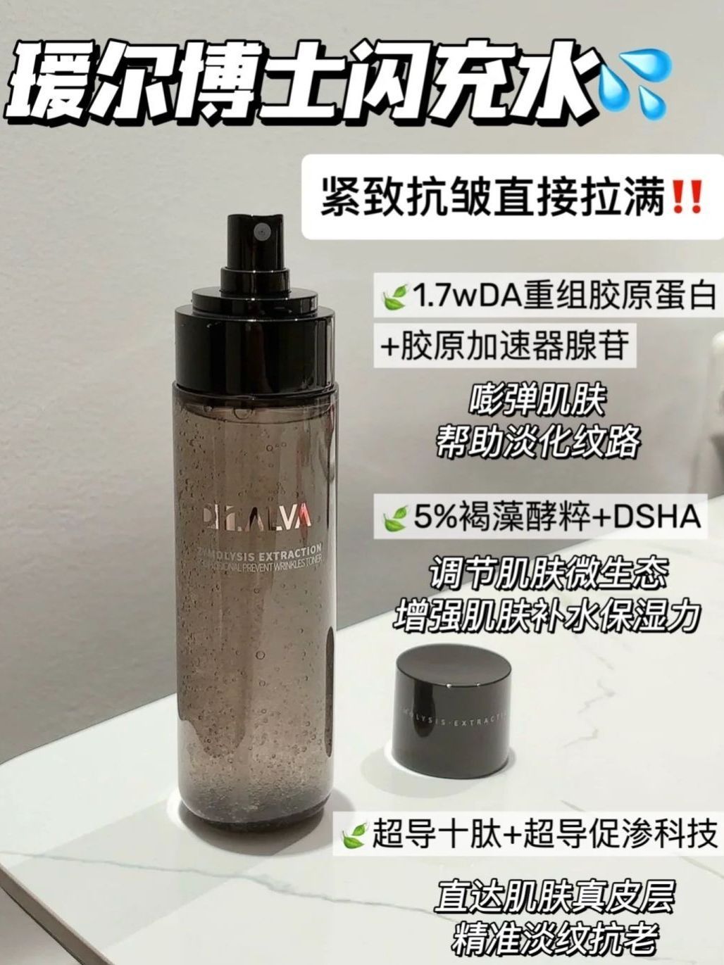 🌹Dr.Alva/瑷尔博士 补水保湿深层紧致抗皱修护屏障爽肤水,主要成分是莲花水+济州岛碳酸泡泡温泉水~ 🌹因为添加了白莲花水它还可以抗氧化!足足300ml~ 🌹抗氧化补水里的性价比之王~水质做的非常细,控油补水效果好 🌹上脸的感觉比较舒服~上脸的质地很清爽,不会有黏腻感,它的吸收还是很快的! 🌹爽肤水的成分比较简单~爽肤水在提高皮肤水润度的同时,不会有一些过敏成分,所以敏感几块而已放心用 🌹保湿...
