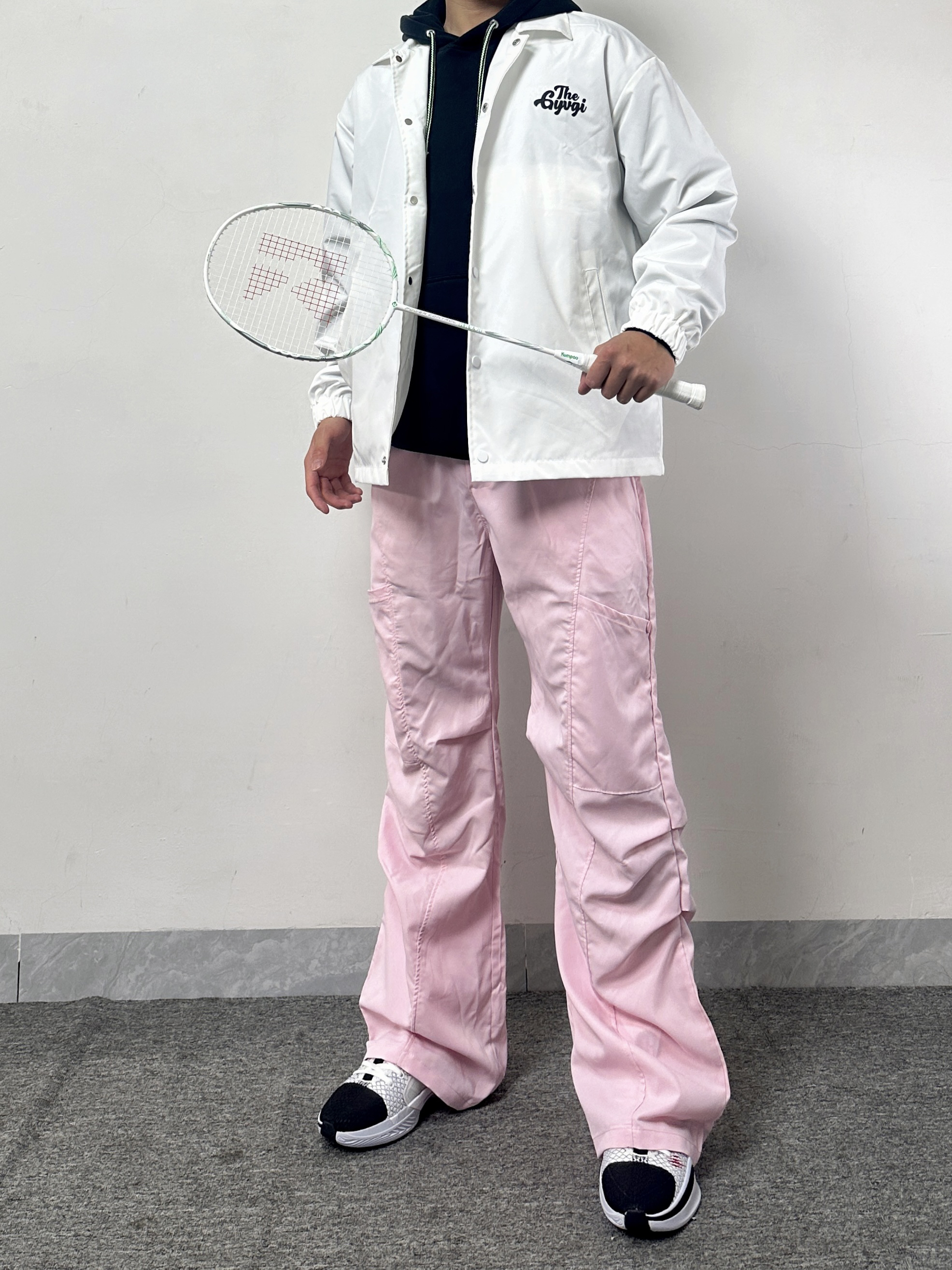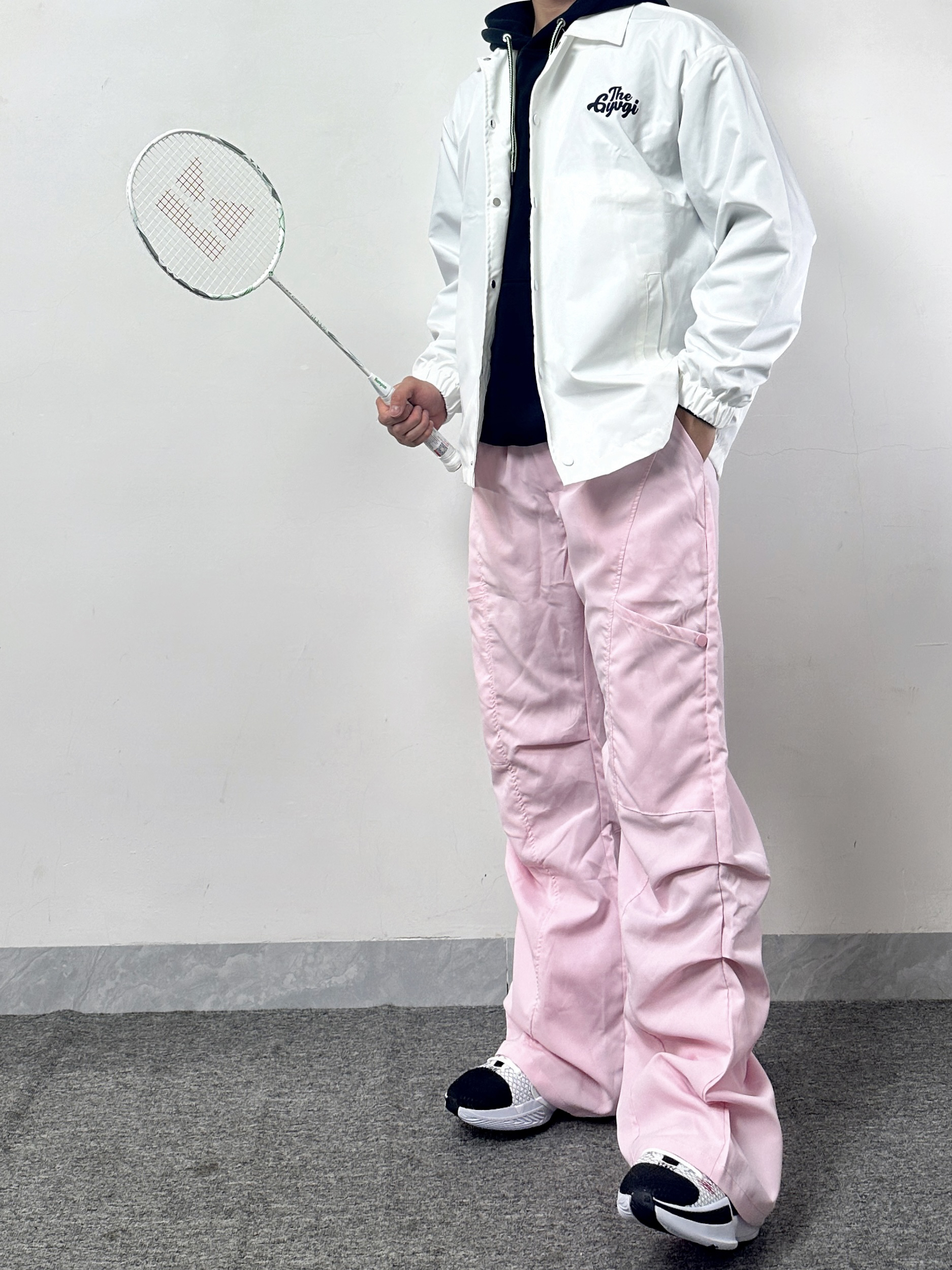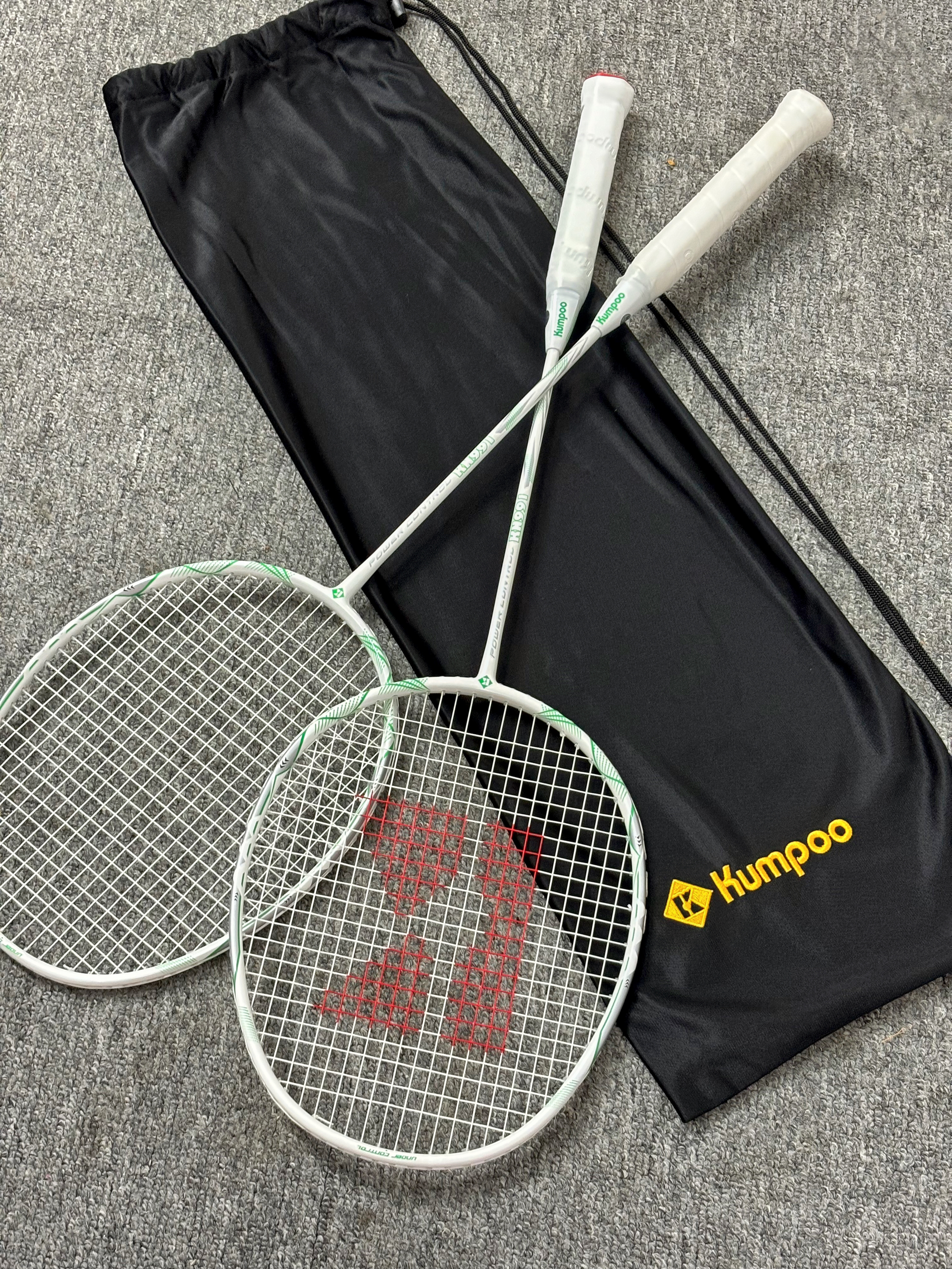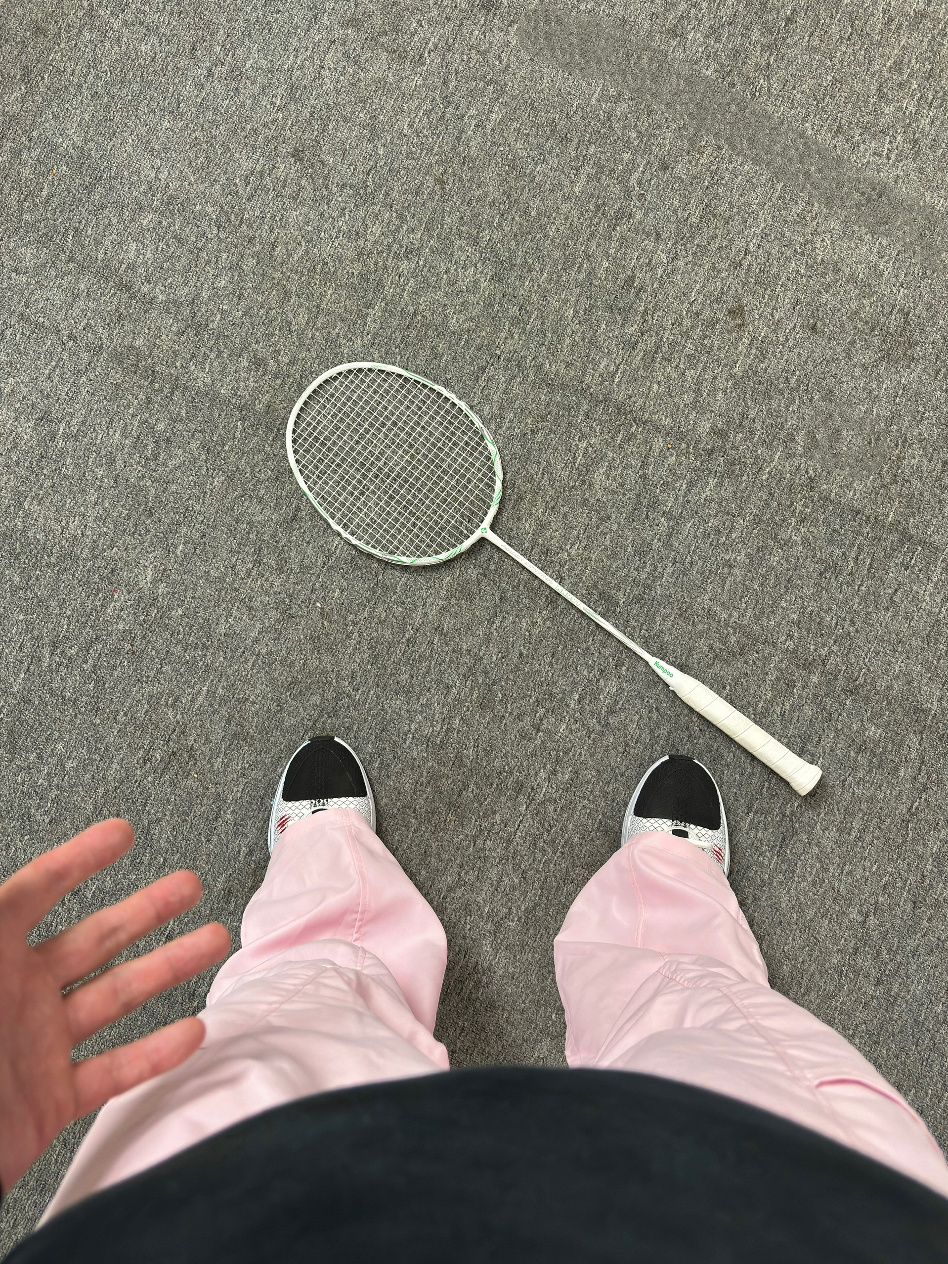 今天黑白叠穿➕粉色搭配的运动休闲风 上手一只 薰风(KUMPOO) kn991 全碳素轻拍上手感觉轻巧 杀球手感舒适 破就完事 日常入门业余轻松驾驭 我最喜欢的点就是它这个pu皮的手柄处 抓握感比一般的都要舒服 颜值与实战都挺不错的一只球拍