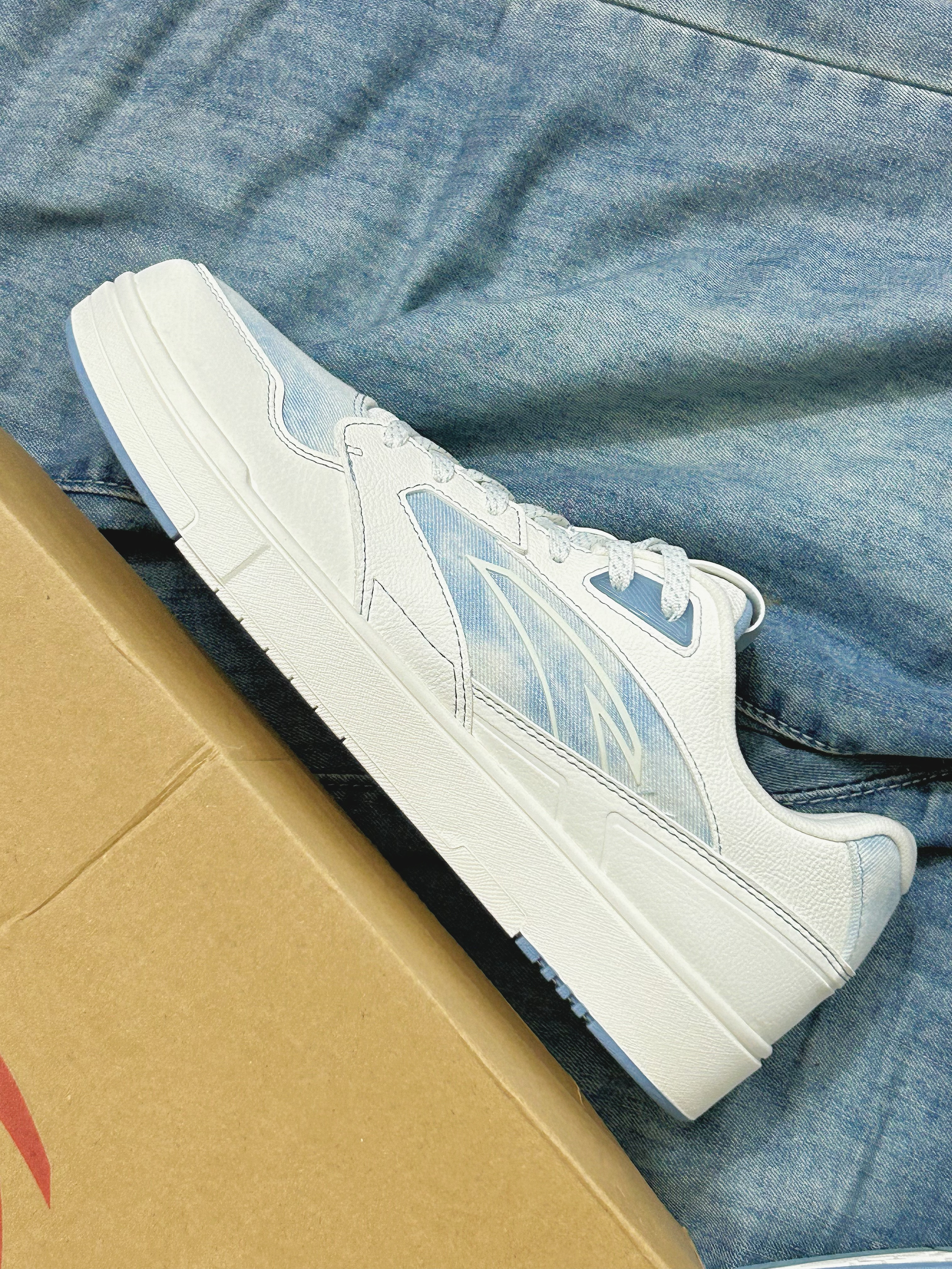 讲真等我发现这双的时候 已经有1.6W人付款了 实物和图片一样,不用担心色差 整体是白色+牛仔蓝点缀,很容易搭配 重量不算重,穿上很舒服 平时上学或出门玩都可以穿 男女码都有的,感觉可以整个情侣款! 选的正常码,没有偏码的