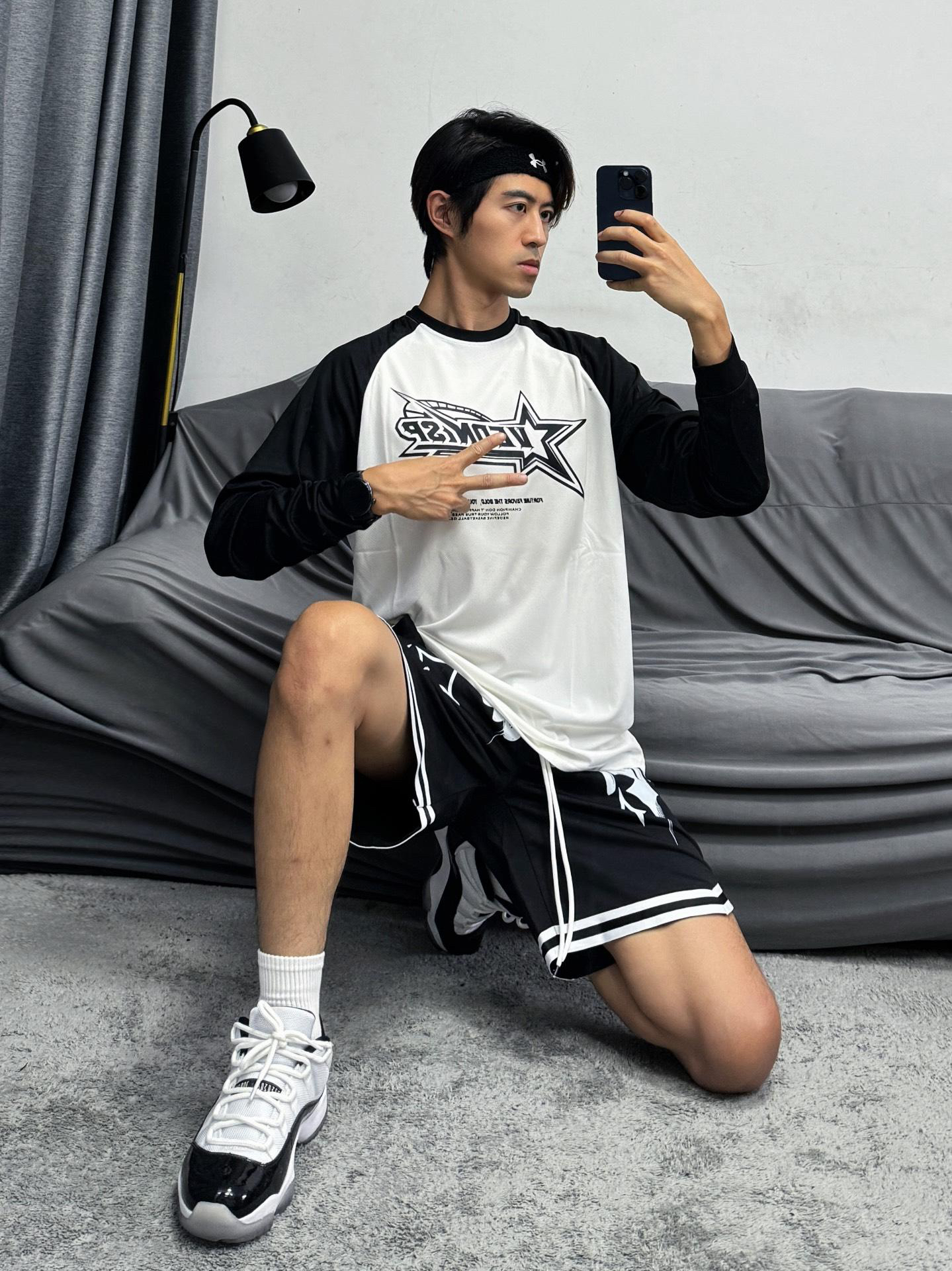 简单介绍一下今天这套穿搭吧🏂 📸黑色印花T恤➕黑色美式短裤➕极光白篮球袜 — — — — — — — — — — — — — — — ①👕 上身一件黑色T恤,美式小领口的设计,与NBA球星吉米·巴特勒印花图案非常美式感,面料硬挺舒适透气性好,打球或者出街都可以穿 - ②🩳 下搭一条美式不过膝短裤,双层的网眼速干吸汗性强,平时打球训练必备短裤,偏短的四分裤设计视觉上拉长小腿比例 - ③🧦 上脚一双...