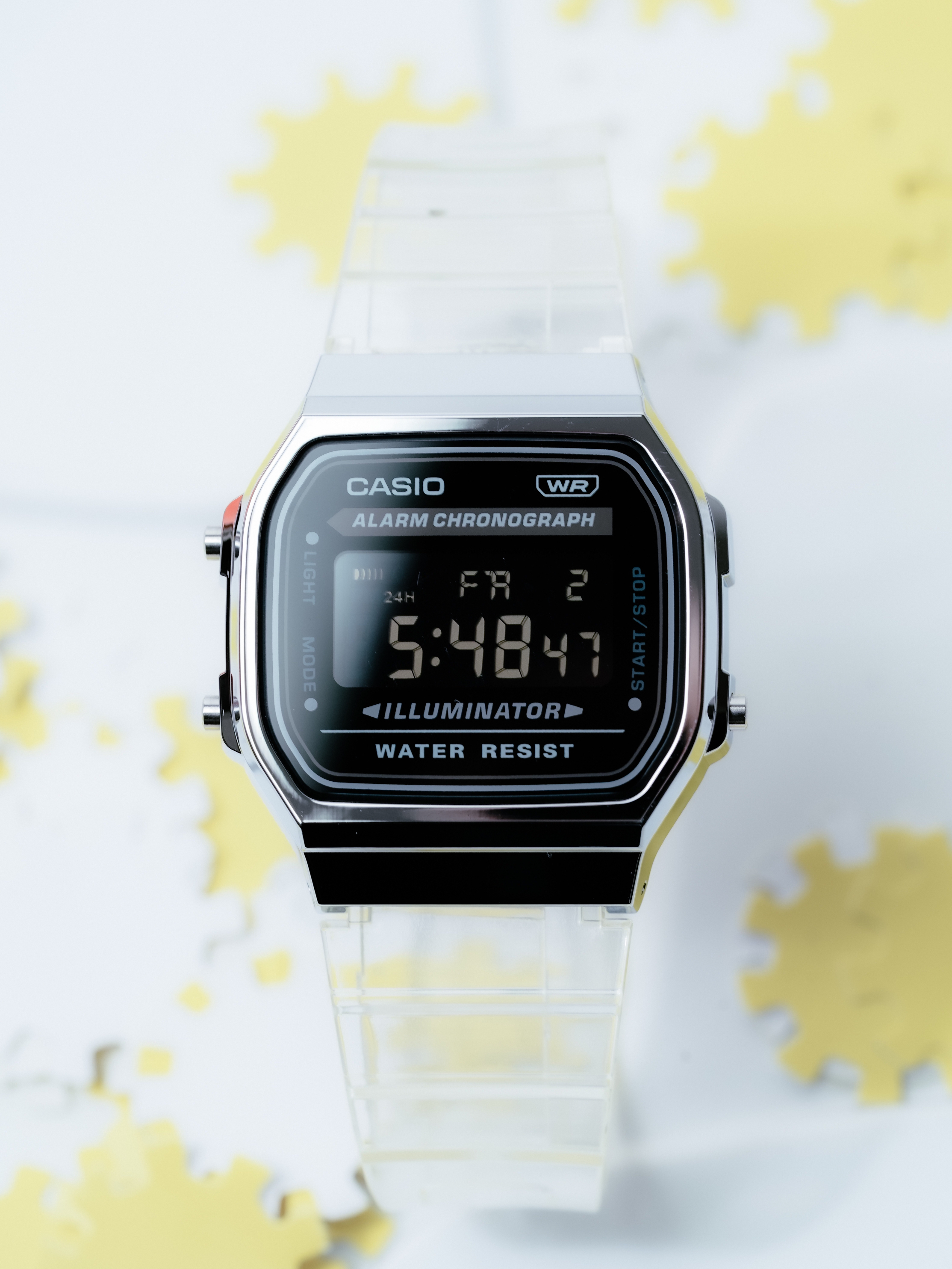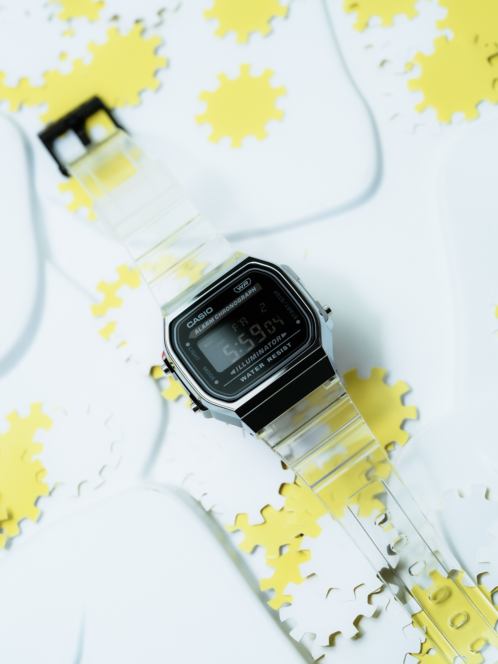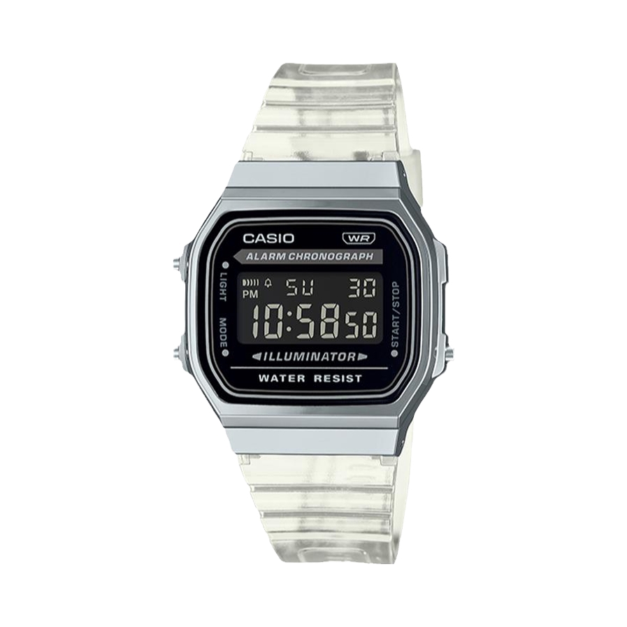 5g网速冲浪,没想到看到这款透明表带的A168。还是黑色反显,一眼就相中了。冰韧款a168嚒❓少了塑料感,多了一些不一样的高级感👀