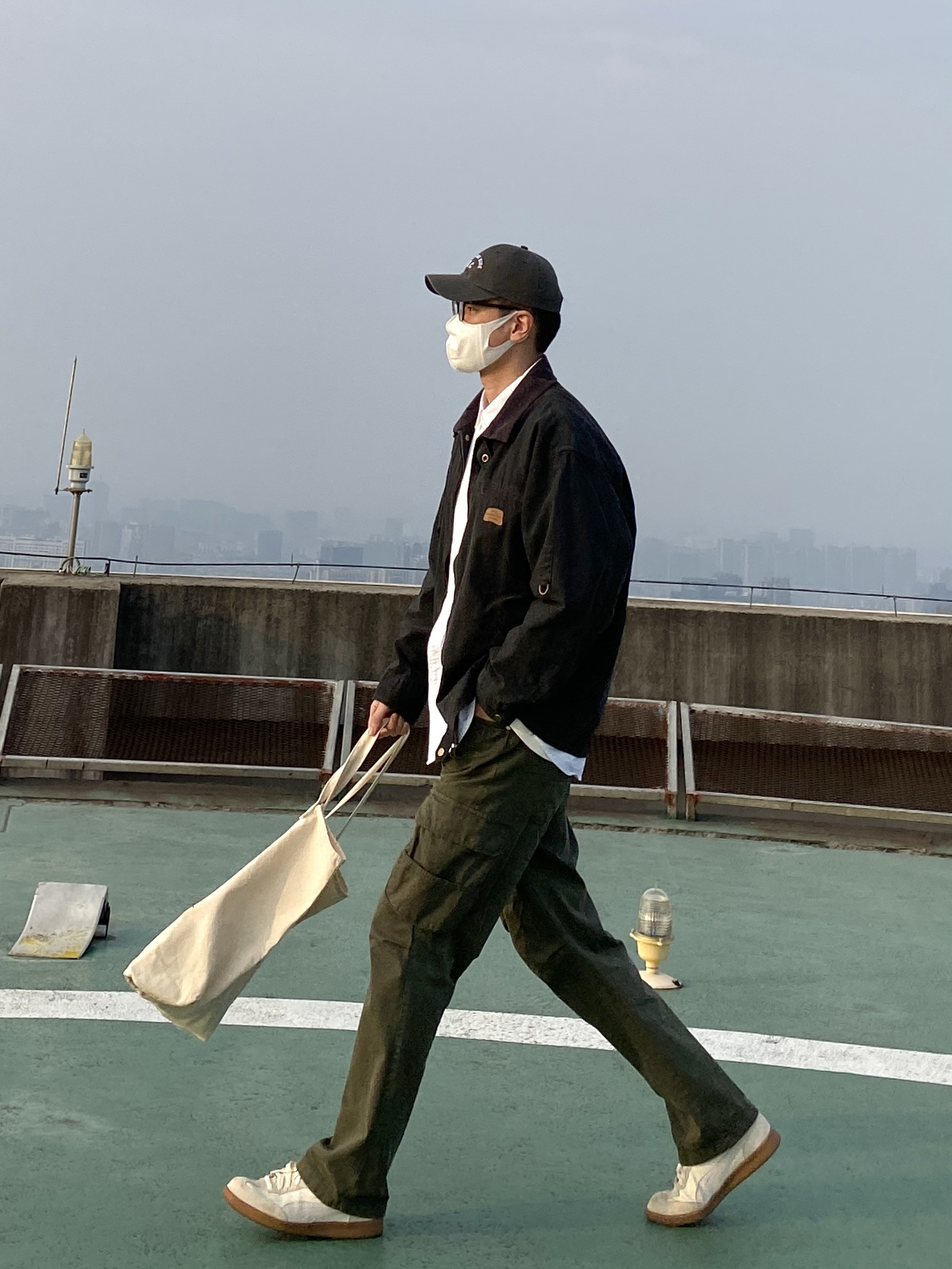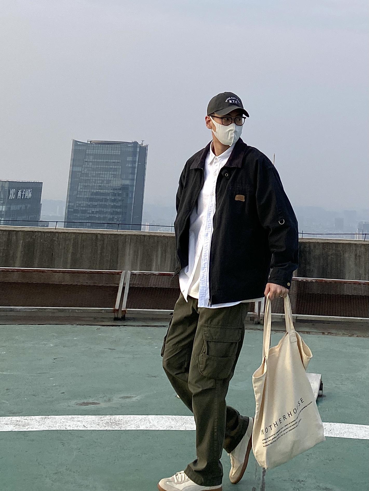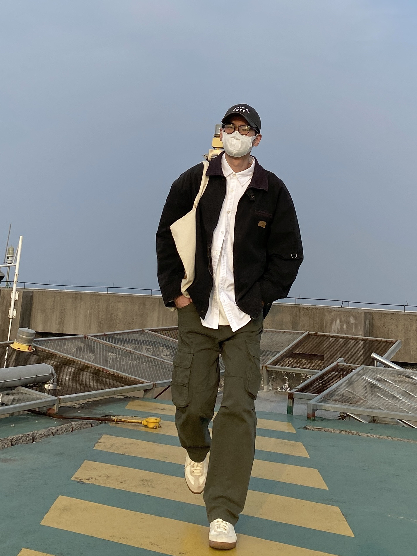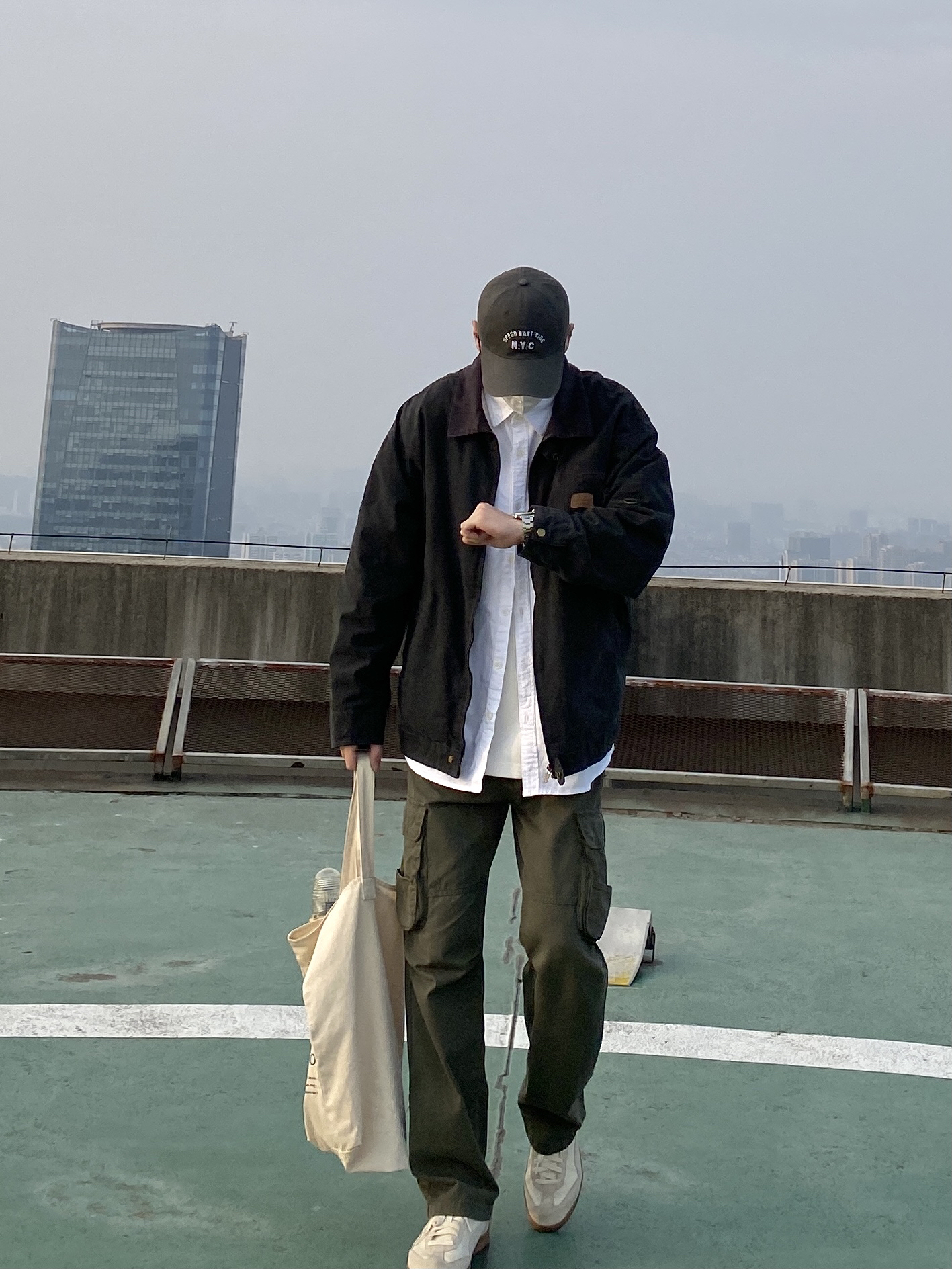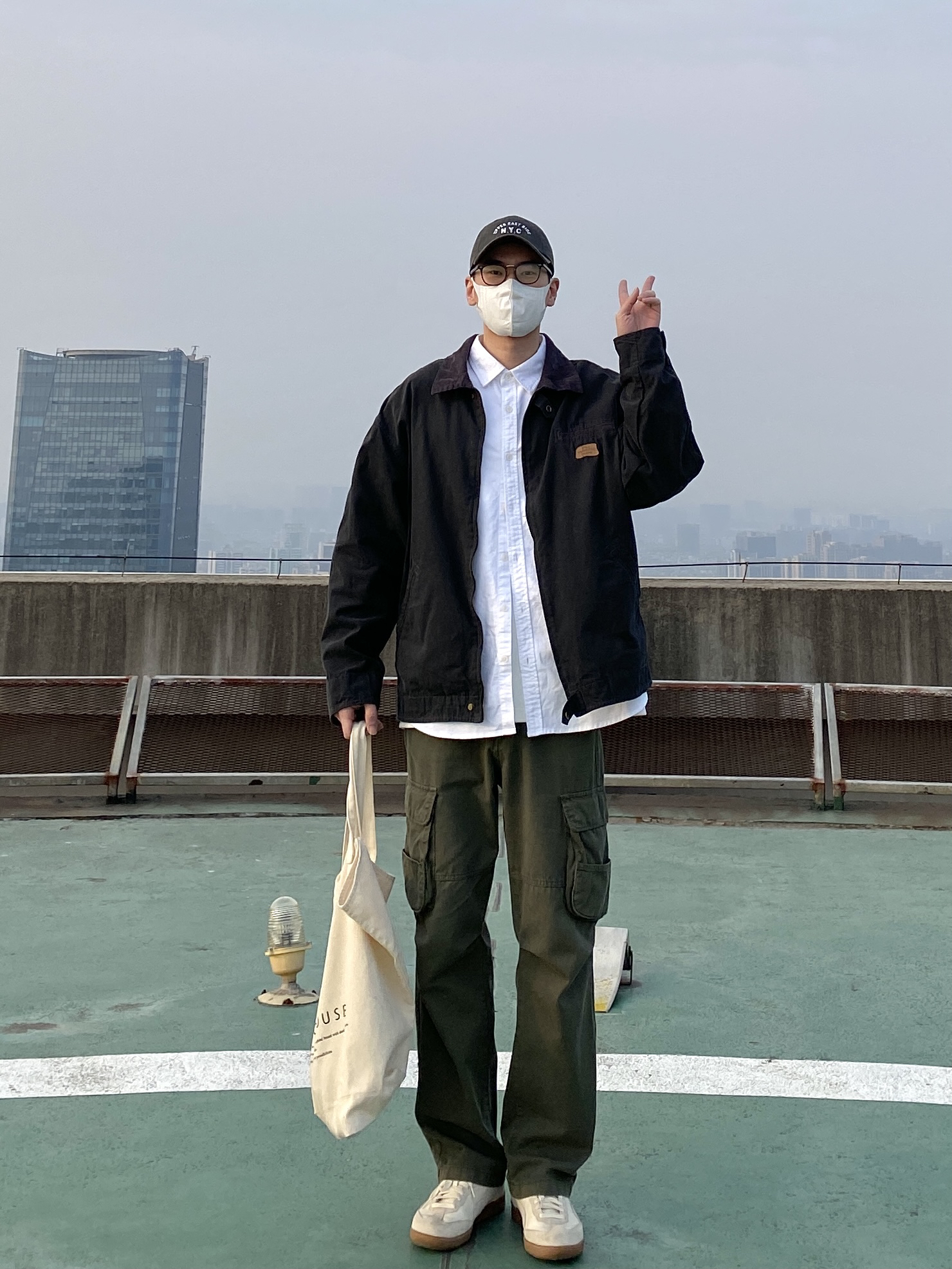今天这套先用清爽干净的白衬衫做内搭 ⬇️ 裤子选择军绿色直筒做旧多口袋工装裤 ⬇️ 鞋子上脚简约百搭的米白色皮质德训鞋 ⬇️ 接着套上深灰色宽松阔版复古翻领工装夹克 ⬇️ 最后背一个便捷的帆布托特包 - 今日搭配 衣服裤子都来自:NICE LILI 鞋子:puma liga
