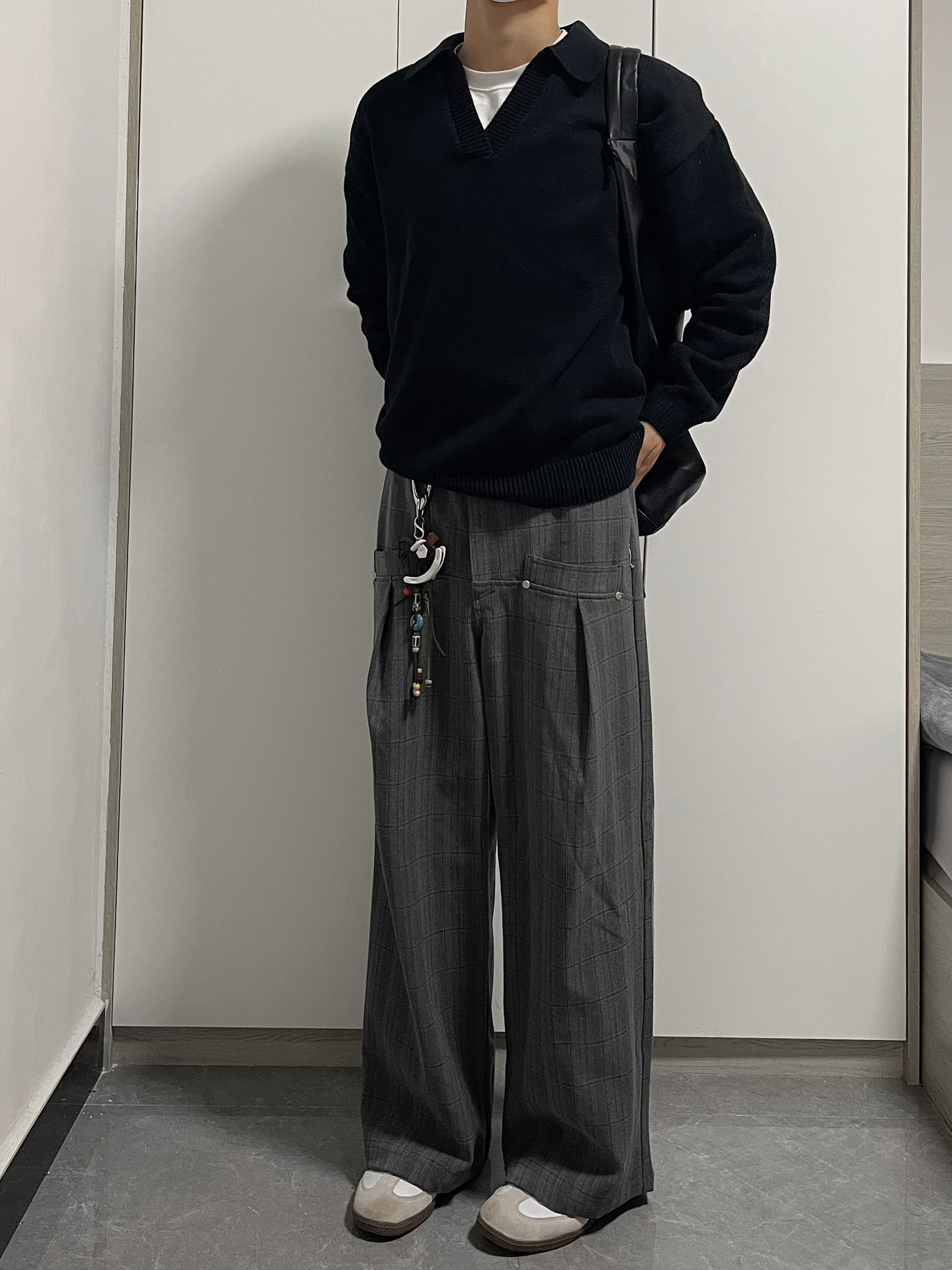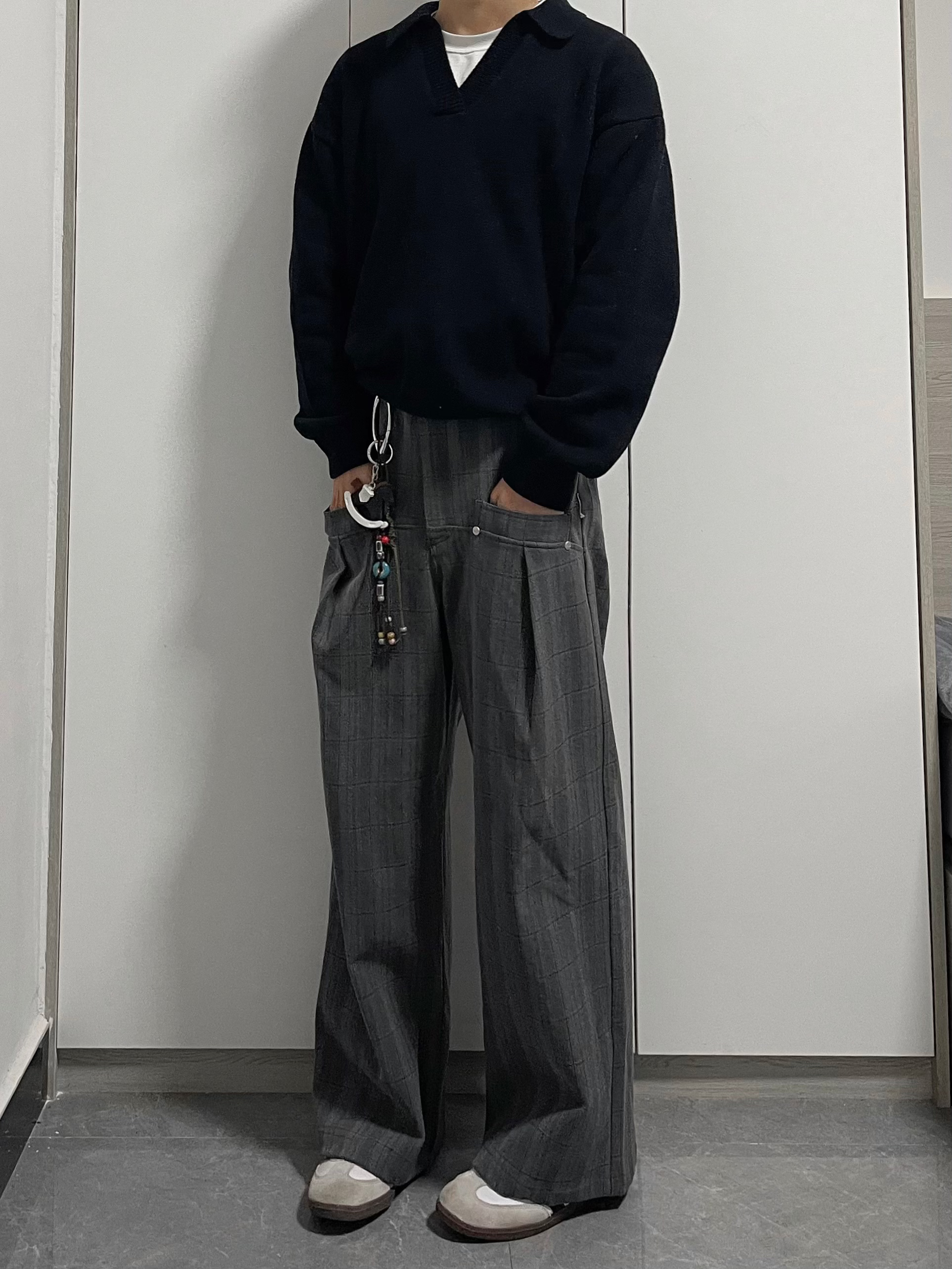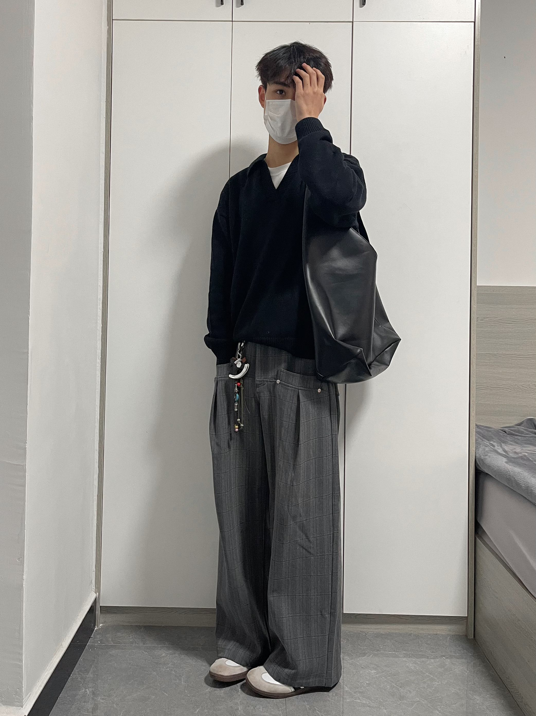 今天上身遇见v领POLO衫,干净利落的版型和软糯的质感在早春很适合搭配,下身搭配一条西裤,鞋子选择的是一双smaba。