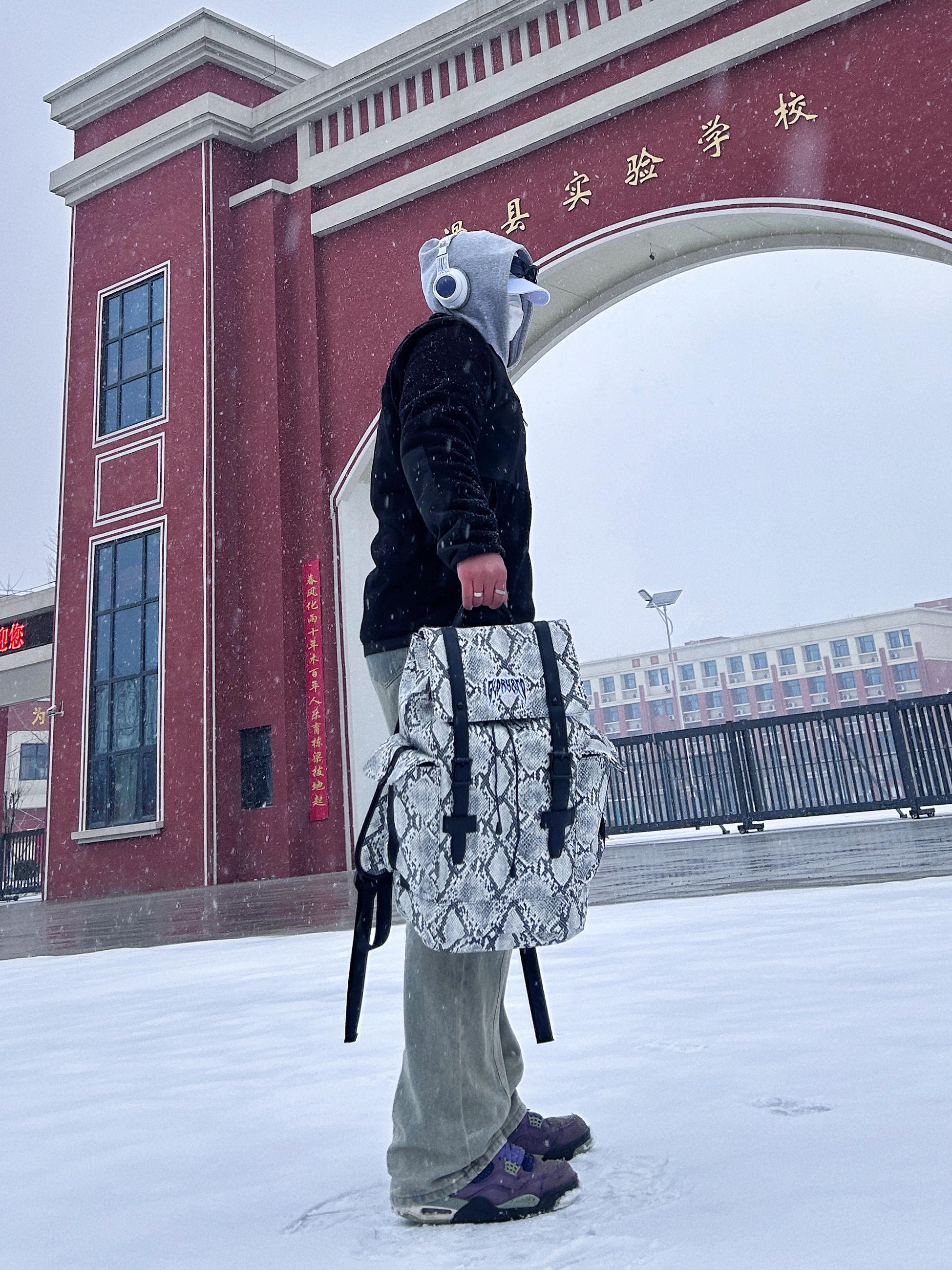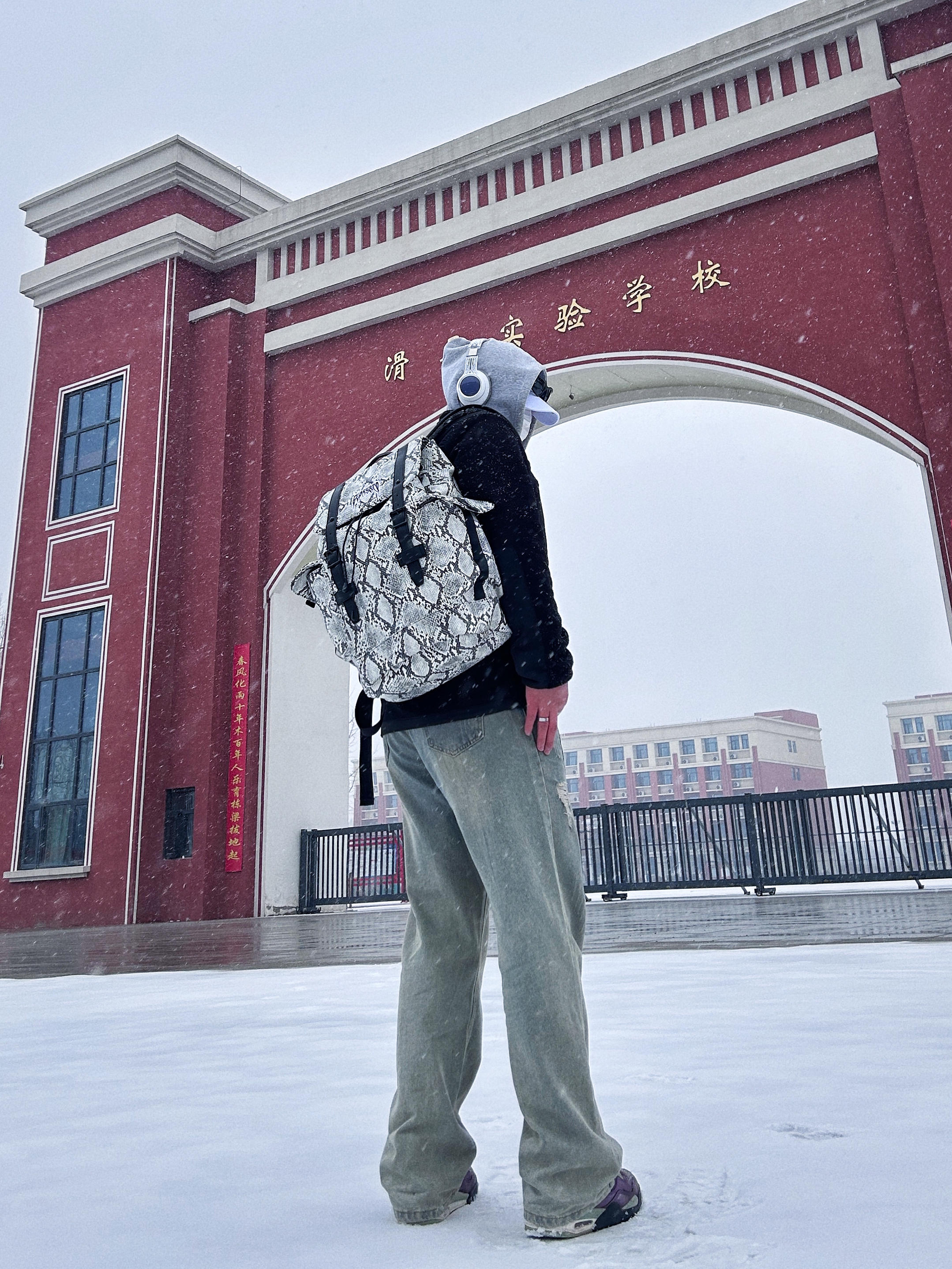 ☑️ 俺来安排👋 🔗 HINY 蛇纹双肩包 美式的街头氛围感也可以这样搭配 连帽颗粒绒卫衣+破洞牛仔👖 蛇纹的双肩背包氛围感百搭 双肩包整体容量很大 外面是皮革材质,防水💦耐磨易清理 出门旅游图书馆📕上自习都可以背 体育生氛围感颜值百搭 #高颜值双肩背包 #推荐你的宝藏双肩包 #我的第一只小龙包 #龙年开运指南 #我的龙年仪式感