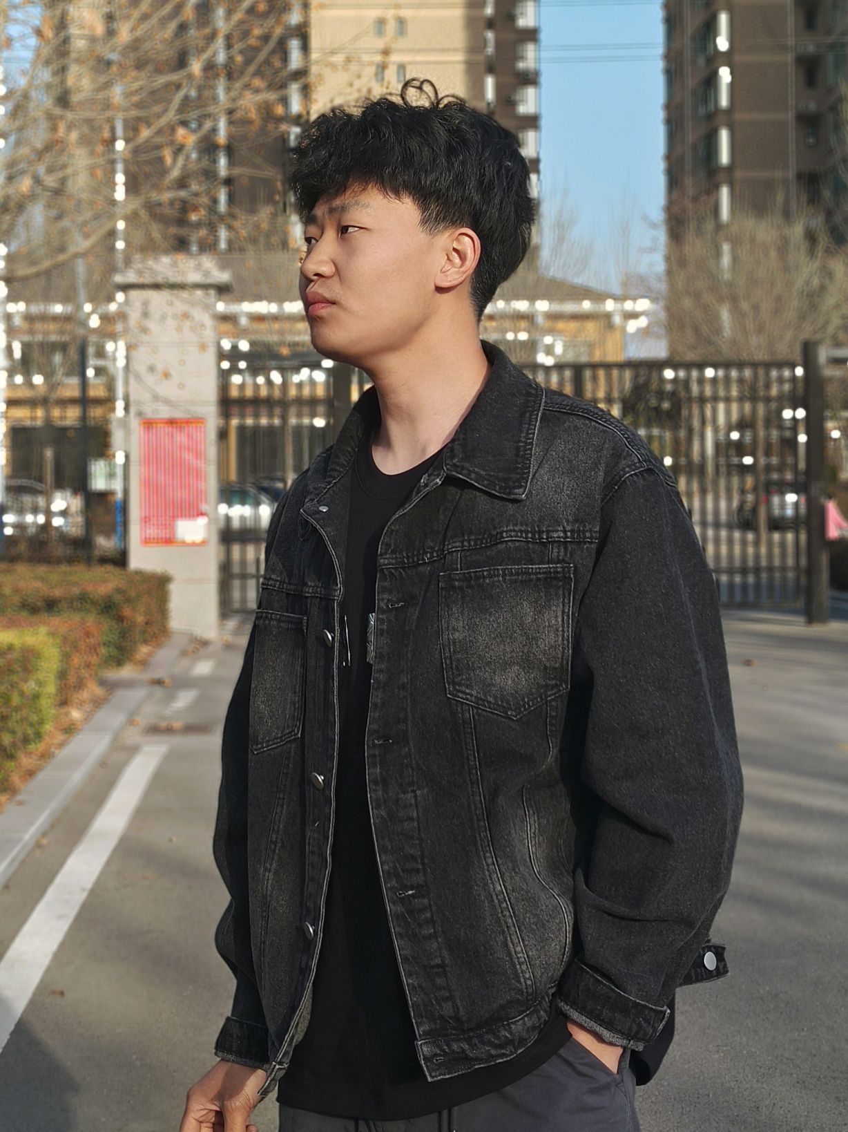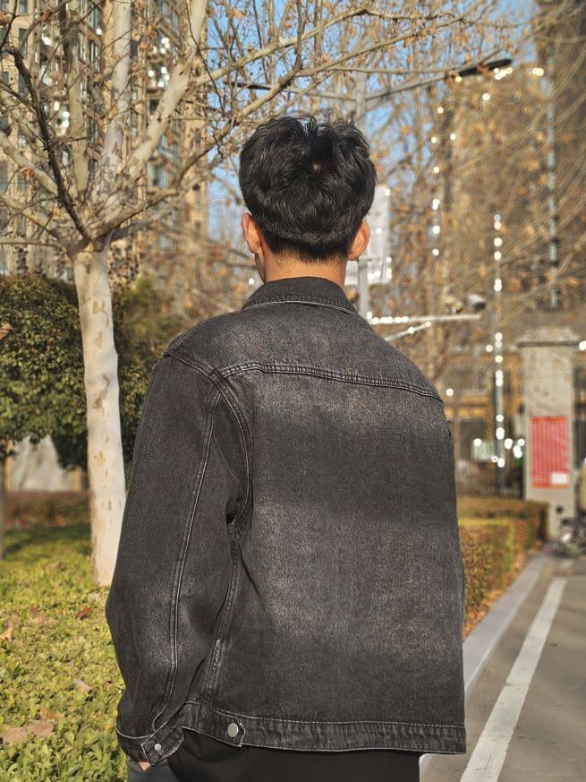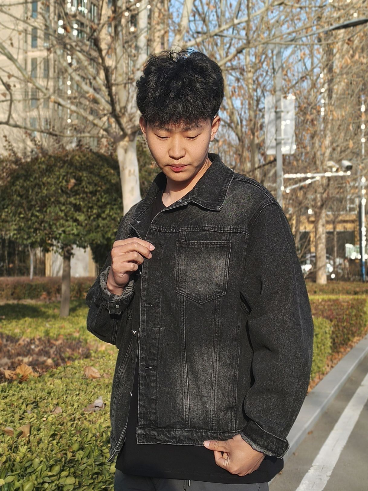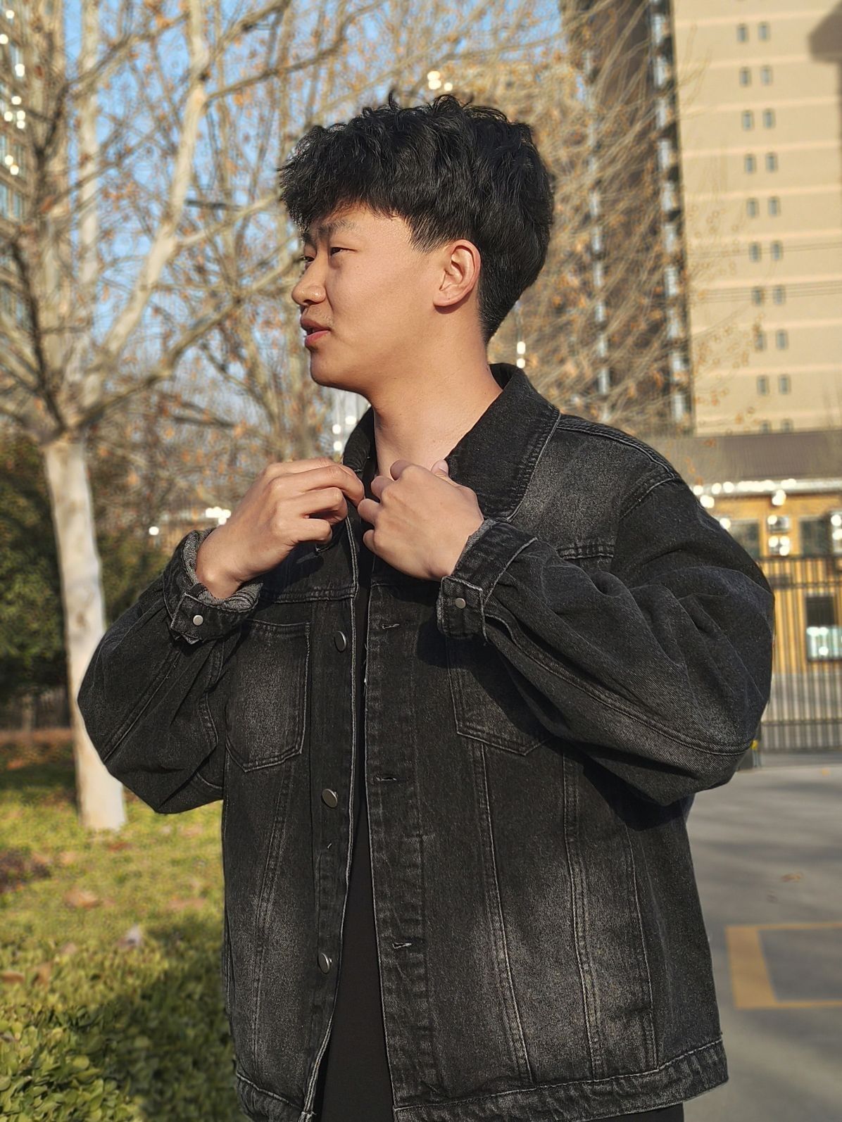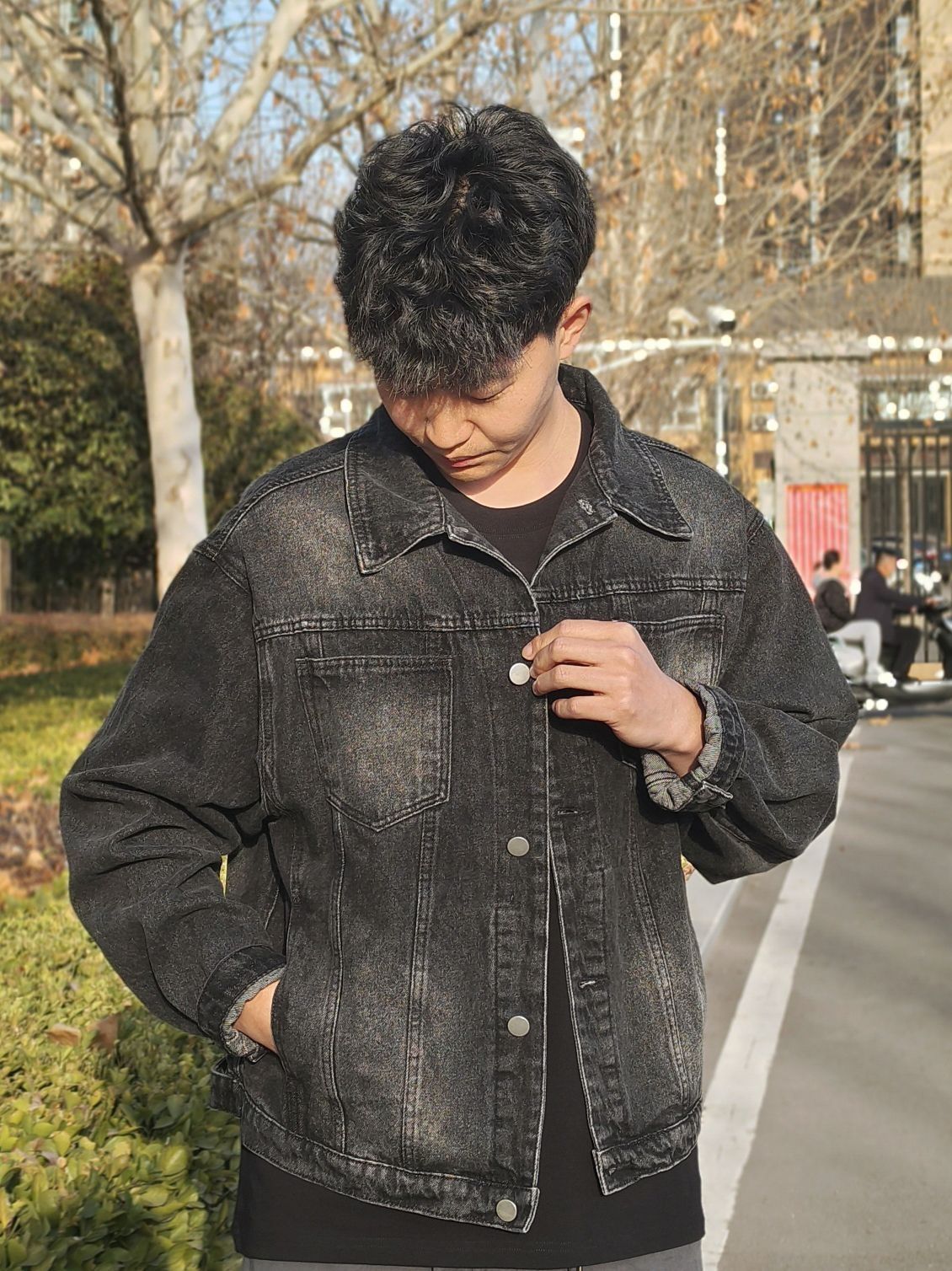 今天和大家分享的是一款复古牛仔外套, ………………🈵🈵……………… 本人身高180cm,体重68Kg 🧥:#Xavier3 鞋码:L码(按照尺码表拍就行) 配色:牛仔黑色 ——————👍🏻👍🏻———— 牛仔外套给人一种干练利索的感觉ノ☀ノ☀ノ☀, 春夏天都可以穿,男女同款的, 它家质量嘎嘎板正,多口袋设计,两个内兜+两个外兜+胸口处还有一个👍🏻👍🏻👍🏻, 上身效果还是不错。