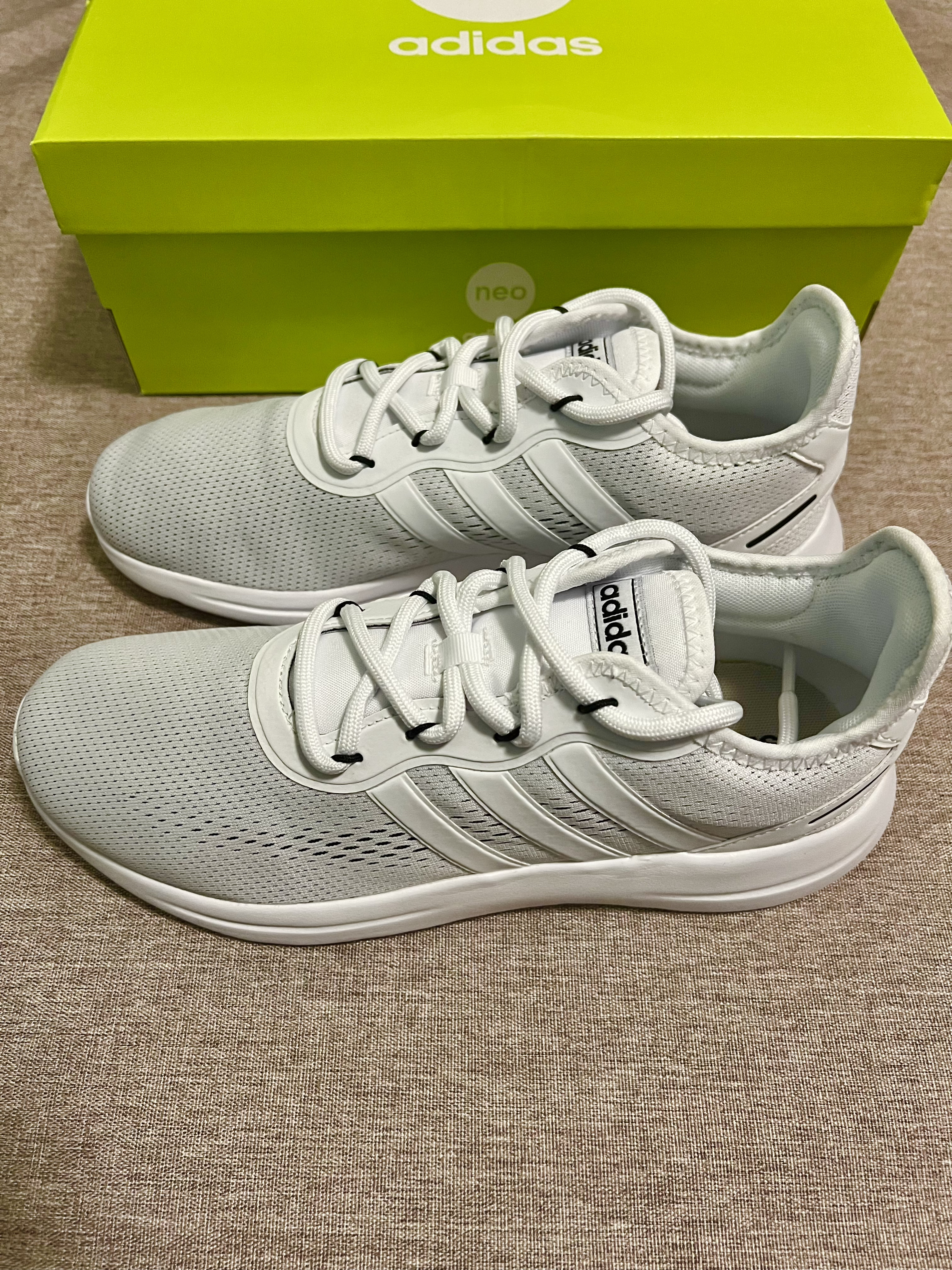 ✨Hello~大家好,这里是饼子。今天给大家带来一双adidas neo的平价小白鞋。 🎨这双鞋👟的整体配色就是白色,没有多余的颜色,连大底都是白色的,整双鞋鞋身鞋面采用的是织物的网面,透气性良好,适合夏天🌞穿着,不会焐脚,不过防水的效果可能就没那么好啦。 🦶这双鞋整体上脚的感受还是很好的,舒适度非常高,鞋底有回弹,日常穿着不会磨脚,适合长时间的穿着使用呀!200💵左右的价...