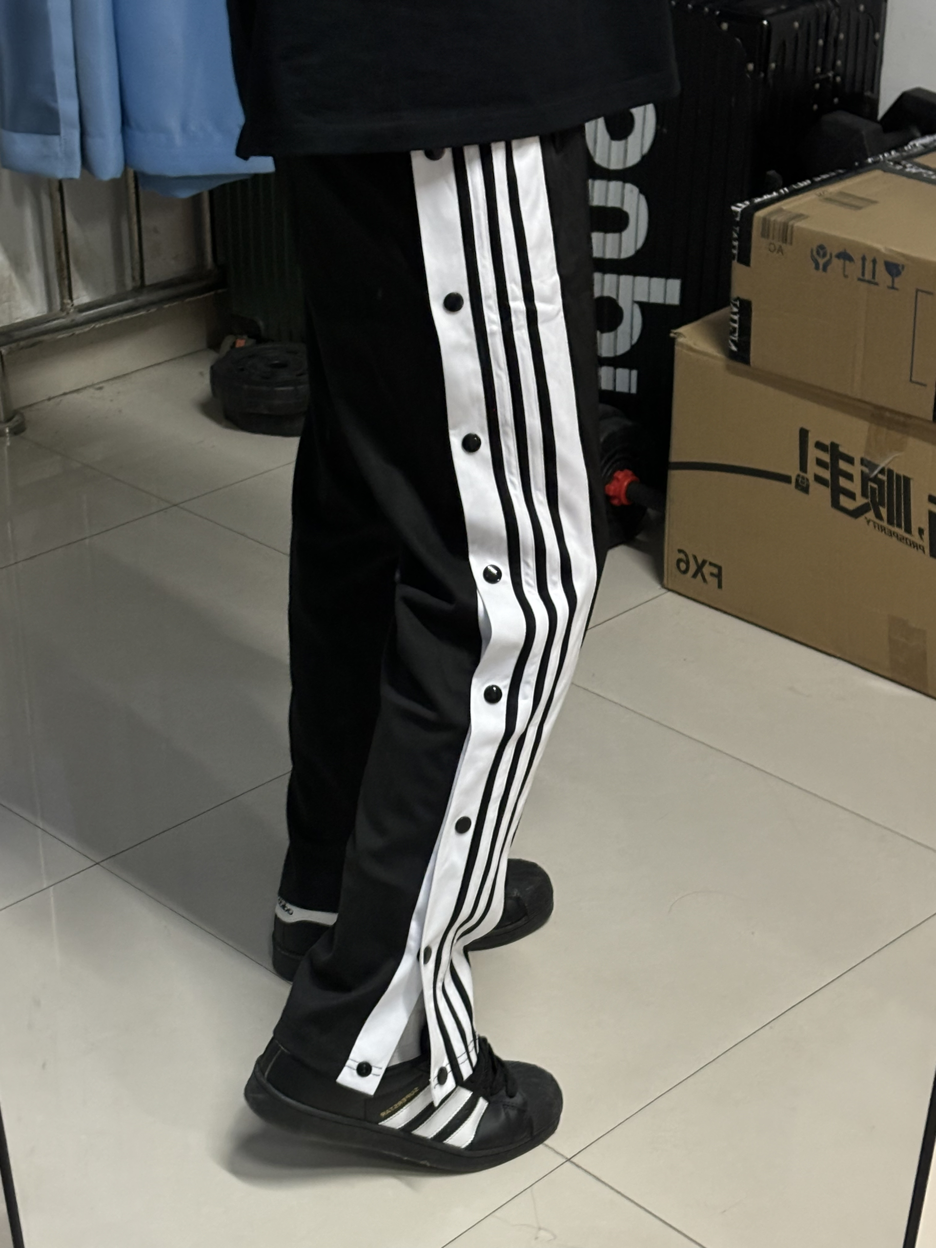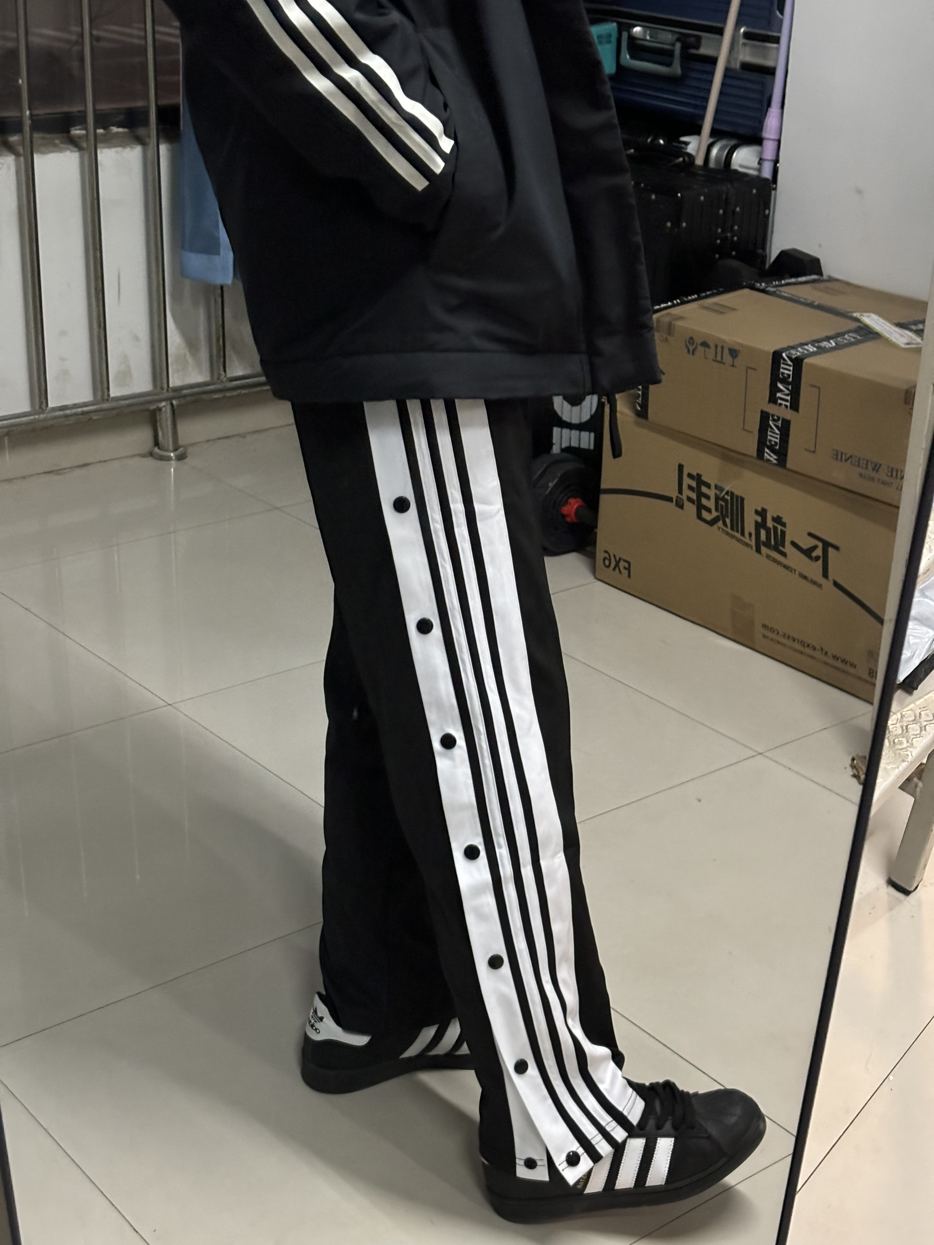 好喜欢穿三条杠 经典百搭不出错 三条杠真的很显腿长 随便搭上贝壳头就好帅!!