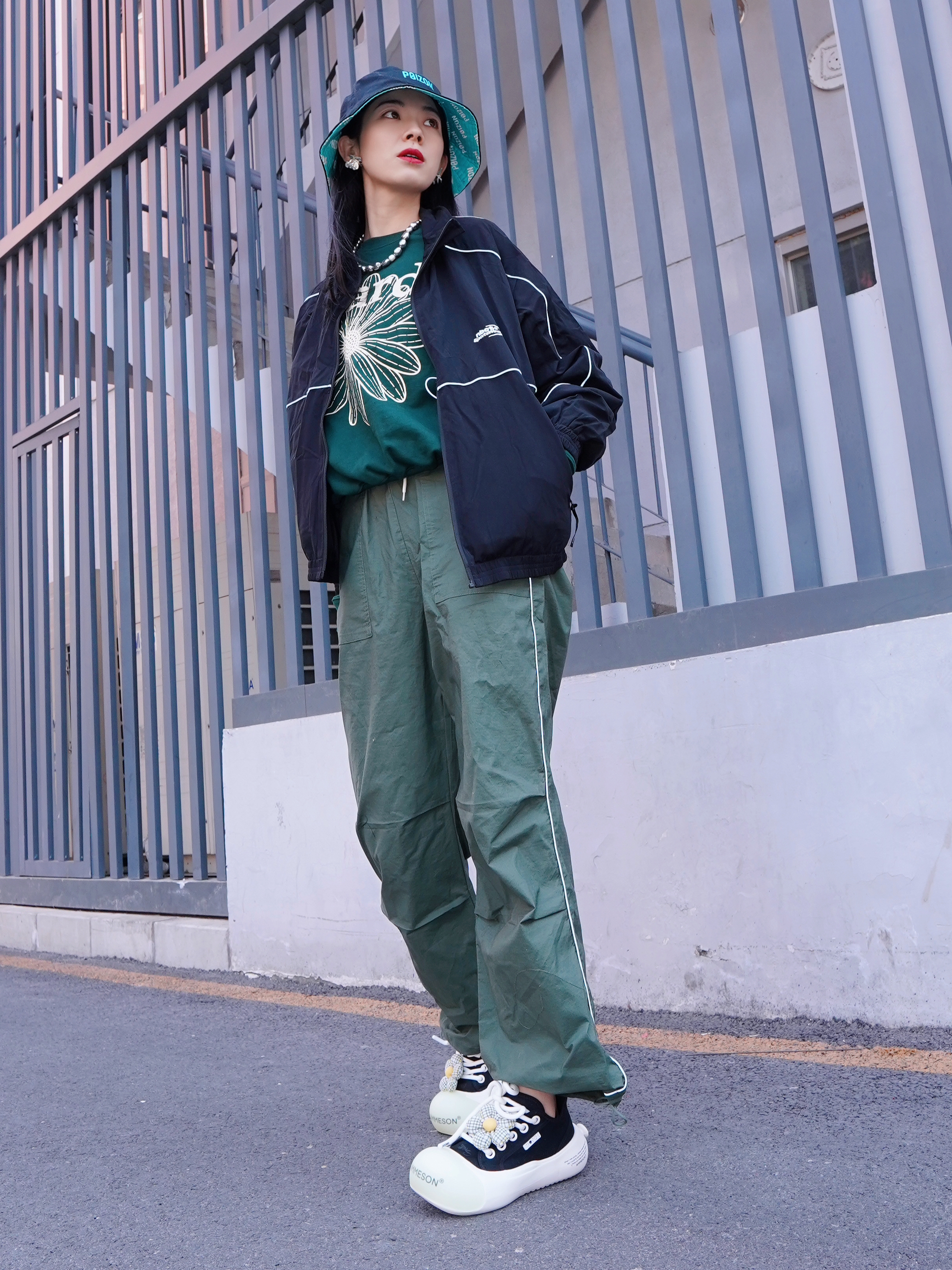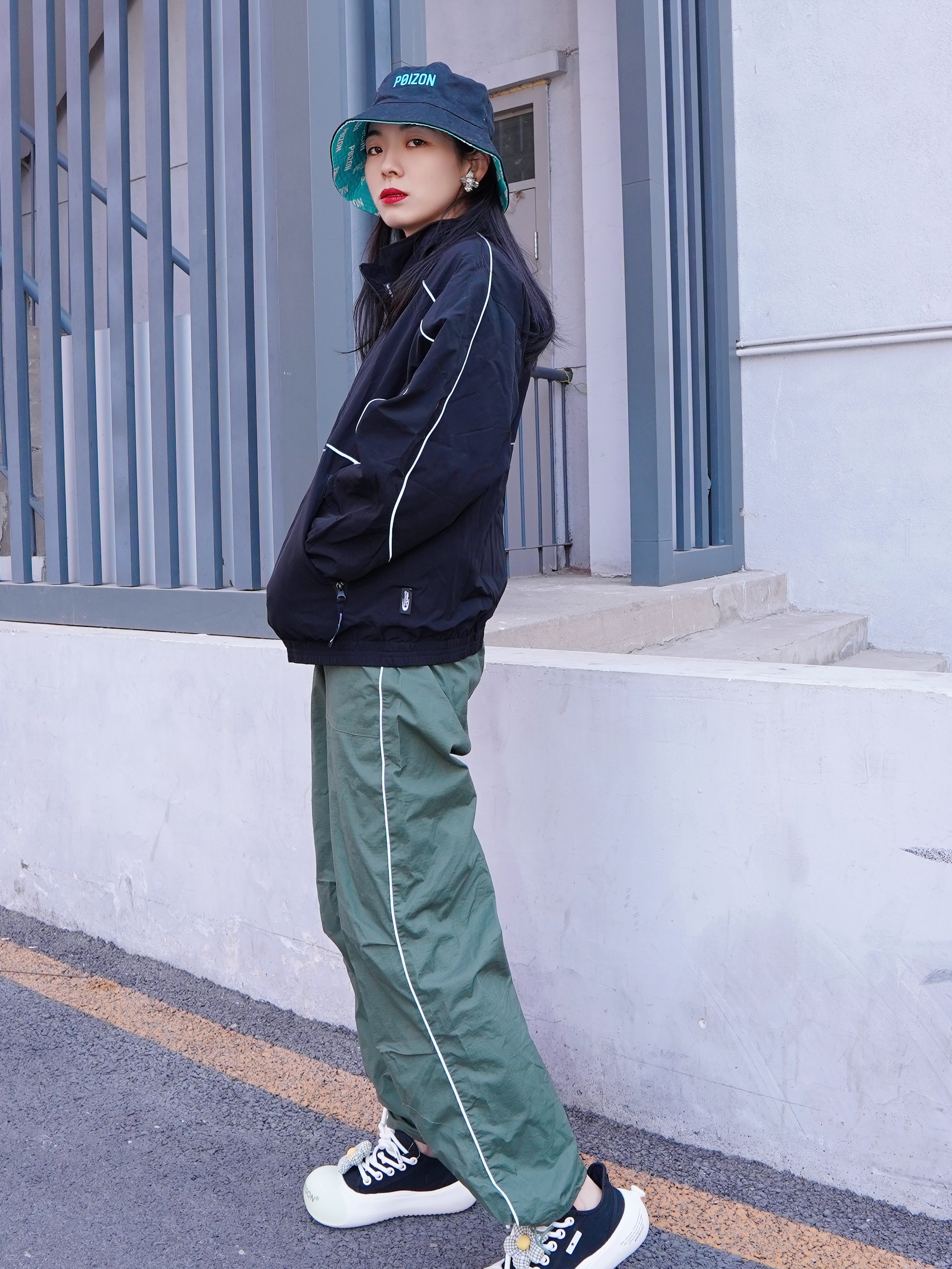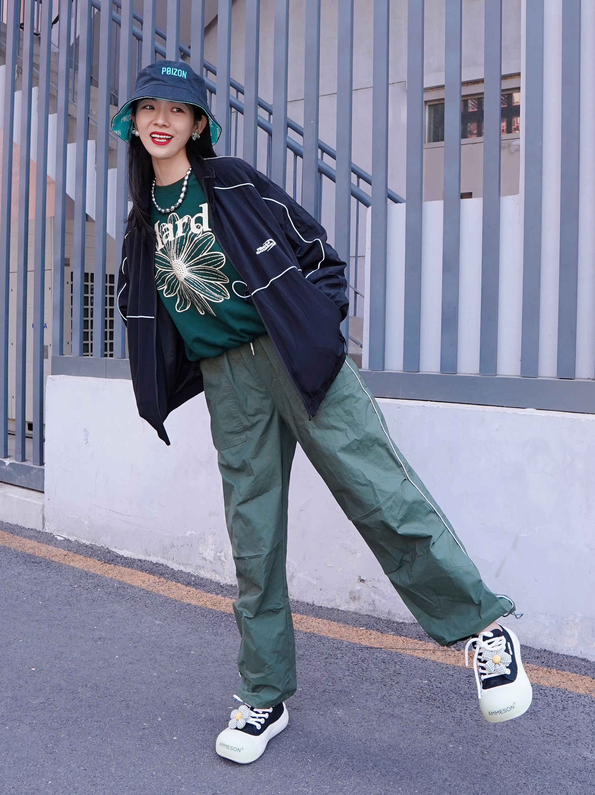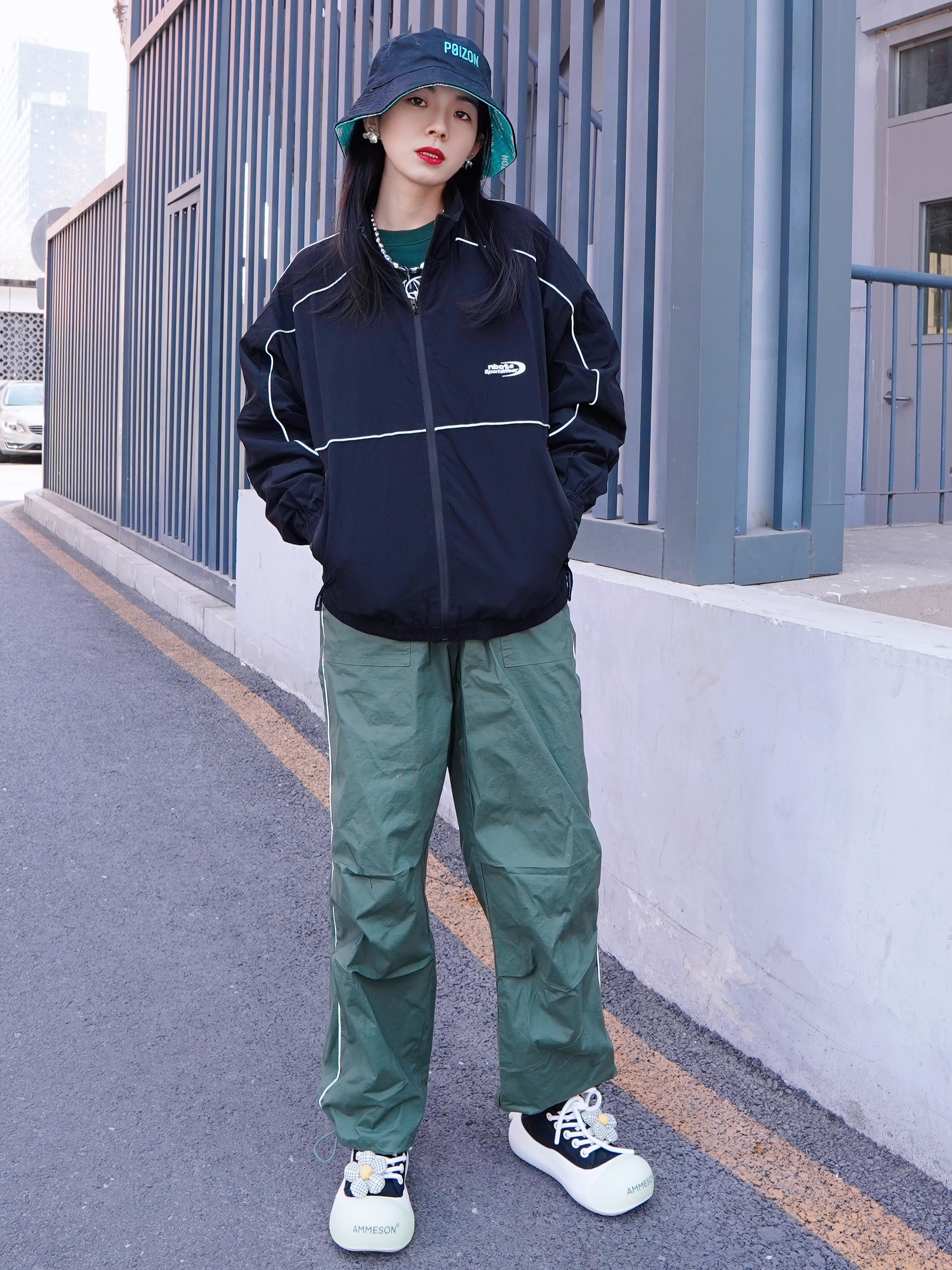 换季外套还得是黑夹克啊 今天一套工装look有被酷到 上衣的夹克宽松版型,里面穿了卫衣也显得不臃肿哦 反光条修饰,即使 all black 也不会沉闷 搭配今天的帽子~松弛感一下就出来了 兄弟们,听我的,换季这套 男女同款真的可以安排起来哦