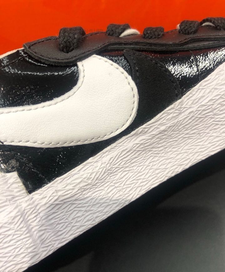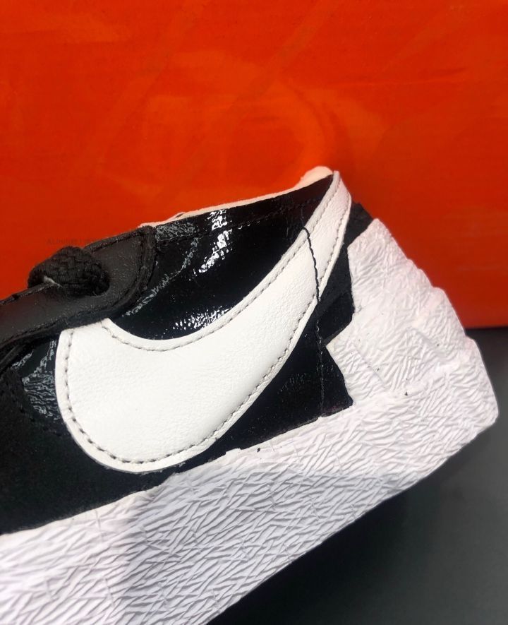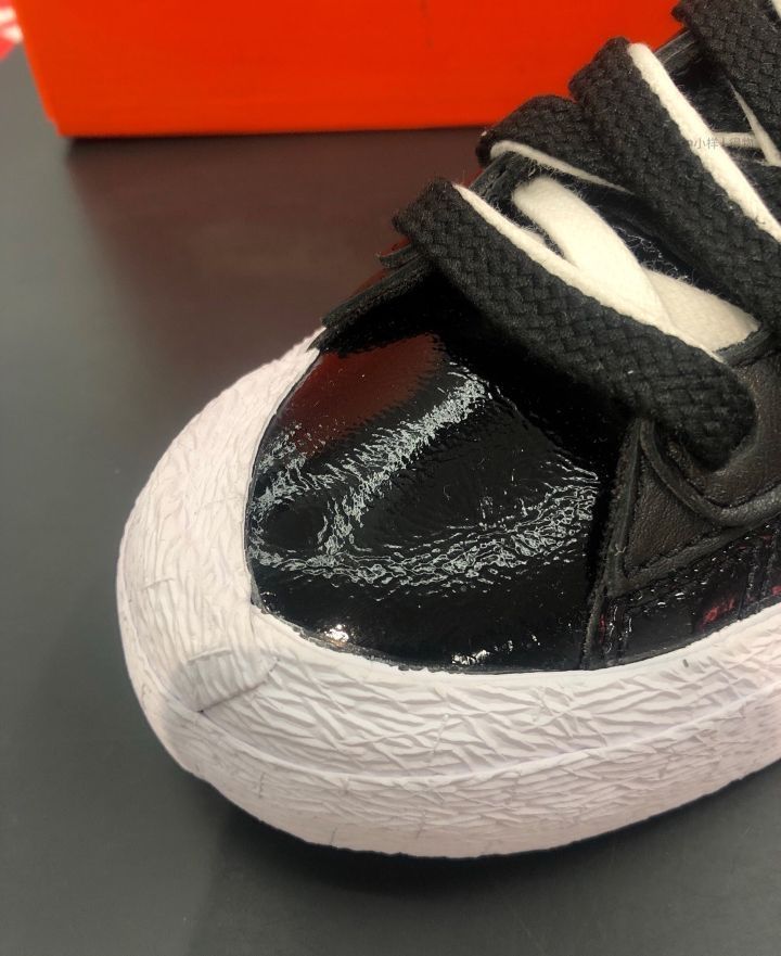 Sacai×Nike Blazer Low黑白漆皮板鞋联名还平价的Blazer板鞋,经典黑白百搭配色,再添加漆皮设计,高级感满满。没想到鞋子整体都是叠加以及堆叠式设计,撞色黑白鞋带、双层Swo0sh以及多层鞋舌和中底,多方位展现出层次感和质感效果。 美中不足就是脚感偏硬一些,透气性一般。 Y个人感觉鞋子适合春季穿搭,夏天穿会闷一些,鞋型也偏窄显瘦,选择了大半码。