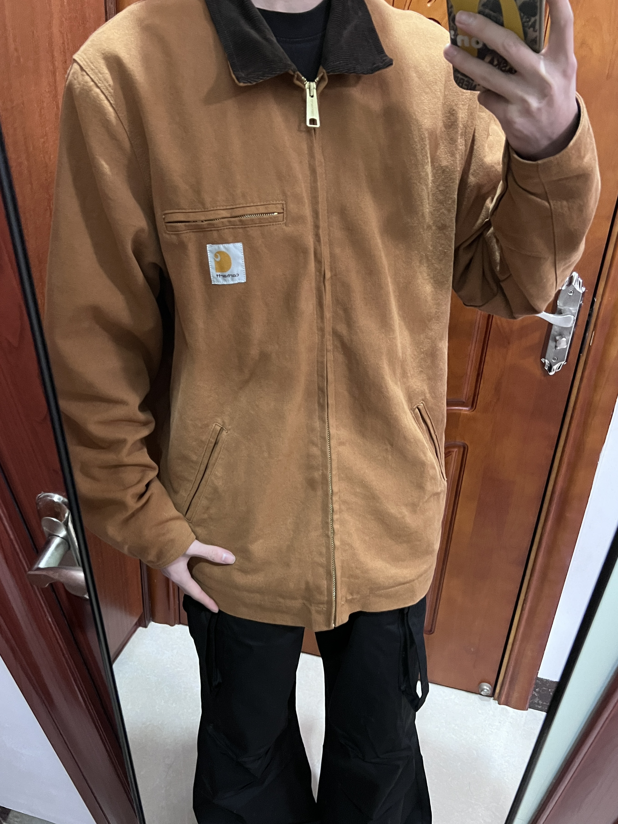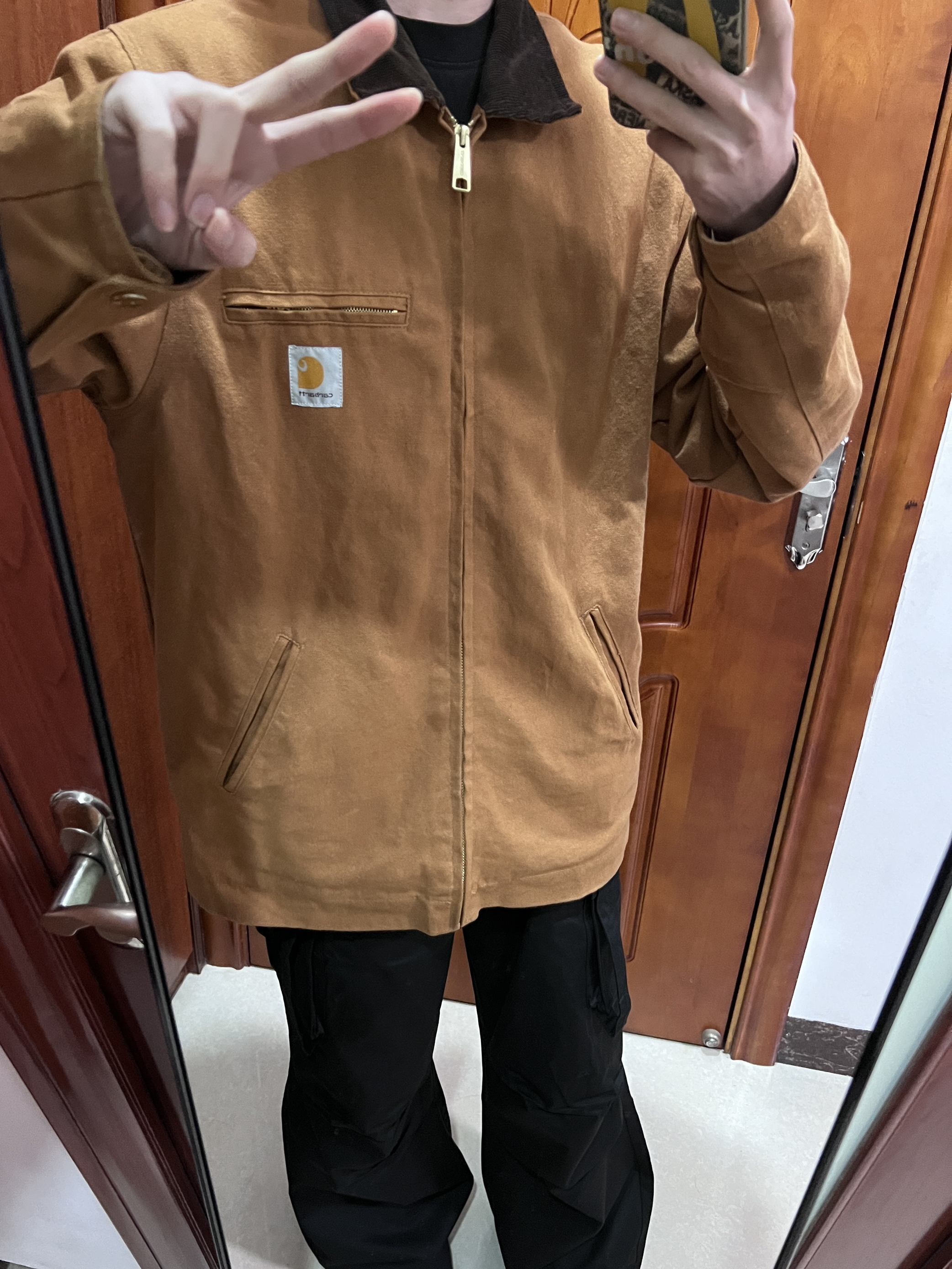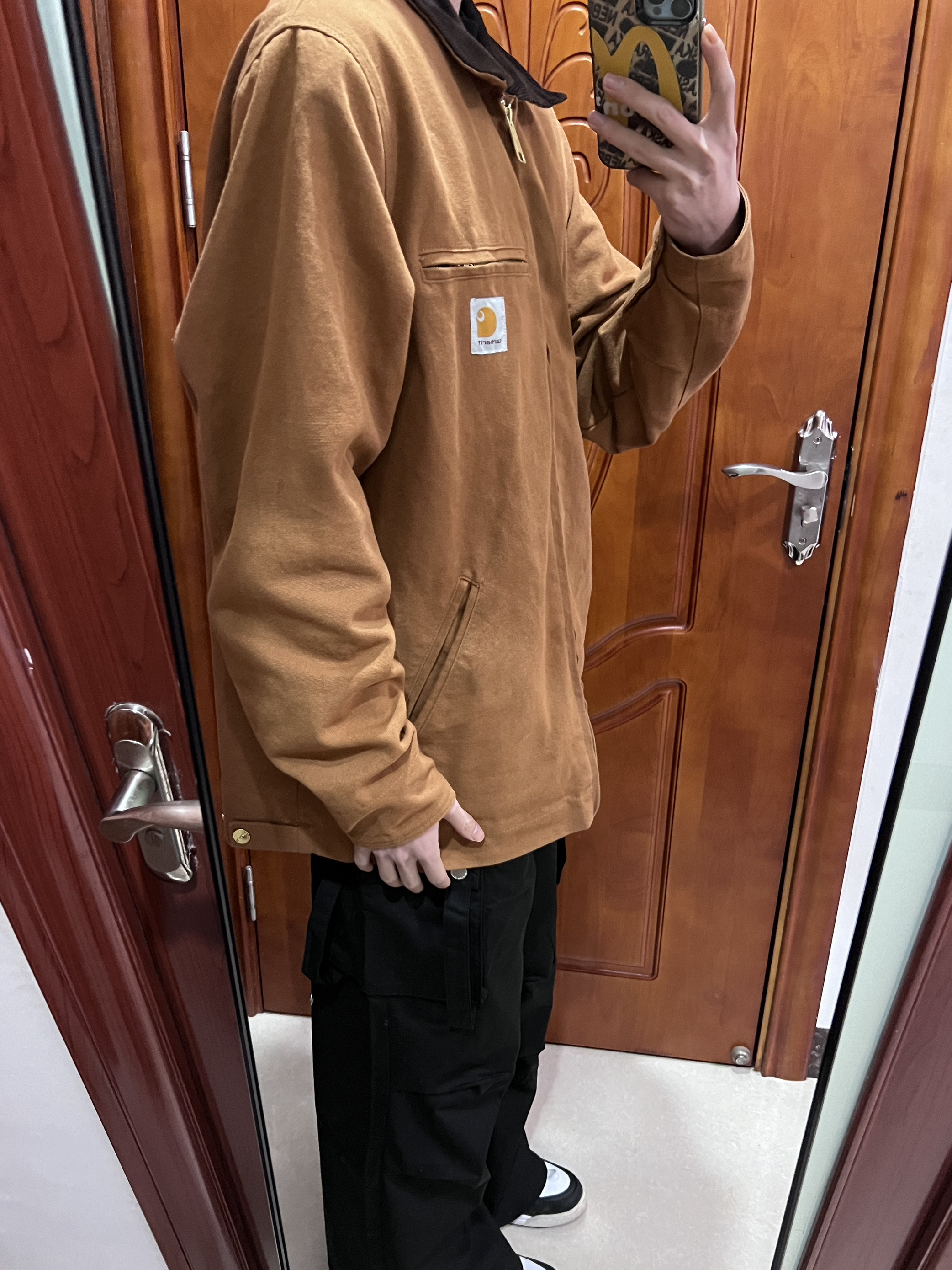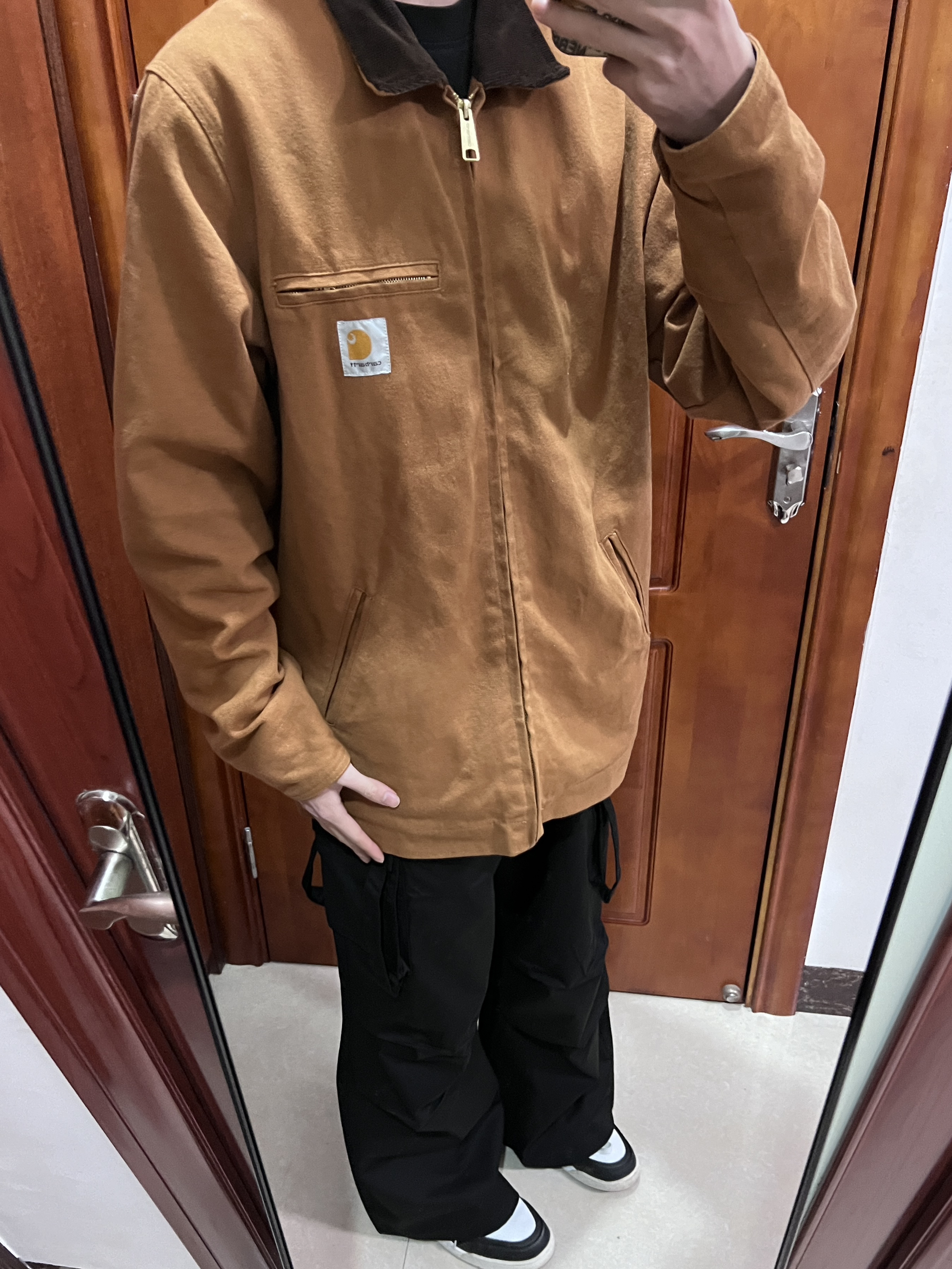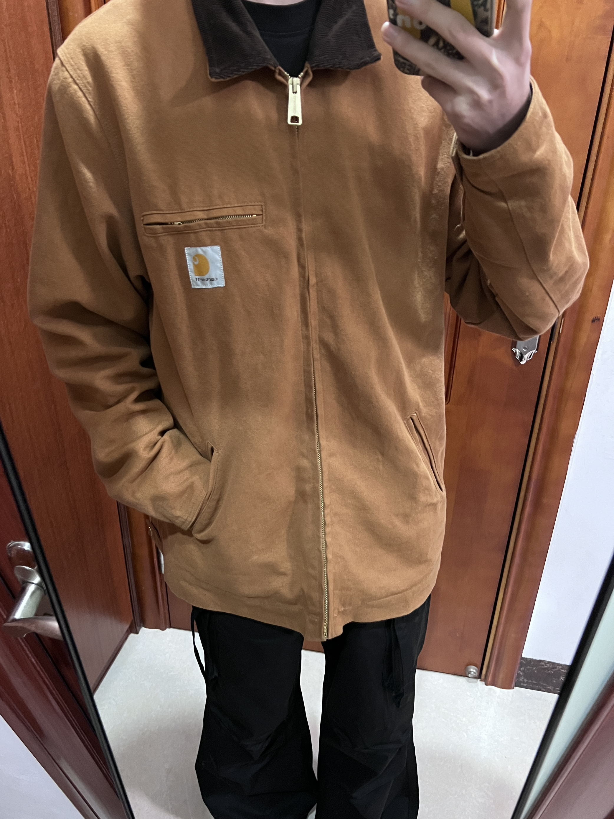 今天上身穿的是来自Carhartt 家的日系夹克日系工装风 喜欢日潮风格的伙伴会很爱底特律帆布材质 版型宽松 本人176高120重穿的是l码