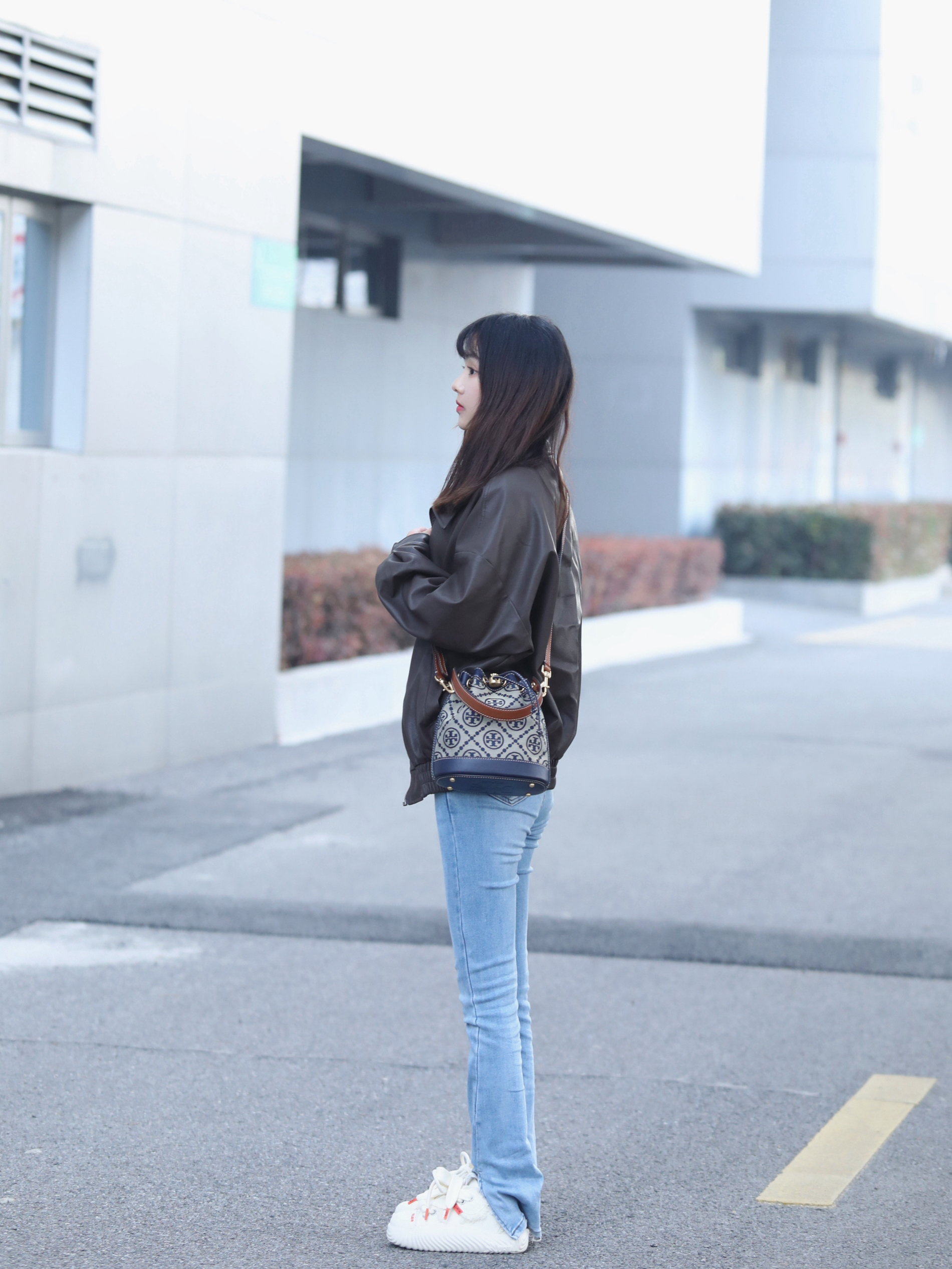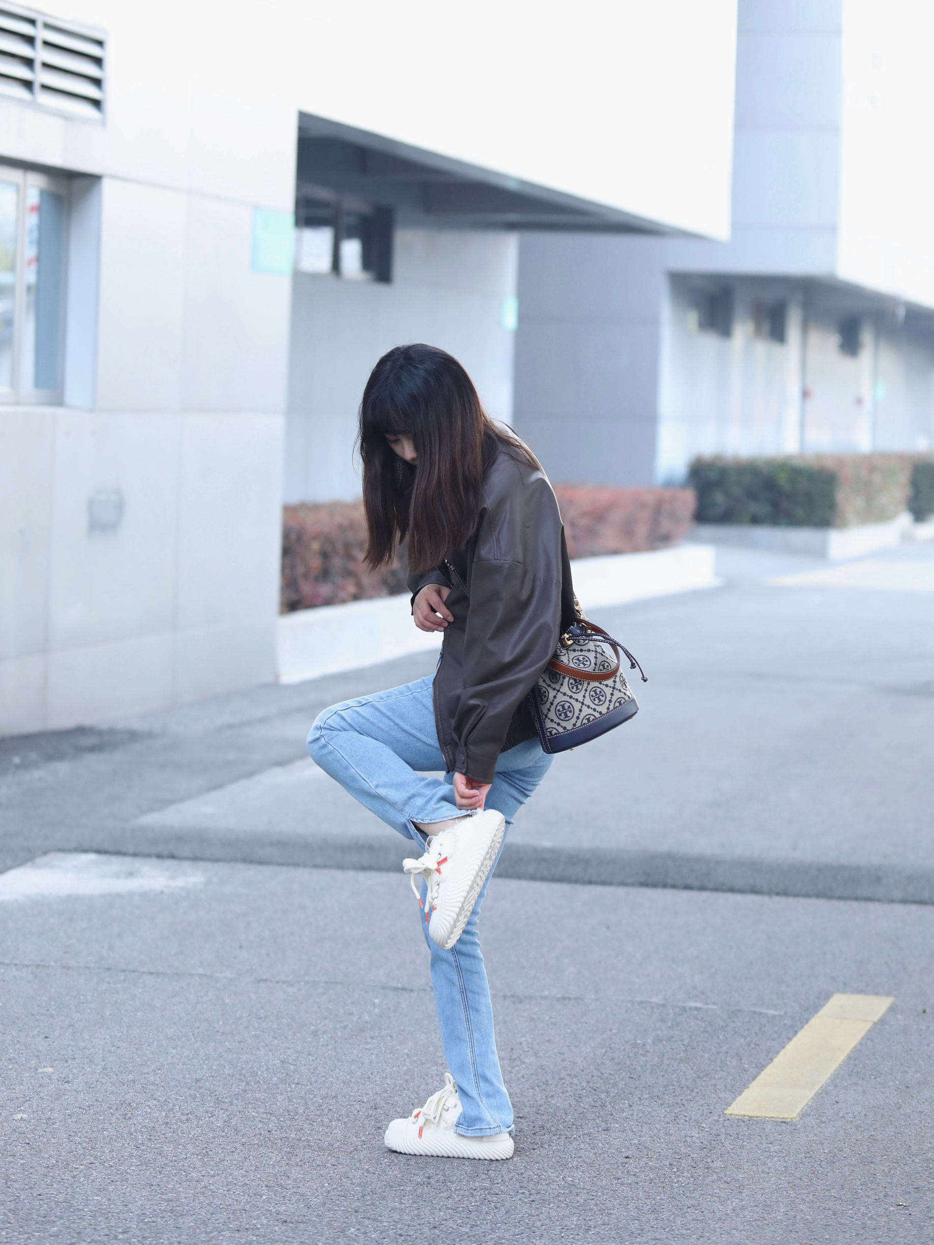 天气渐渐变暖了 已经开始丢掉羽绒服和大衣啦 初春穿薄款皮衣蛮舒适的、不冷不热 搭配牛仔裤👖+一脚蹬的 URTA 半拖鞋很舒适自在、好穿又好搭 斜挎背上 TORY BURCH 小水桶包、刚好不重又能装东西 也不挑衣服和穿搭、所以我日常出门一般会背它 今天我的整个穿搭以休闲舒适为主哈哈 没有拘束的去享受春天阳光、太舒服啦