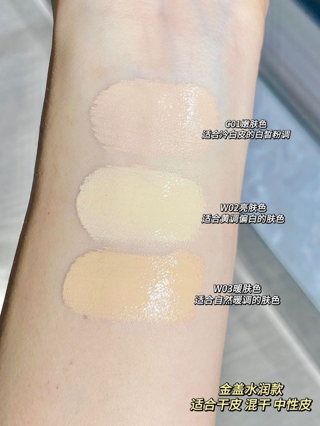 学生党宝宝选色不迷路! 每个版本都有三个色号供选择 原相机后置也显得妆效好好 上脸都舍不得卸掉的程度…… 我是混油皮,用的黑盖柔雾版,早上八点上妆 下午六点左右也没有斑驳,太让人惊喜 👉黑盖控油款 这个版本适合油皮、混油皮,柔雾感真的不错 不夸张得说…上脸我立马爱上 这个价位搭配这个妆效,性价比没谁了! 👉金盖水润款 透着水光感的清透奶油肌 适合干皮、混干 、中性 不仅润到心坎,还很能遮,扒在...