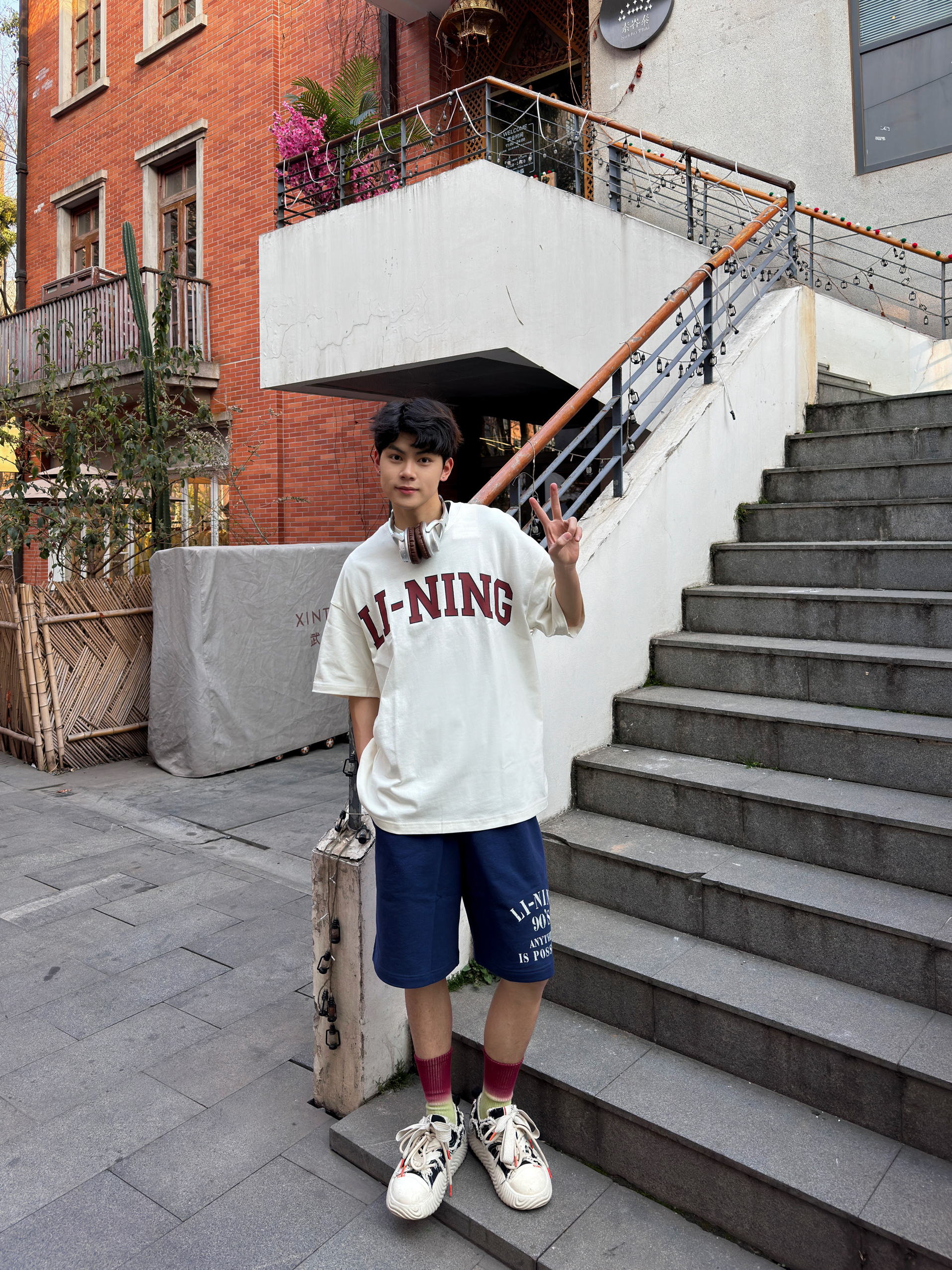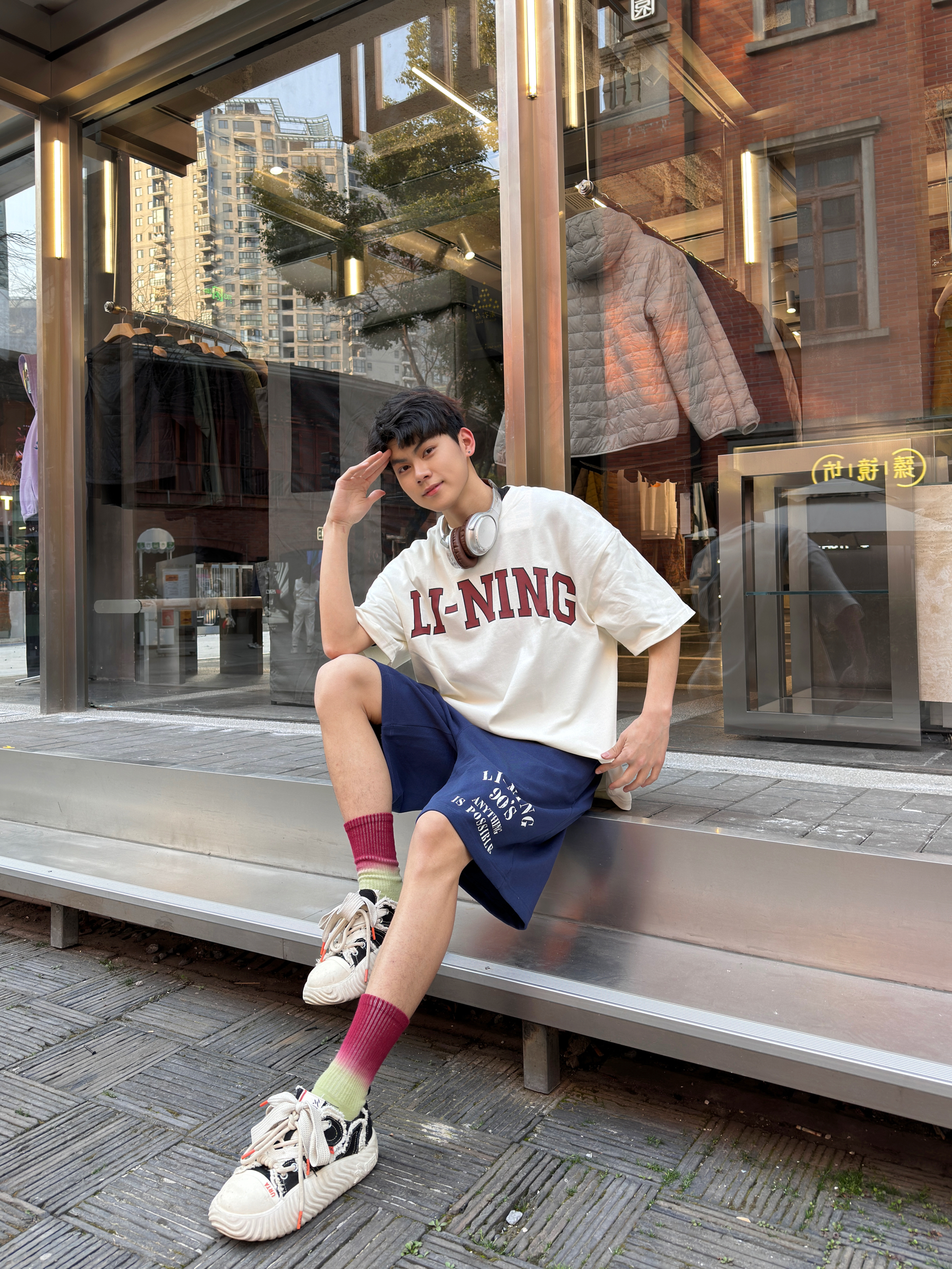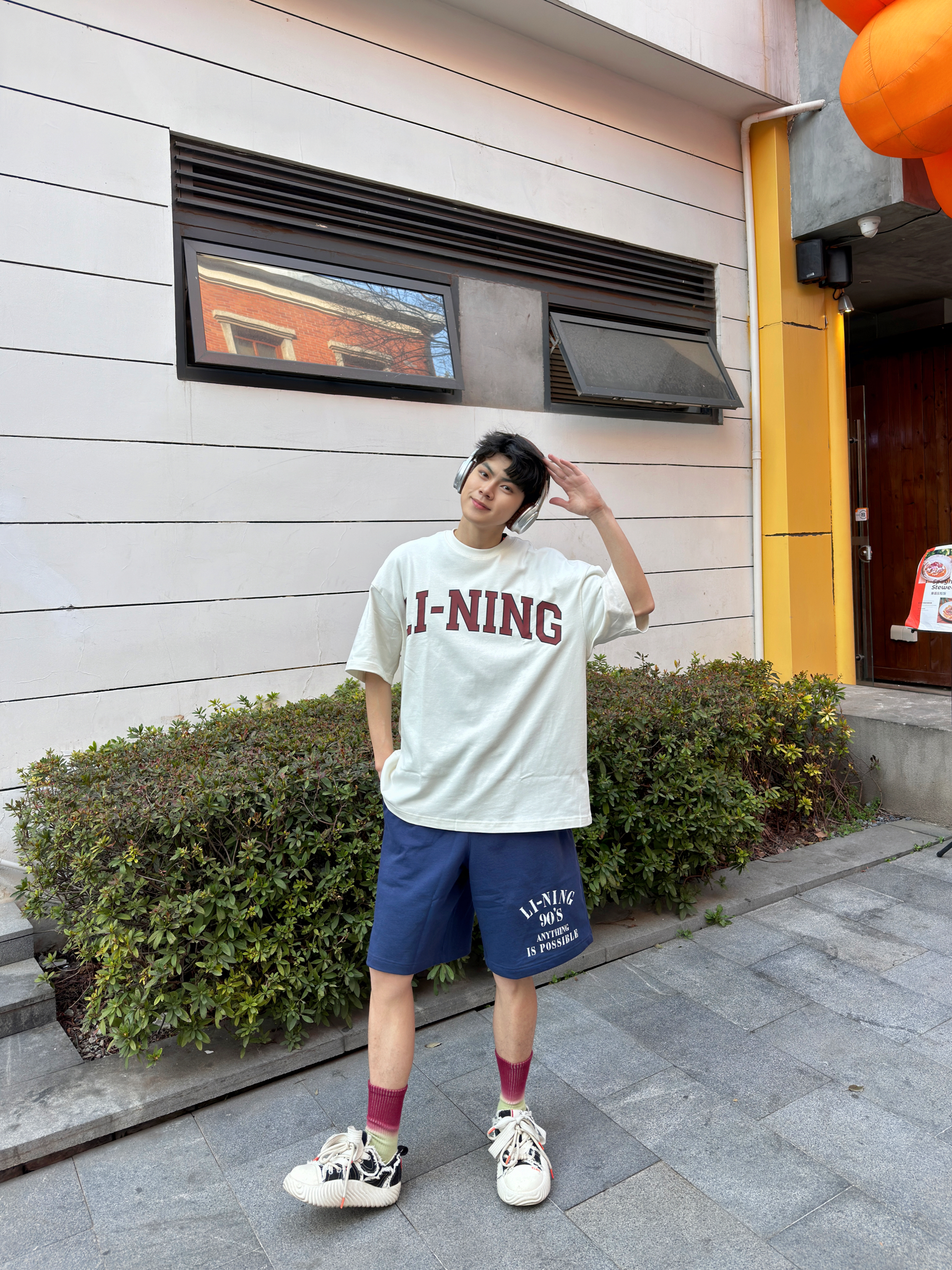 哈喽小伙伴们 这里是阿祖 - 最近武汉的天气真的好好哇😯 温度也跟着一点点上来了~ 趁着休息日 穿着舒服的短裤短袖就可以出去啦! 米白色的短袖很养眼👀!logo标识很亮眼! 圆领的领口设计穿脱很方便~ 搭配撞色的深蓝短裤 清凉又惬意! 穿这样一身搭配轻松citywalk🚶🏻♂️! - 👦🏻我的身高/体重: 182cm/58kg 👔 李宁 上身尺码:XL码