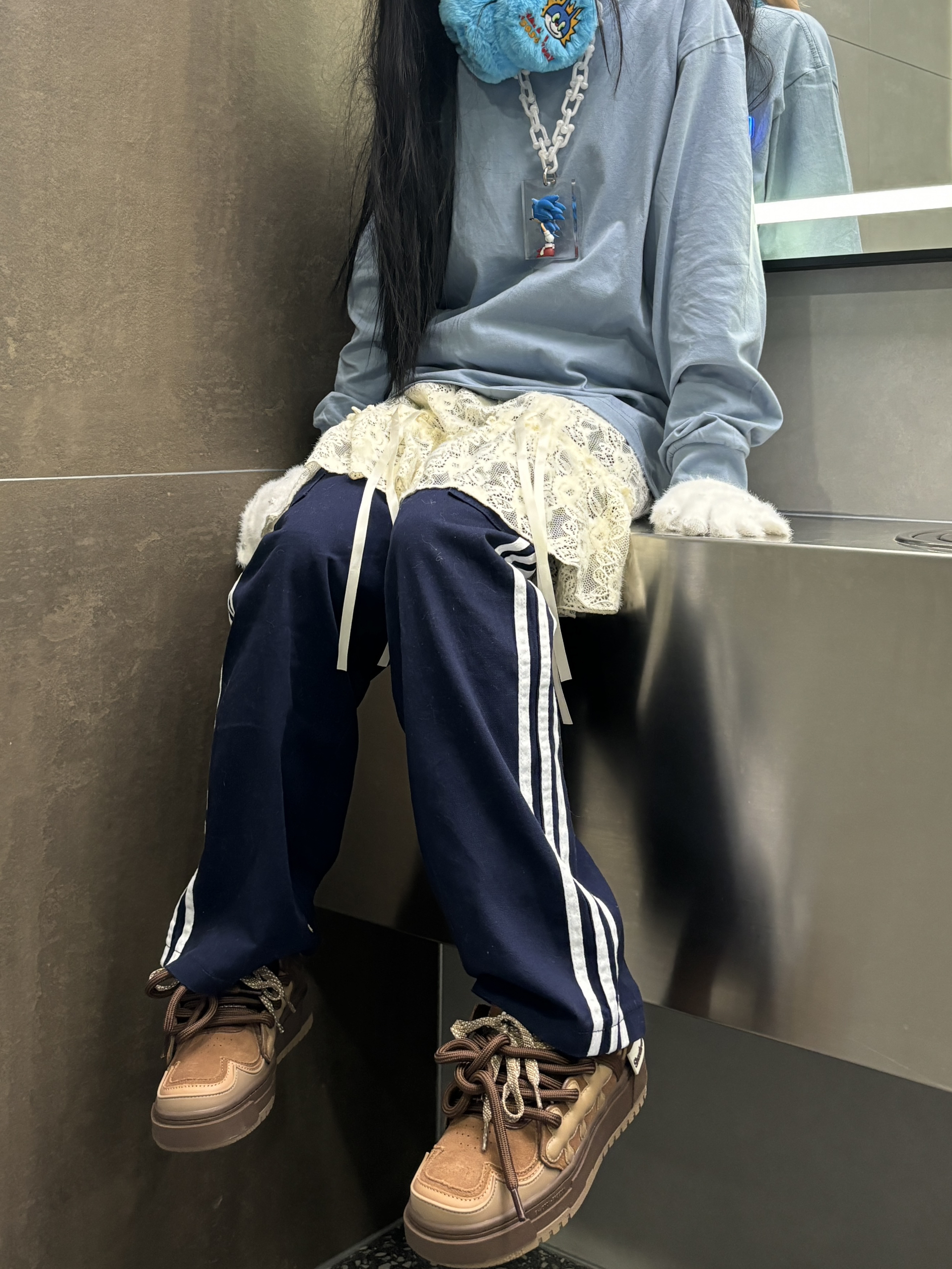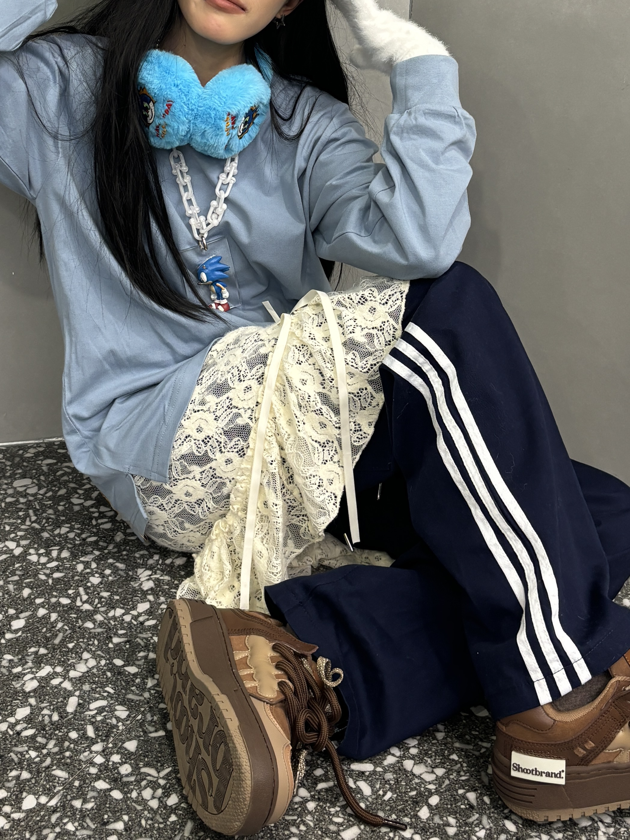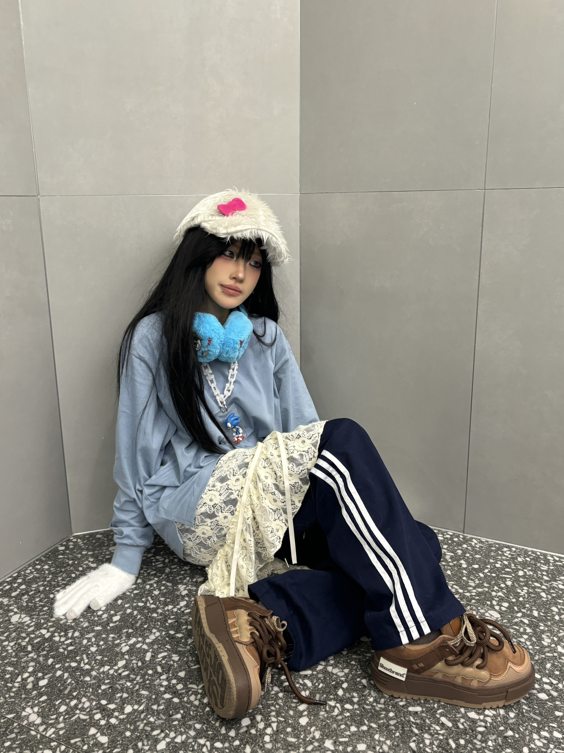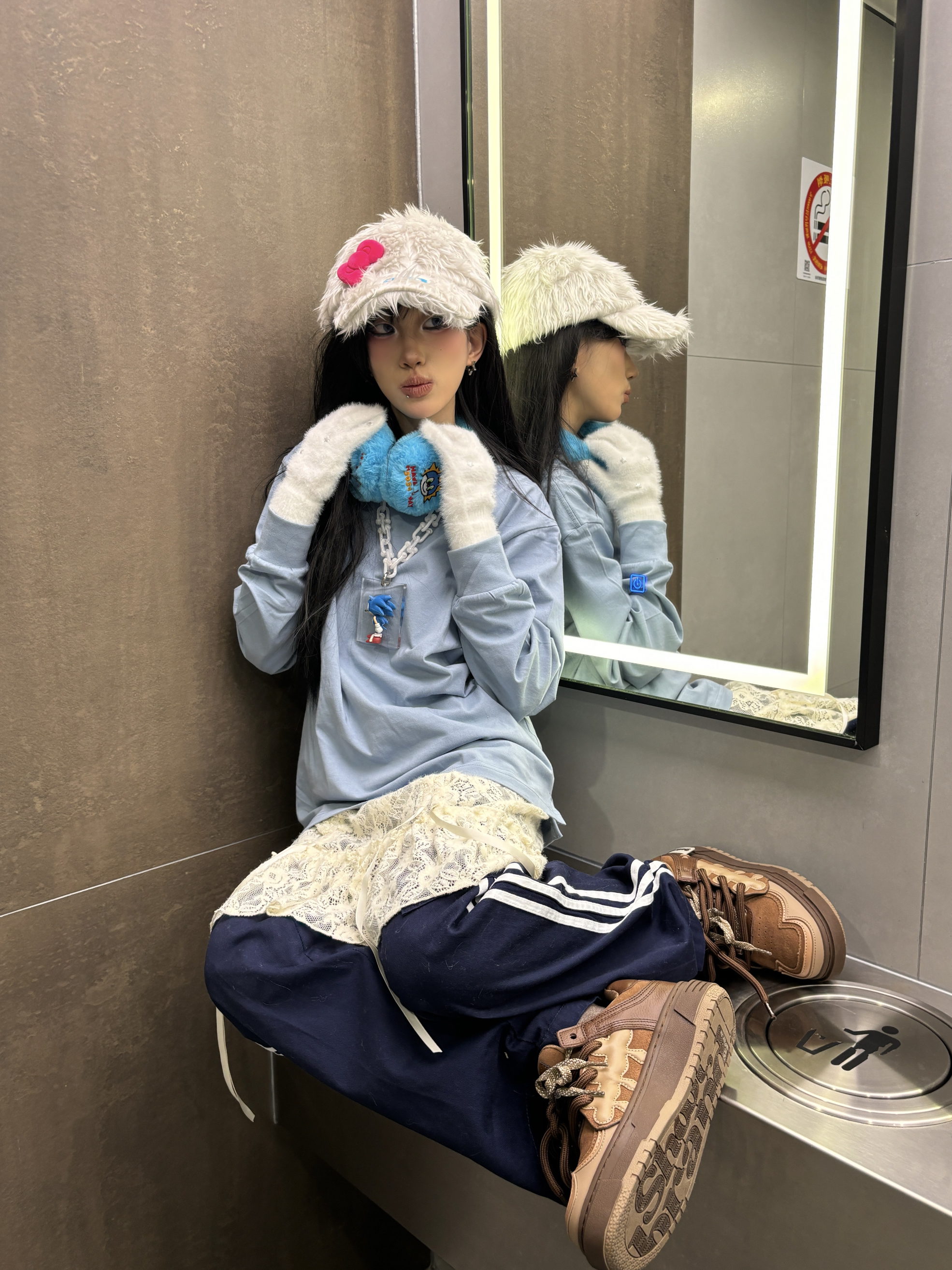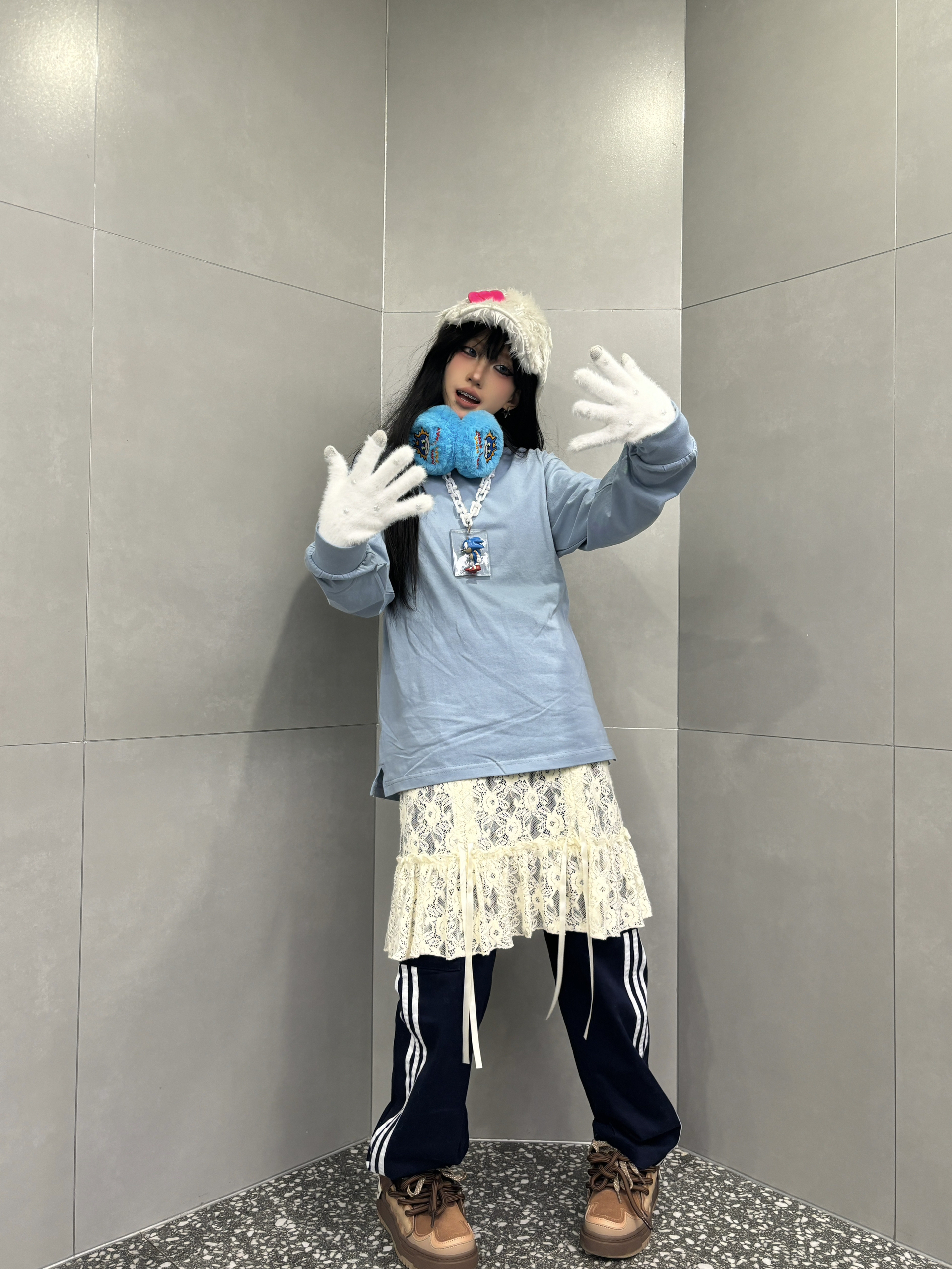 💎蓝色打底衫 🍦蕾丝半裙 🫐蓝白条纹运动裤 🥨美拉德厚底滑板鞋 🛼今天是一条蓝精灵穿搭~有宝宝想看的冬季裙子叠穿搭配来啦!!上衣是一件蓝色打底衫,灰蓝色尊嘟好奶,很衬肤色比较显白。纯色很干净,适合穿在羽绒服或者毛衣开衫里打底~下面搭配了一条蓝白条纹运动裤,藏青色很百搭,旁边点缀的白色条纹很运动~同时外面叠穿了一条蕾丝半裙,奶白色很适合叠穿,里面是有一层内衬滴所以单穿也是可以滴~鞋子方面搭配了一双美...