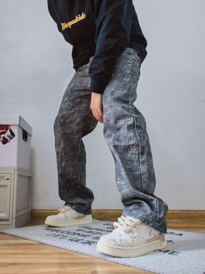 👖 水墨风格 ➡️ 大家好,我是粤雨 这次分享这条来自#Voguo Relay 的独特牛仔裤 🏃裤子是水墨风格,宽松版型,在入手之前看到图片有点偏浅色,还在担心到手不好搭配,但是上身后才发现整体偏深色,搭配起来也挺简单 版型显高,适合搭配各种鞋型 🔖尺码L,合身