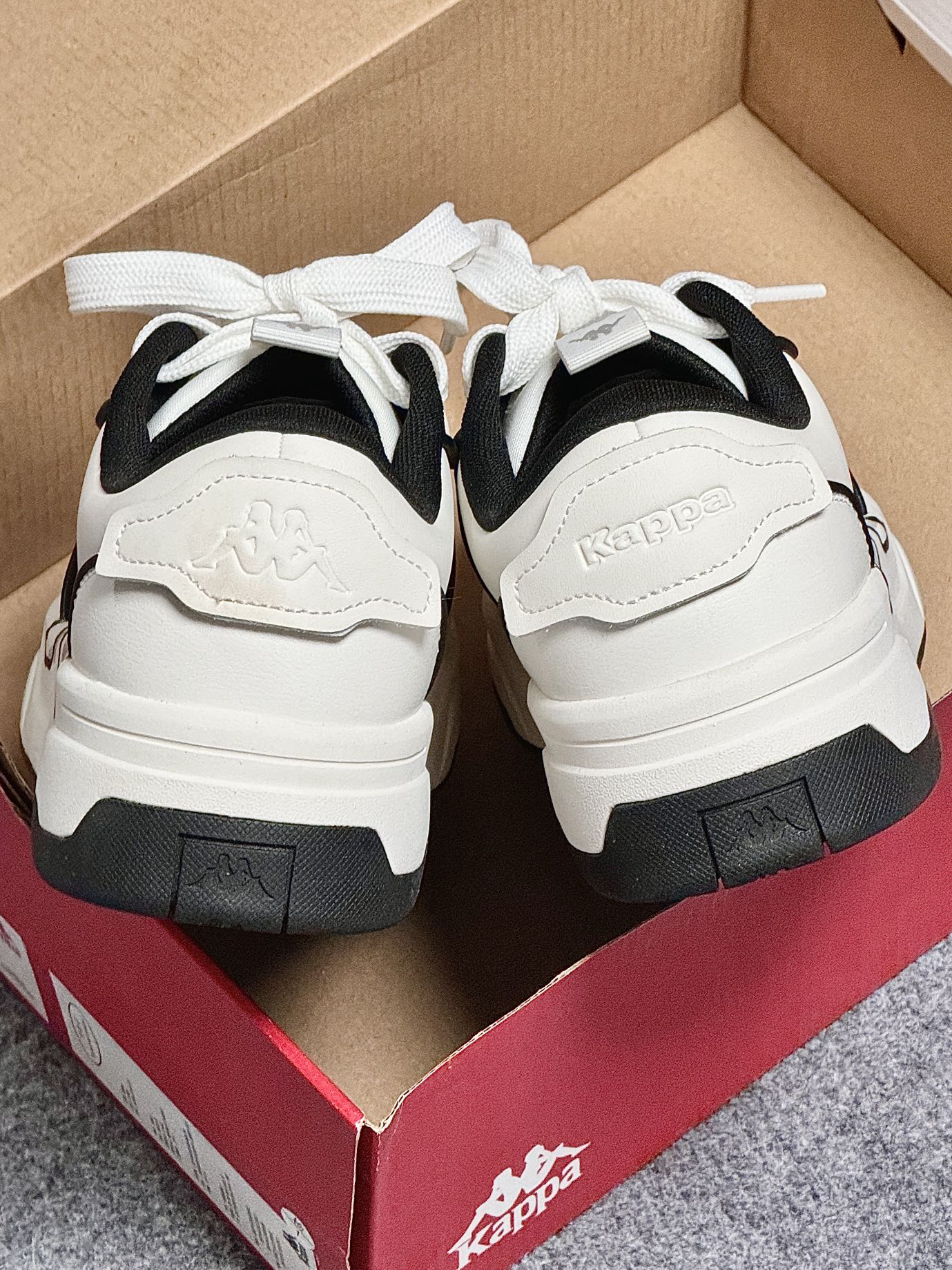 干干净净的老爹鞋好稀饭! Kappa就没让我失望过 上脚很轻包裹感也可以 白色百搭还不挑人~ 好想焊在脚上!