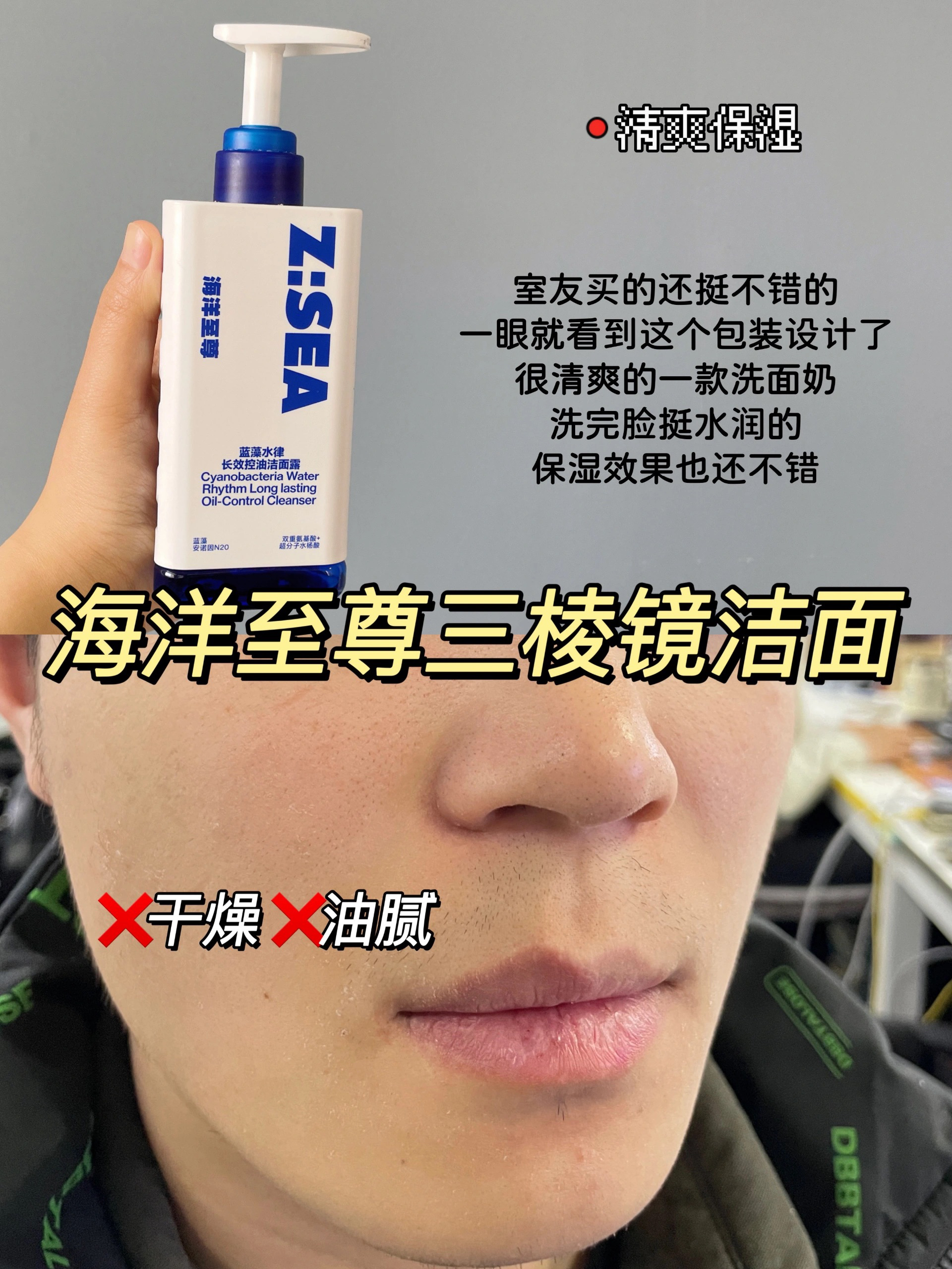 出油/长痘/学生党好物分享/控油祛痘/脸上出油/国产洗面奶/老爸测评/宿舍好物 这年头还有人不知道自己什么肤质的吗! 一个很简单的小方法: 洗完脸后,等待10分钟左右,观察皮肤状态 干皮:全脸紧绷干燥油皮:分泌油脂,油光明显 中性皮:皮肤无不适感,没有明显干燥或油光 混干皮:大范围干燥,局部轻微油光 混油皮:T区出油,局部轻微紧绷 敏感肌:泛红有轻微刺痛感 开学啦!同学们还在为选择合适自己的男士洗...