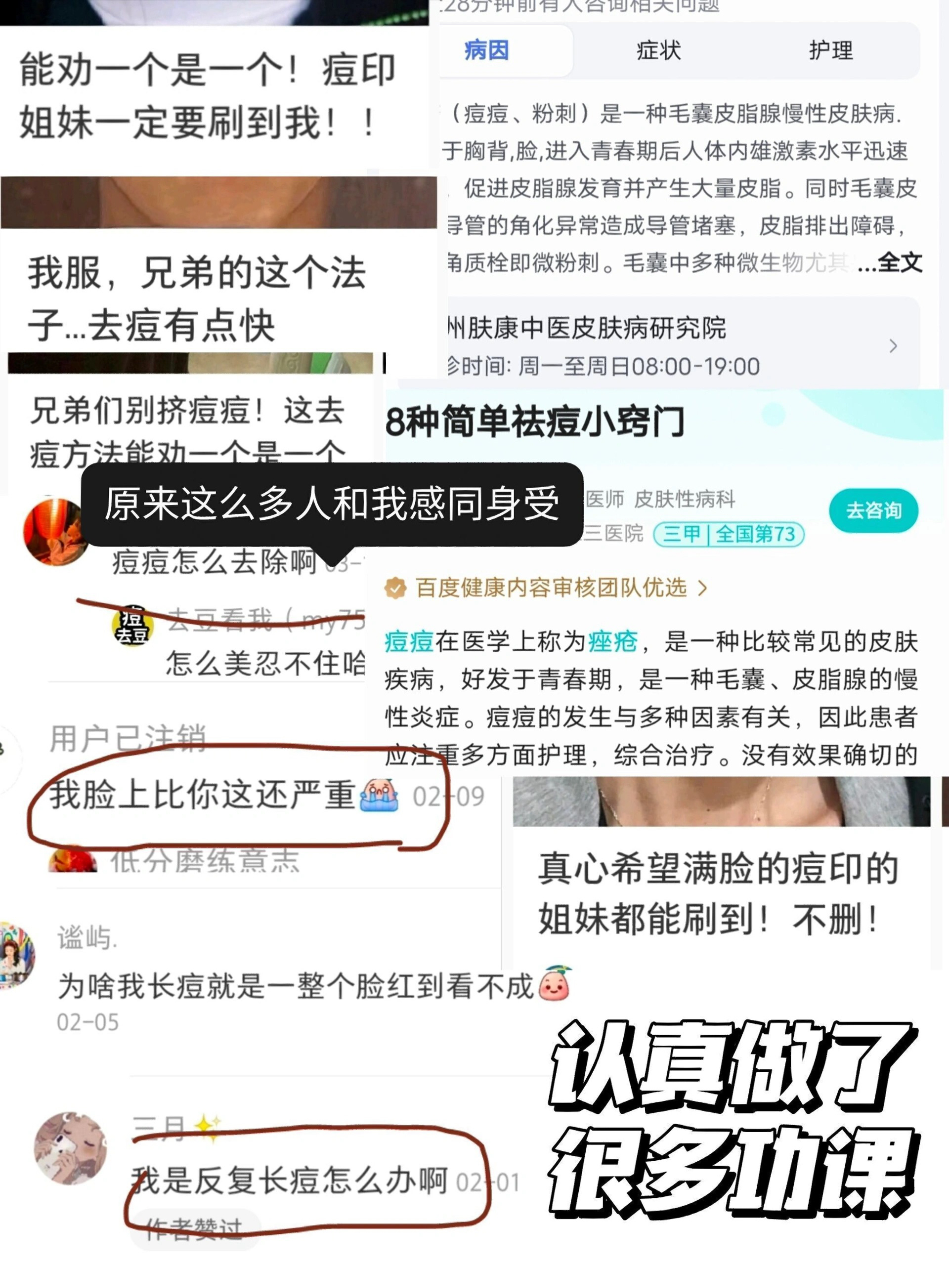 球球大数据把我推给月薪3K的打工人,这个方法亲测好用! - P1是我之前的皮肤状态-,每天洗脸看见自己脸上的痘痘自己都糟心,天天出门都低头走路,整个人都是很自卑的状态 P2是我特意存的想看看这个方法有用没,惊艳到我了! P3是我当时去网上做了很多功课,了解到脸上长痘是因为出油多不注意清洁! - 敲黑板了!!! 说一下方法,兄弟们都学起来好吗! 1 打开毛孔 温水洗脸后,用热毛巾敷脸3min,让毛孔...