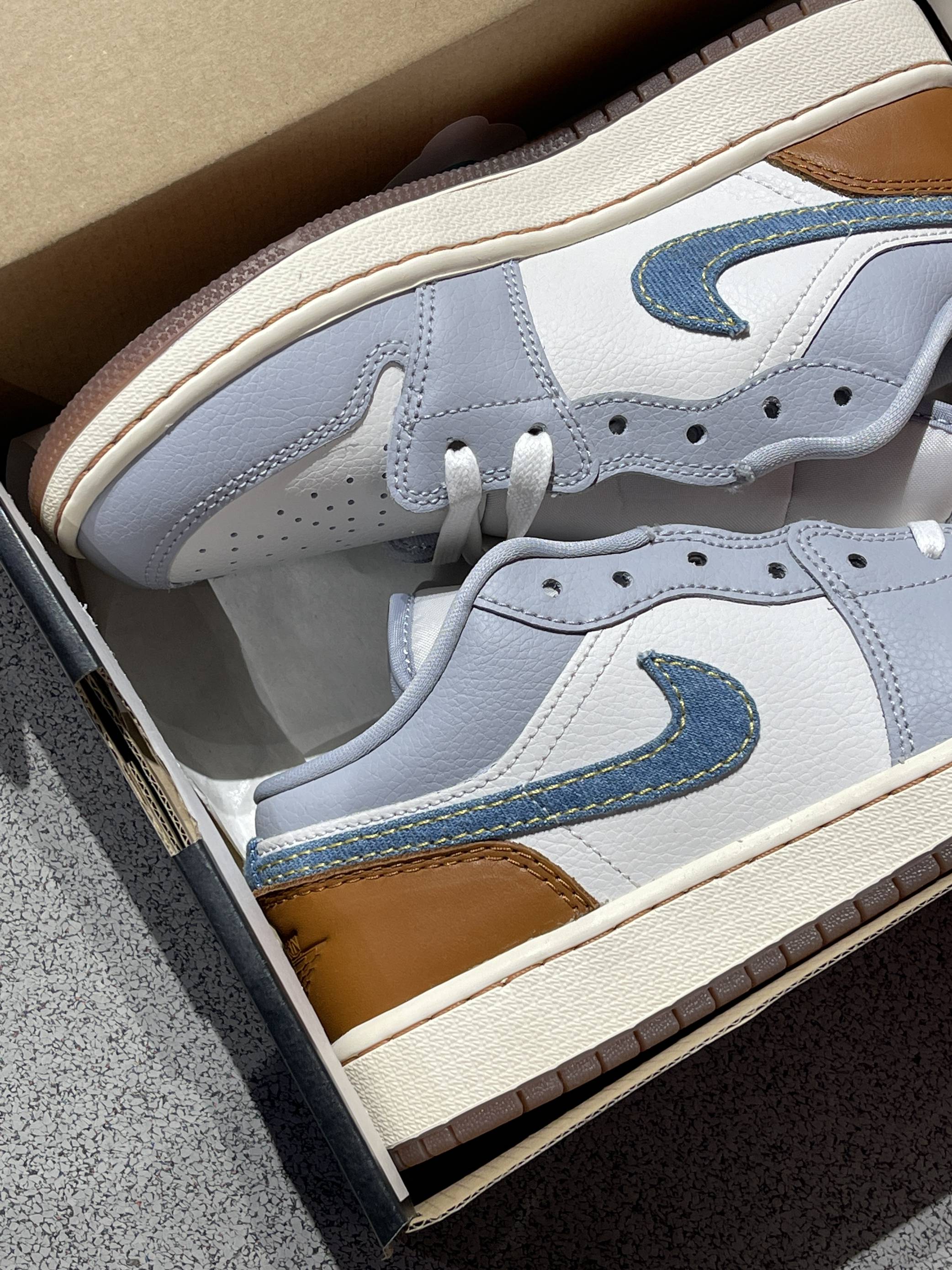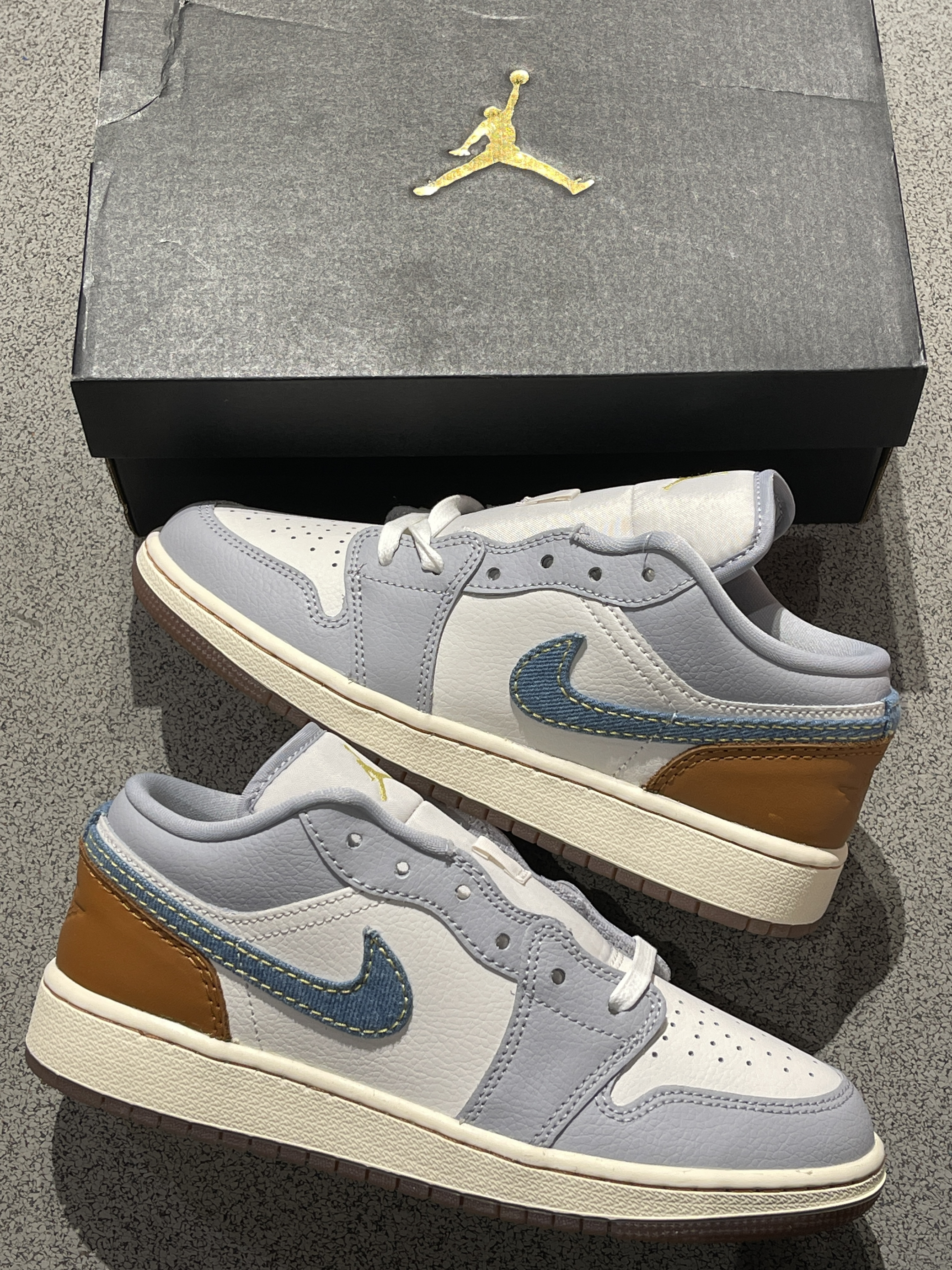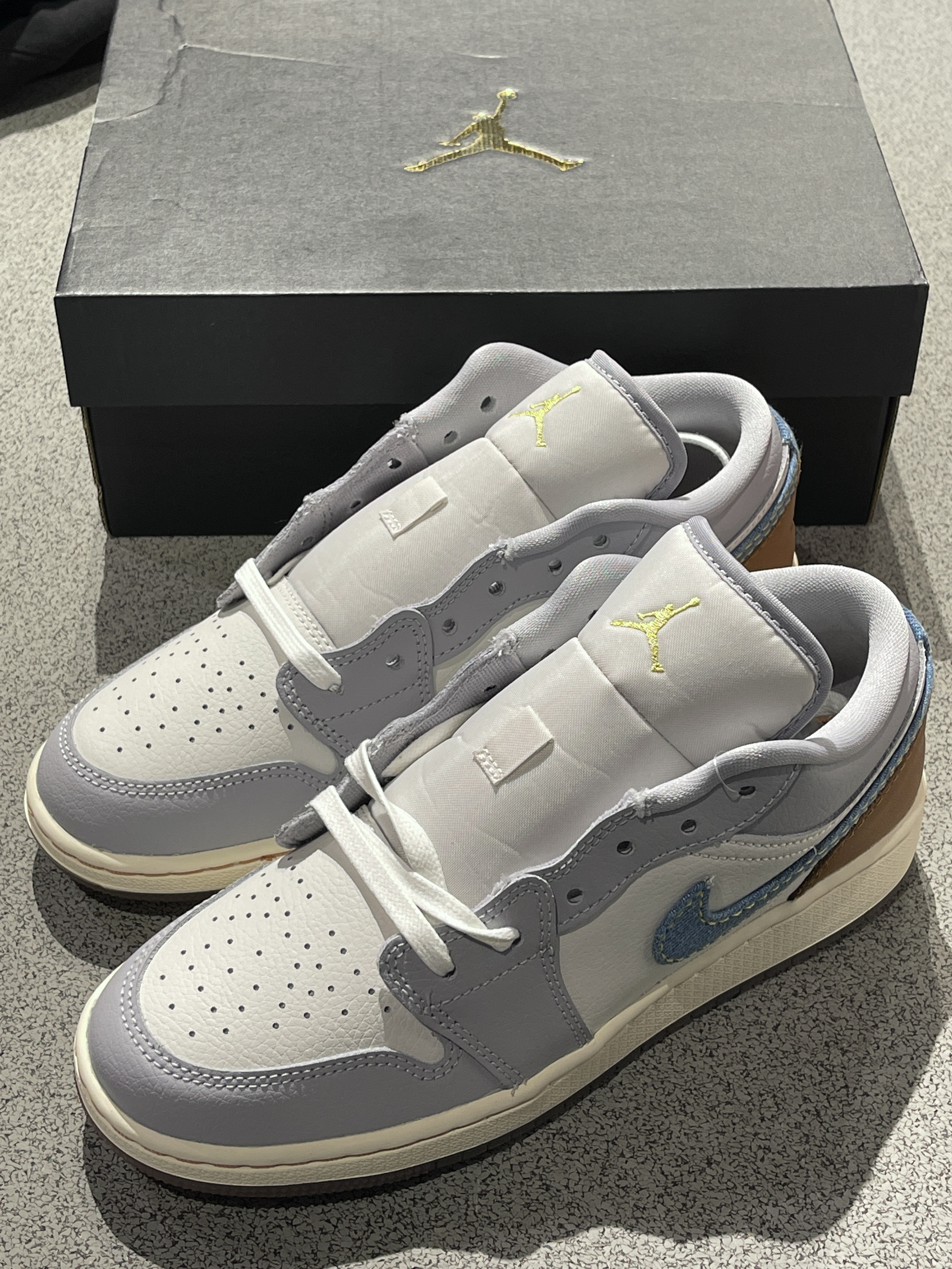 换季单品安排起来家人们!😎 Jordan|Air Jordan 1 Low SE 低帮篮球鞋“白蓝”👖,经典百搭的低帮aj1low鞋型,黄蓝柔软皮革➕牛仔材质Swoosh拼接制成,整体层次感满满,复古氛围感十足!🤩