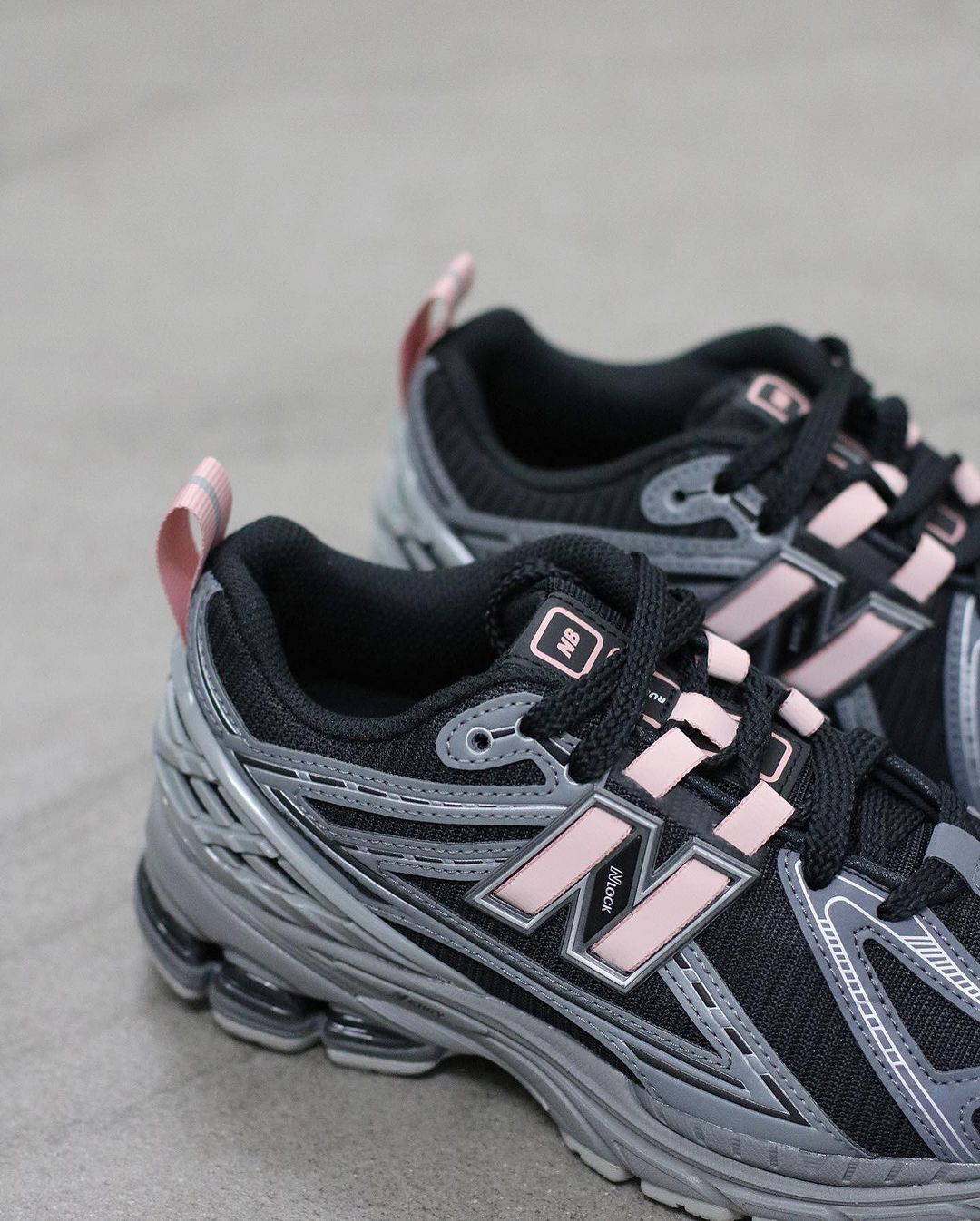 鞋名:New Balance 1906R 黑粉 外观及细节: 这双NB1906r跑步鞋在春季的穿搭中还是蛮不错的,网布鞋面在日常的使用时也不会闷脚,脚感上这双鞋子也是蛮柔软的,搭配牛仔裤、休闲卫裤等都是很好搭。