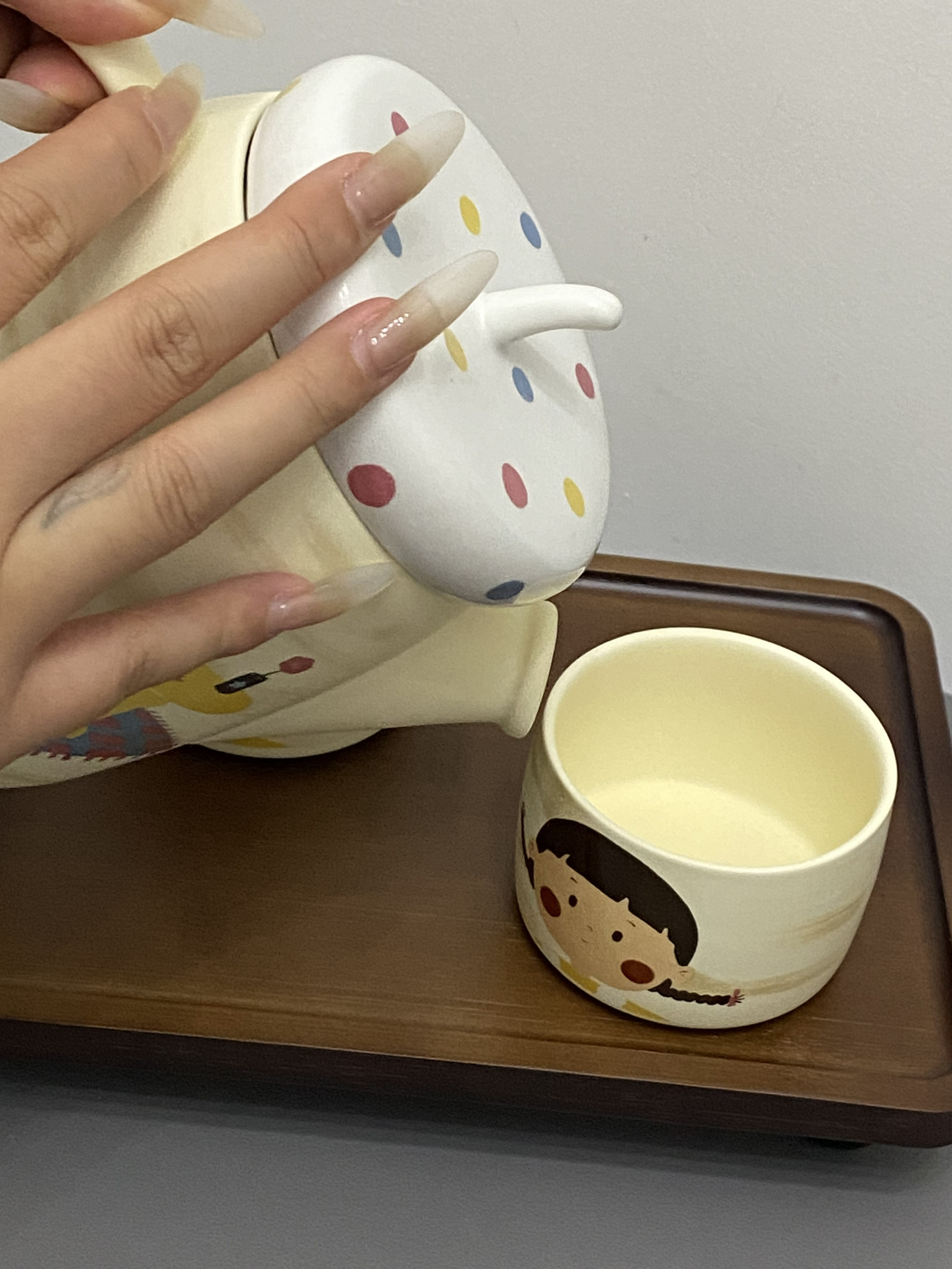 不知道的还以为怎么了 老板要结婚咯! 送她一套茶具 超级可爱的 而且喝水很舒服 里面还有四个杯子 希望他早日有两个baby