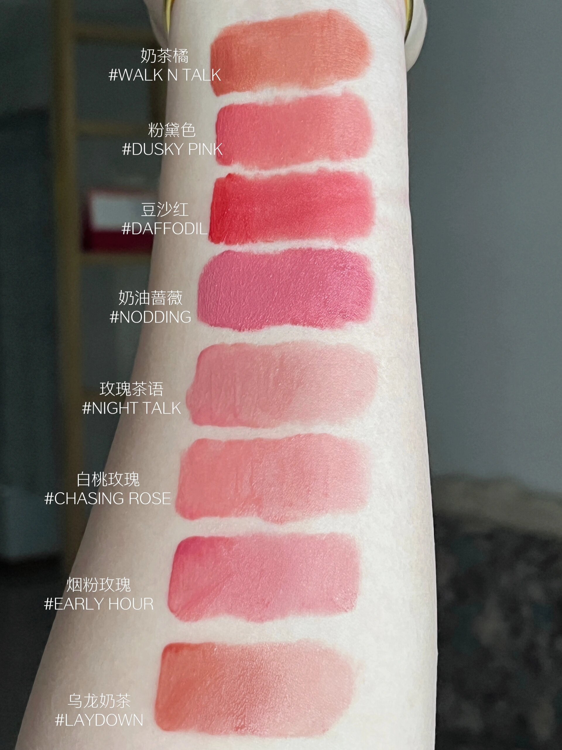 挑选了8支适合通勤的唇釉有云朵、水雾和丝绒质地 云朵唇釉 奶油蔷薇 #NODDING[话题]# 是一支新色!低饱和灰粉,带裸调,温柔~适合白皮,深唇也可以当打底,覆盖力蛮不错的,基本上不沾杯~ 水雾唇釉 水雾的质地不多说了吧!上嘴说说的成膜后拍一拍是雾绒绒的不掉色轻薄感! 白桃玫瑰 #CHASING[话题]# ROSE 新色!纯欲淡颜感的低饱和橘调白桃,暖调的不会挑肤色~ 玫瑰茶语 #NIGHT[...
