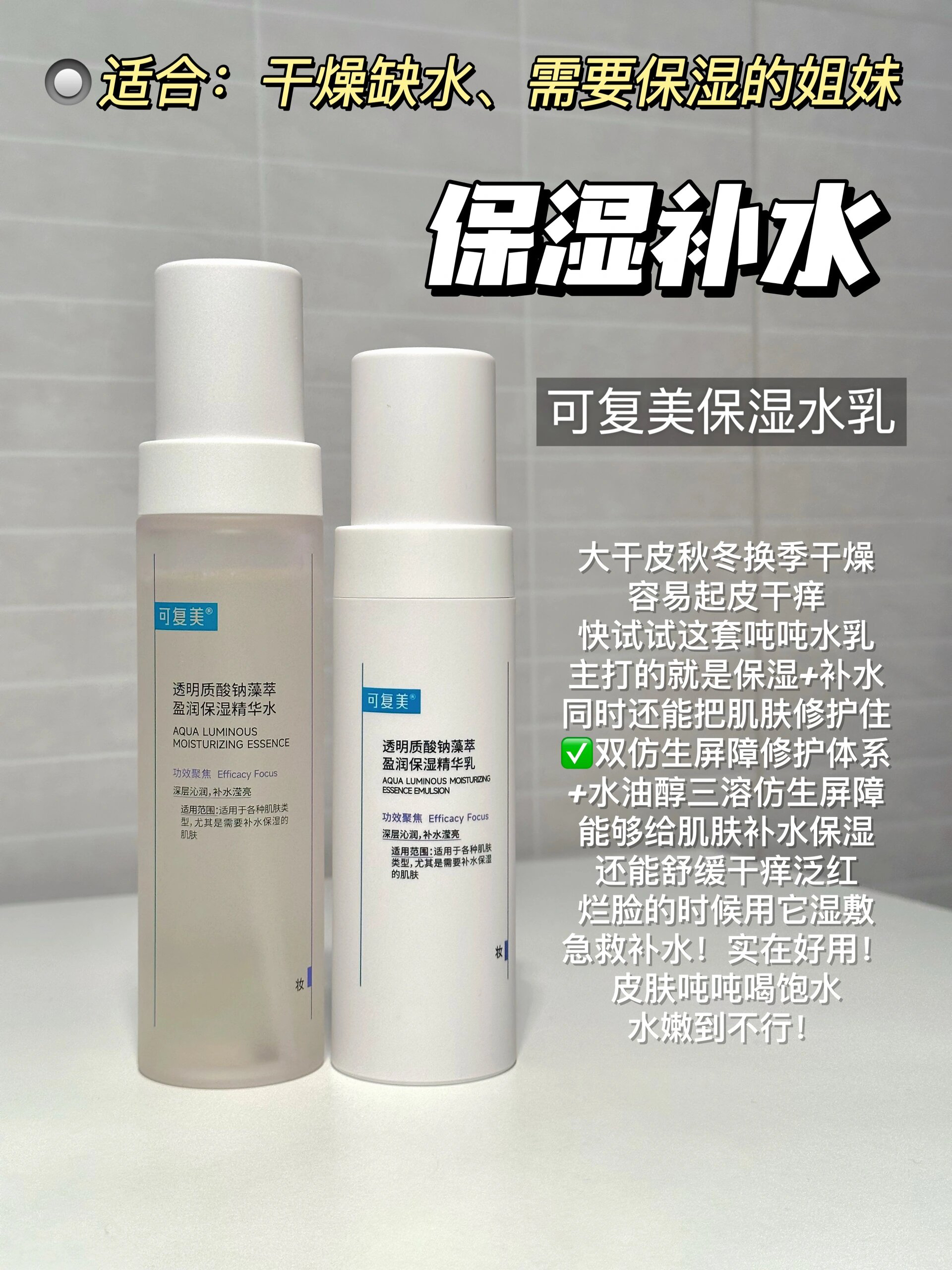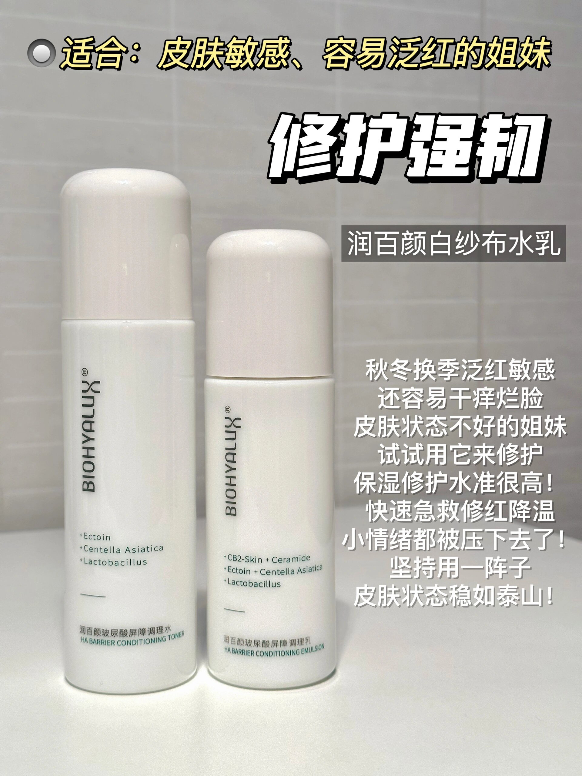 本篇笔记关联了润百颜 白纱布护肤套装 屏障修护 屏障调理 调节泛红 敏肌 保障水120ml+保障乳100ml、可复美 吨吨水乳透明质酸钠藻萃盈润保湿护肤套装【水+乳】 莹润焕亮 精华水120ml+精华乳80ml、谷雨 光果甘草雪肌柔光精萃护肤套装【水+乳】 保湿补水改善暗沉减黄提亮 水120ml+乳100ml等商品,为用户提供真实的使用体验和购买参考。