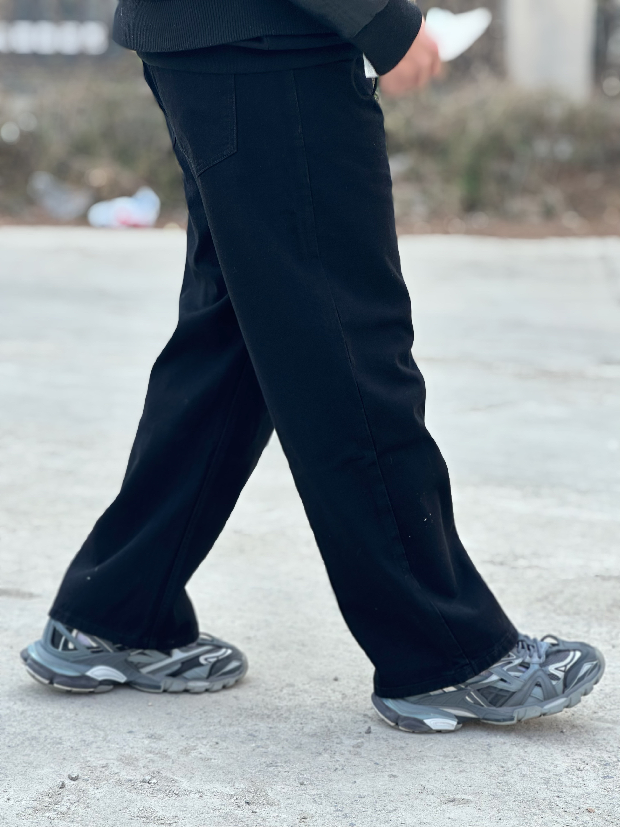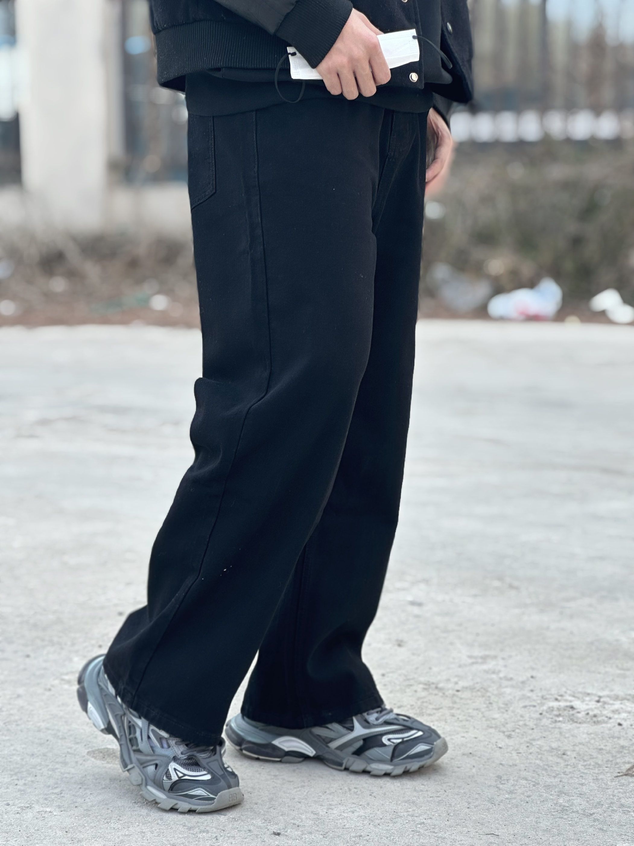 每个人的衣柜里不能少的就是一条百搭的直筒裤了 今天给大家带来的是 Voguo Relay 的直筒黑色牛仔裤 裤子的整体版型是廓形 也更修饰腿型 而且裤子的裁剪质量方面也很在线 日常通勤穿随便搭配即可