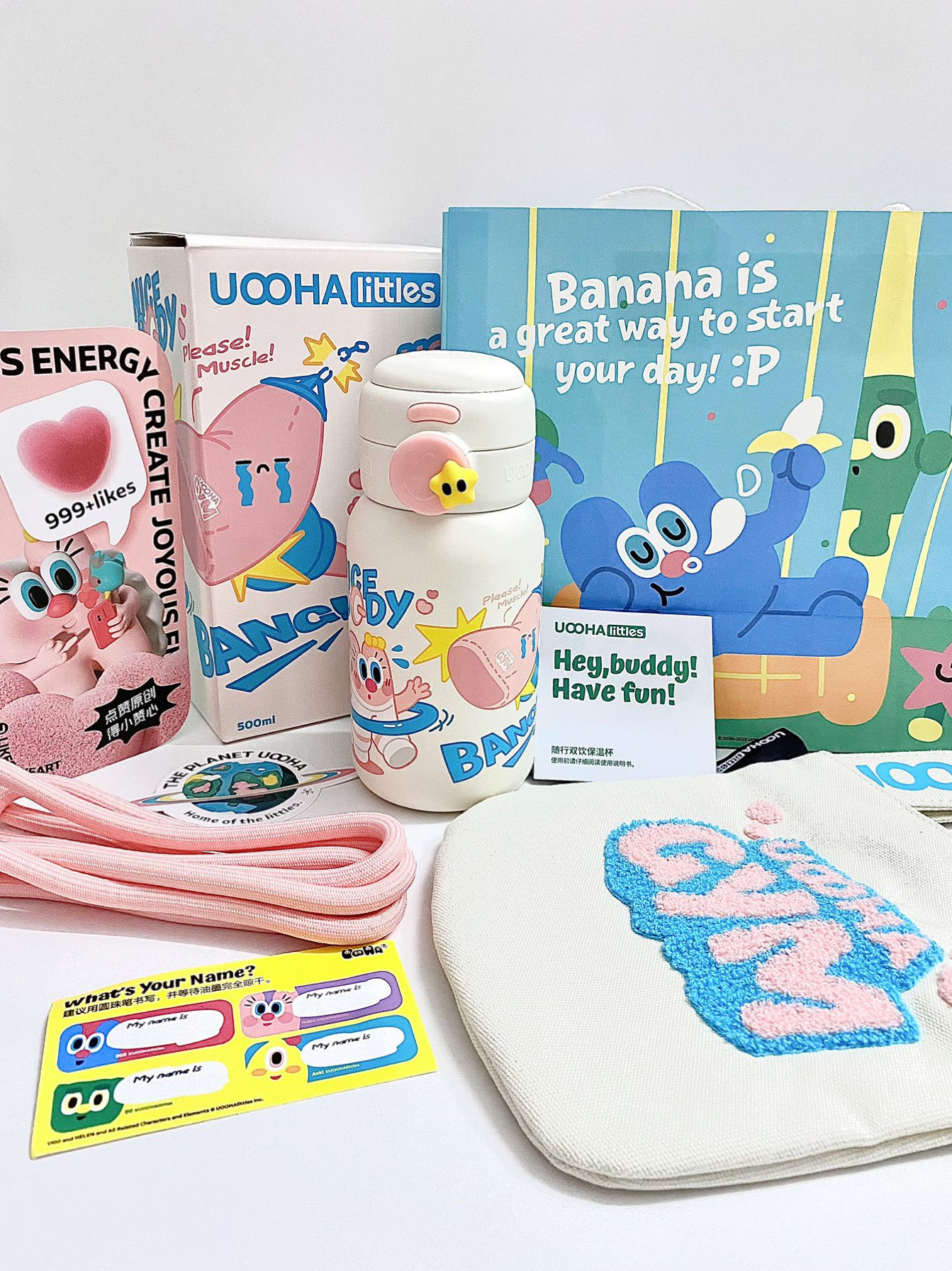 感谢我的闺蜜 让我的杯子家族又加入一员! 白色+粉色的涂鸦设计 很戳我的少女心 每次拆UOOHA的杯子 我的心情都很好 因为它家杯子质感很好 还会送一些配套的赠品! 这次送的是一个帆布随行包 背着杯子出门很方便 一盖双饮 怎么方便怎么喝 一天轻轻松松喝八杯水 316L食品级不锈钢内胆 用着很安心 这个冬天 我一定会多喝热水♨️