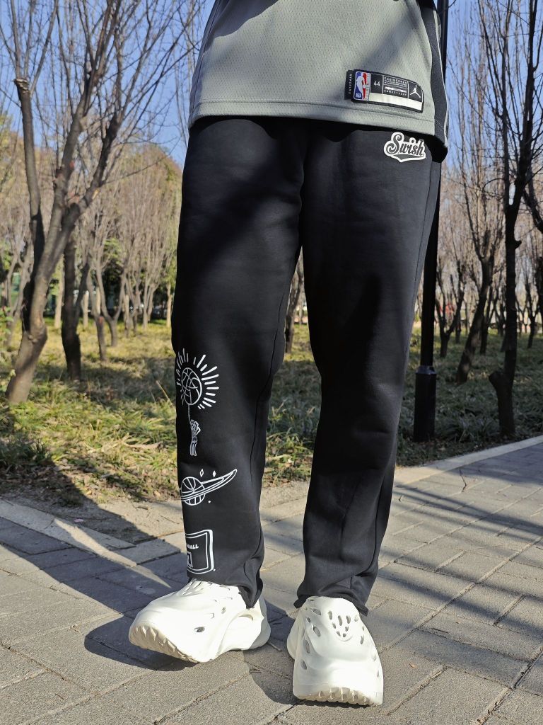 👜 结果只有裤子这么帅气?! · 🕶️ 有些衣服不用看买家秀就知道帅气加身了,没错,就是这件来自Swish The Ball In空心球系列美式运动裤。 · 🏝️这款裤子点睛的设计就是右腿下的印花,潮流感十足,不论是日常出街还是打球健身,它都能作为你的主力裤子~ · 💒粉色的这款我也特别想要入手,再存存,下一个配色马上就位!
