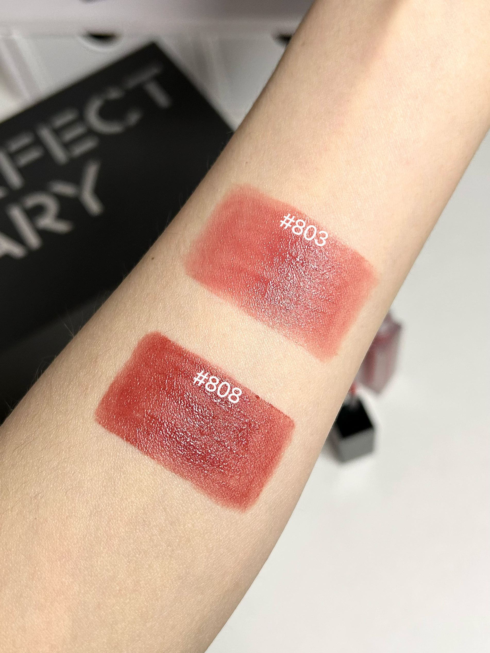 不容错过的完美日记仿生膜精华唇釉 803:适合伪素颜和日常提气色,薄涂好温柔,秒变邻家女孩,保护欲拉满~ 808:显白色号,黄黑皮的姐妹都能轻松驾驭,涂上瞬间气场拉满,有大小姐那味了~ 两只都不挑皮,质地像纱一样轻薄,上嘴不拔干 一只就相当于润唇精华➕唇膜➕唇釉 真滴是又好看又能护唇 情人节送对象这个礼盒就稳啦!