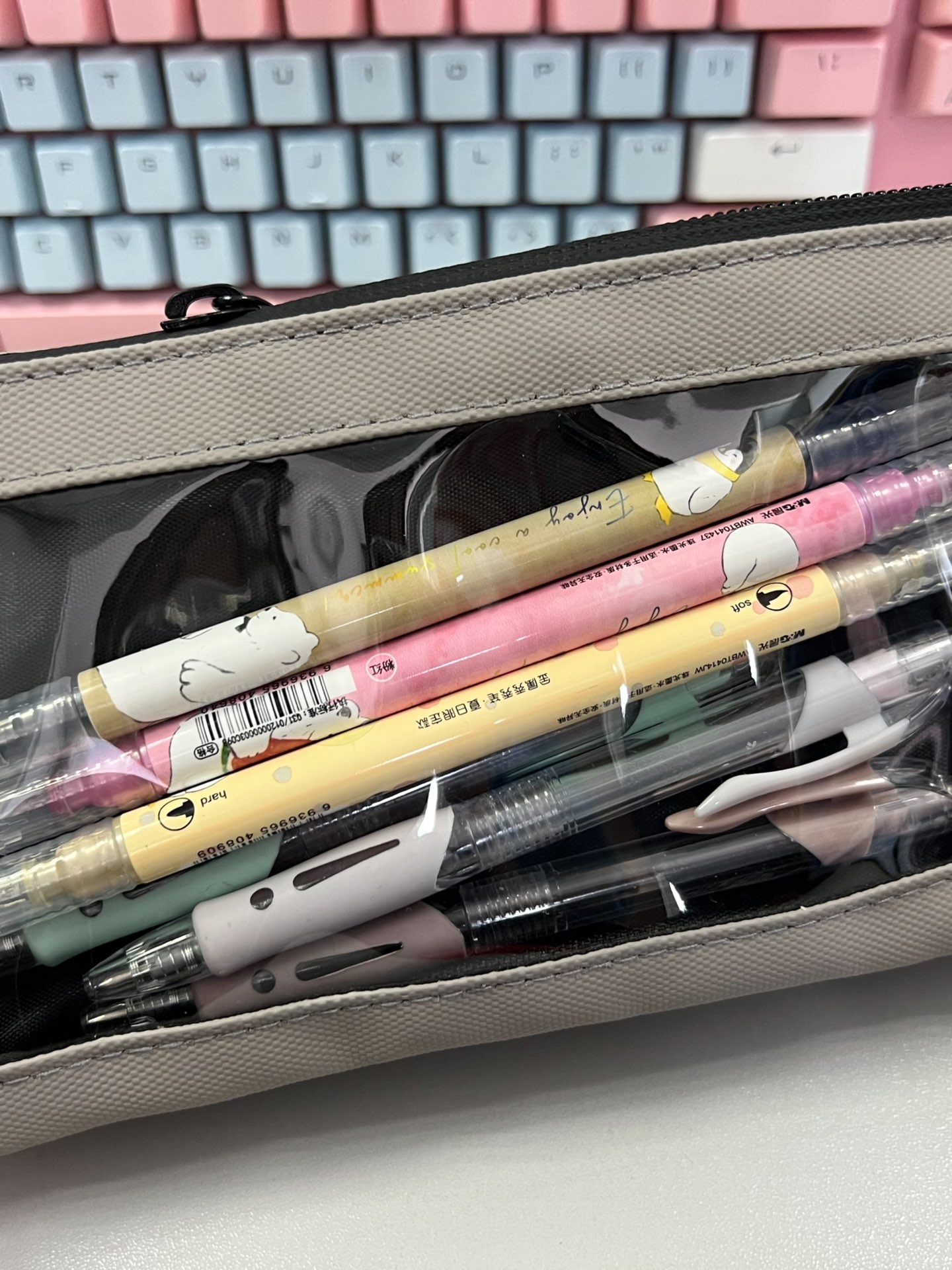 买的笔袋终于到了! 要不是旧的笔袋烂了都不知道原来现在笔袋颜值都这么高了👏🏻 这透明可视化的设计不觉得很像透明车盖的法拉利一样吗🏎️(有点内味吧! 而且这个配色我个人蛮喜欢的,拿出来的时候我都觉得我是最靓的仔,只能恨当年读书的时候没有这个玩意了!!! 而且内里的收纳袋还有5层着实这个容量嘎嘎的👍🏻 当然价格也合适,要不然我才不一顿表扬呢哈哈哈哈哈 推荐兄弟们可以冲!👌🏻 #宝藏高颜值文具 #送不完...